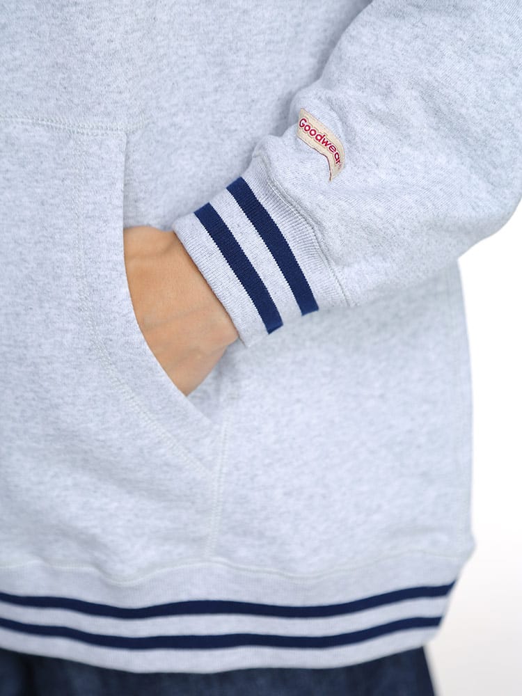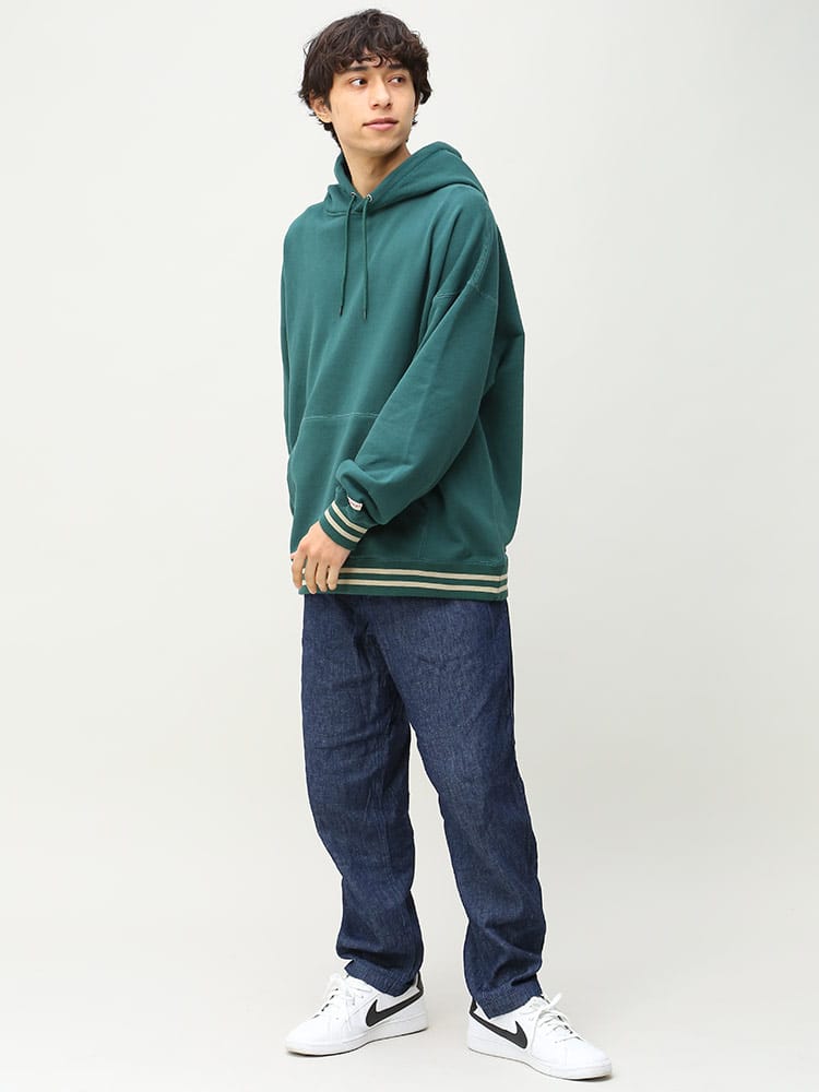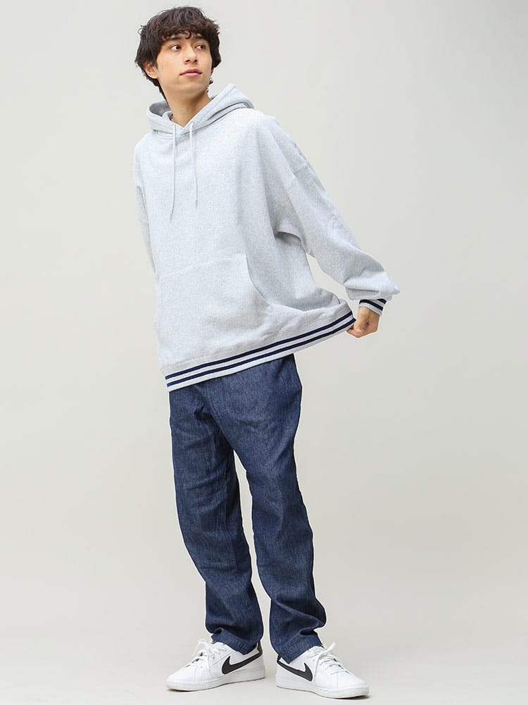 USAコットンを使用した、着込むほどに味が出るプルオーバーパーカー。アメリカ綿糸を使用し、厚めでタフな生地に編みたてています。ドライ感とコシがあるのが特徴で、洗えば洗うほどヴィンテージ感の風合いが楽しめる素材になります。首元、袖口、裾部分にラインを施しワンポイントアクセントに。オーバーサイズな作りでラフなシルエットを楽しめるリラックスフィット。一枚でも、インナーとしても使える重宝するアイテムです。