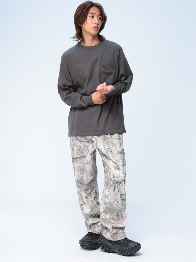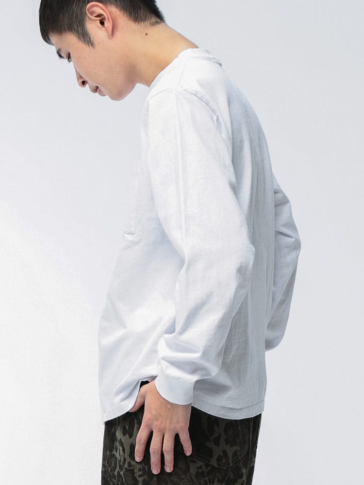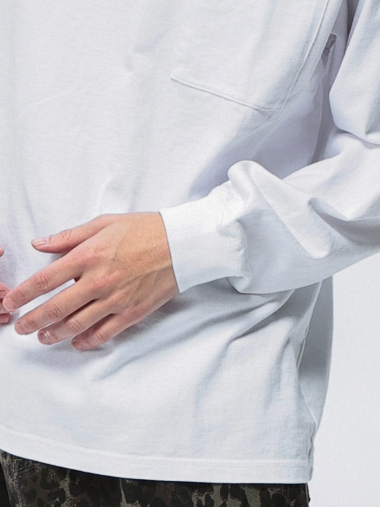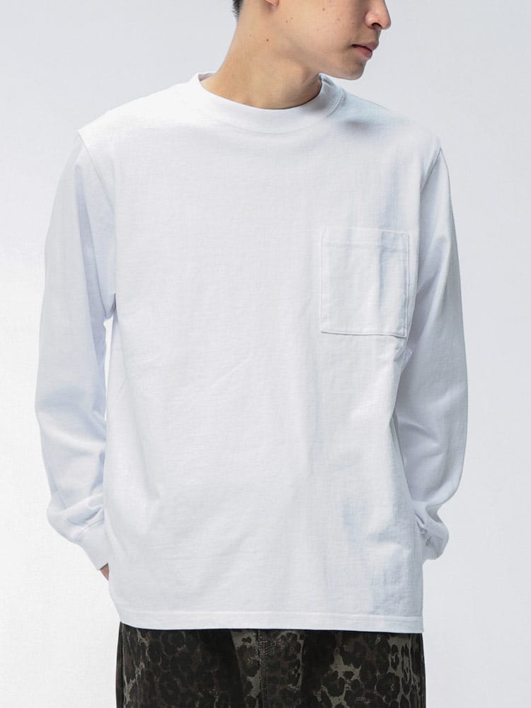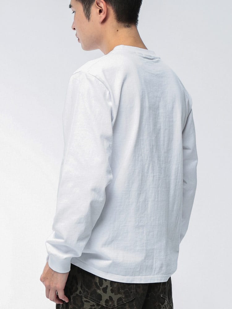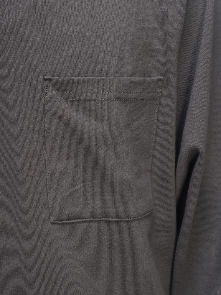 アメリカコットンを贅沢に使用した厚めでタフな生地を使用したポケット付き長袖Tシャツ。独特なザラつきとコシが特徴で、 着こめば着込むほど味が出てくるのが魅力です。無地のロングポケTはコーディネイトの定番として何枚でも揃えておきたいアイテム。リーズナブルでありながら、耐久性と抜群の着心地を両立したコストパフォーマンスアイテムです。
