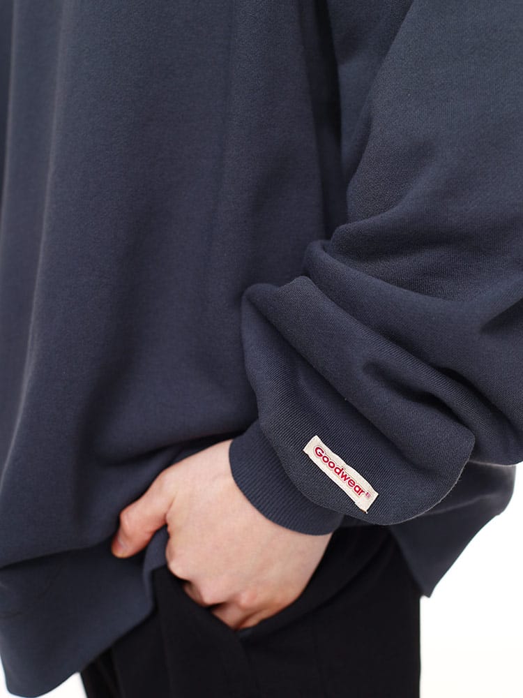 ビッグシルエットのGoodwearクルーネックトレーナーです。しっかりとした生地感の12オンスボディを使用。デイリーユースにぴったりな一着。USAコットンならではの、着こむほどに味が出る独特の風合いが魅力です。