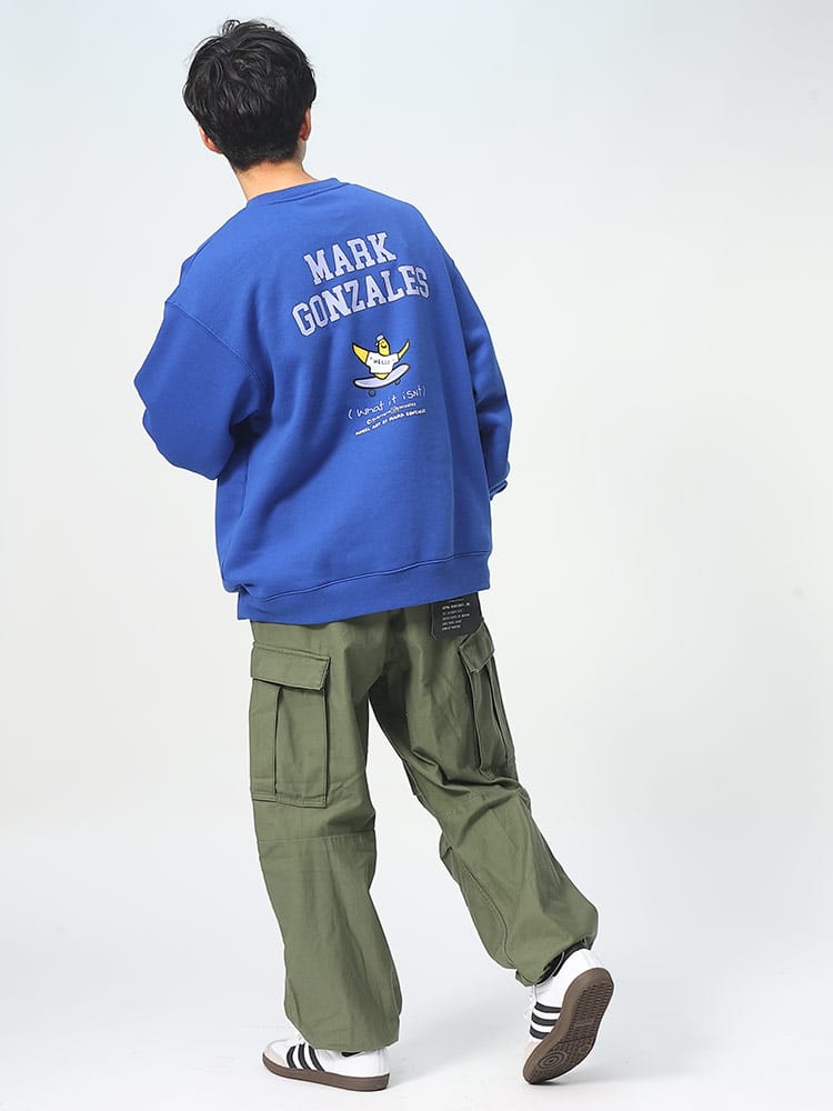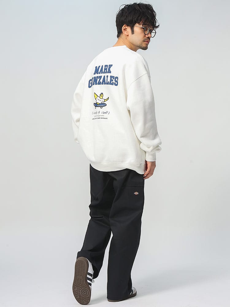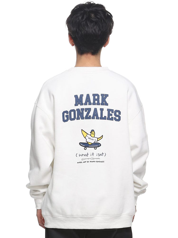 「What It IsN'T」のエンジェル裏起毛バックプリントクルーネックトレーナーは、マーク・ゴンザレスの芸術的な感性を反映したアイテムです。柔らかい裏起毛素材で快適な着心地を提供し、背面には印象的なエンジェルのプリントが特徴です。このトレーナーは、ストリートウェアの要素とアーティスティックなタッチが融合しており、シンプルながらも洗練されたデザインが魅力です。