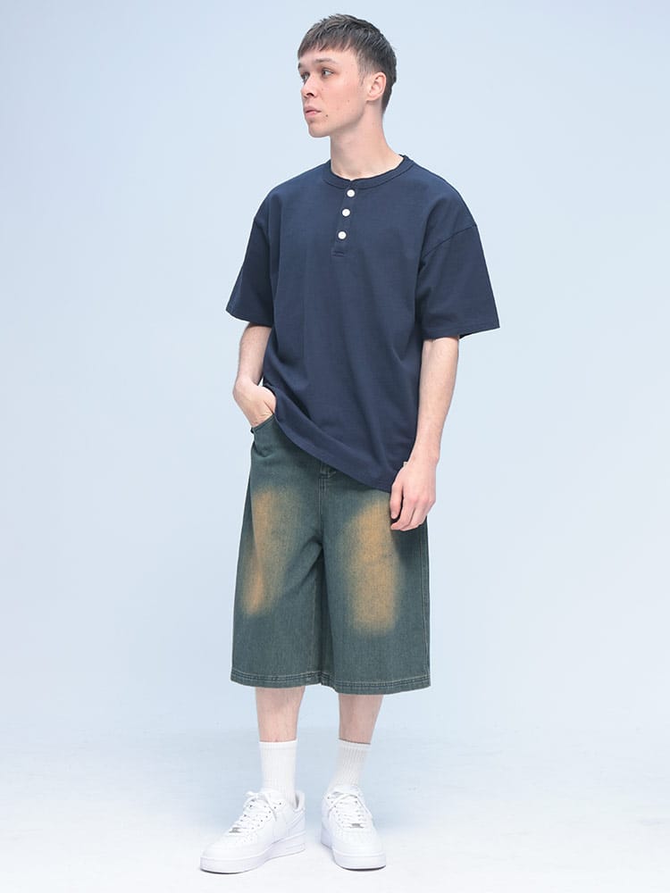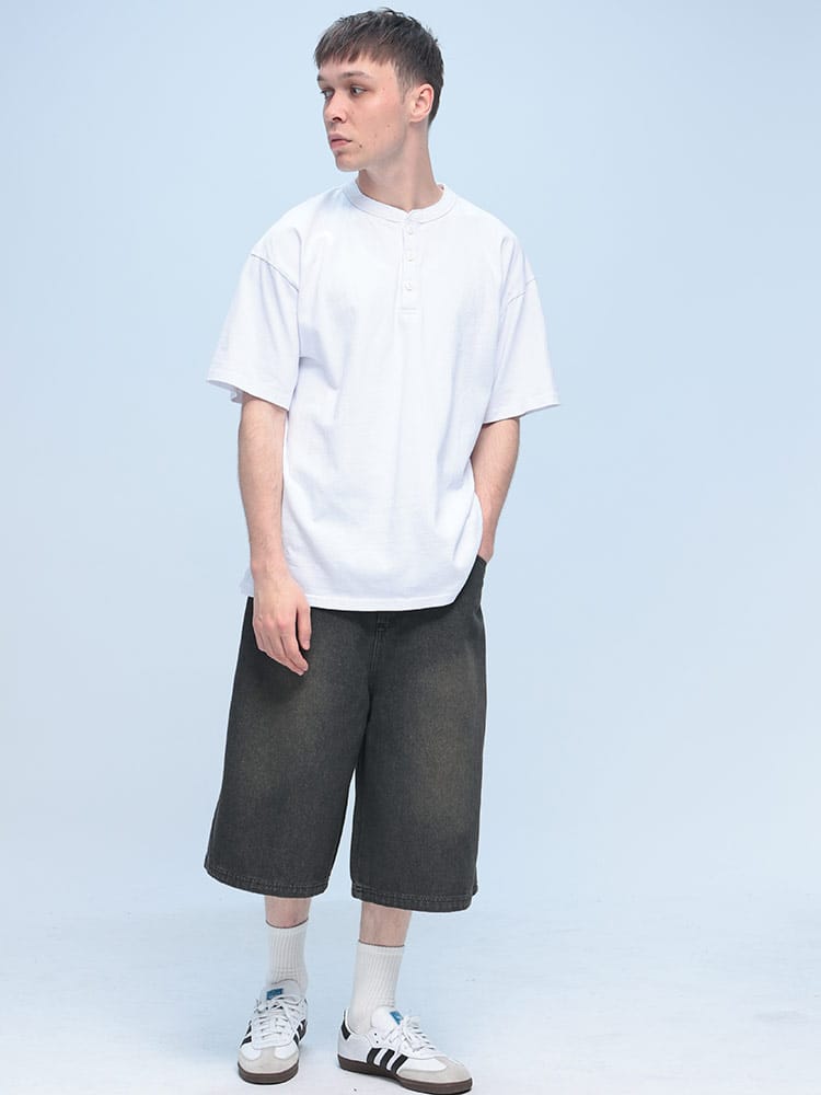 タフなUSAコットンを贅沢に使用したGoodwearのヘンリーネックBIG TEE。その名の通り、ゆったりとしたシルエットが今の気分にぴったり。シンプルながらも存在感があり、一枚でこなれたカジュアルスタイルが完成します。着込むほどに風合いが増すコットン100%の生地は、デイリーユースに最適。ヘンリーネックがさりげないアクセントとなり、無地ながらも表情豊かな印象を与えます。春夏の定番として、長く愛用したい上質な一枚です。