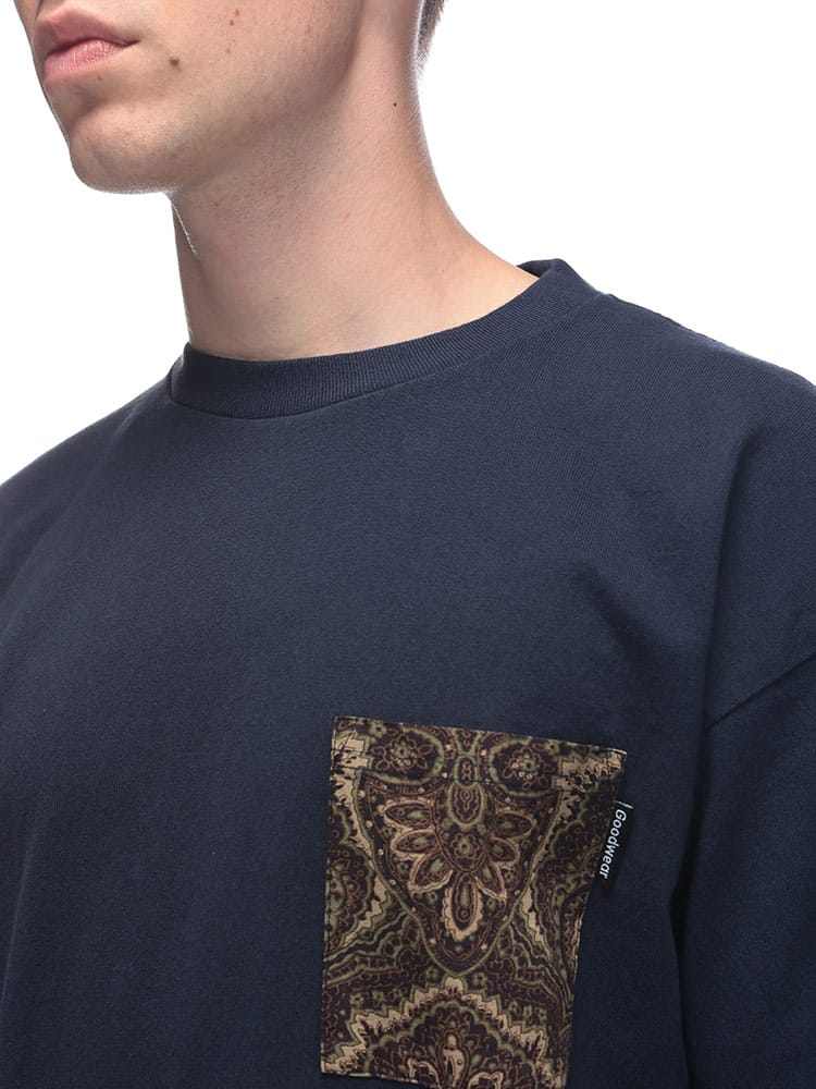 Goodwearから、さりげない個性が光る異素材ポケット付きのクルーネックBIG TEEが登場。タフなUSAコットン100%のボディに、同素材ながらも織り感の異なる生地をポケットに採用。シンプルながらも遊び心を感じさせるデザインです。ゆったりとしたビッグシルエットは、リラックスした着心地を提供し、トレンド感も演出。一枚で着るのはもちろん、レイヤードスタイルにも活躍します。春夏のカジュアルスタイルに差をつける、こだわりの詰まったポケTです。