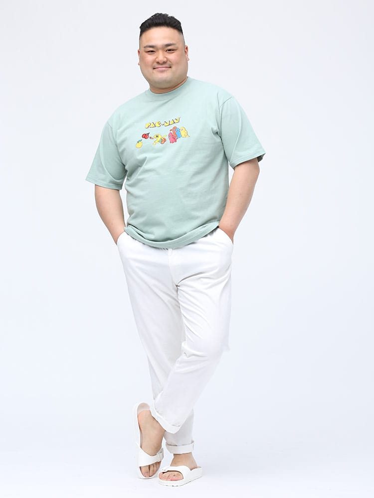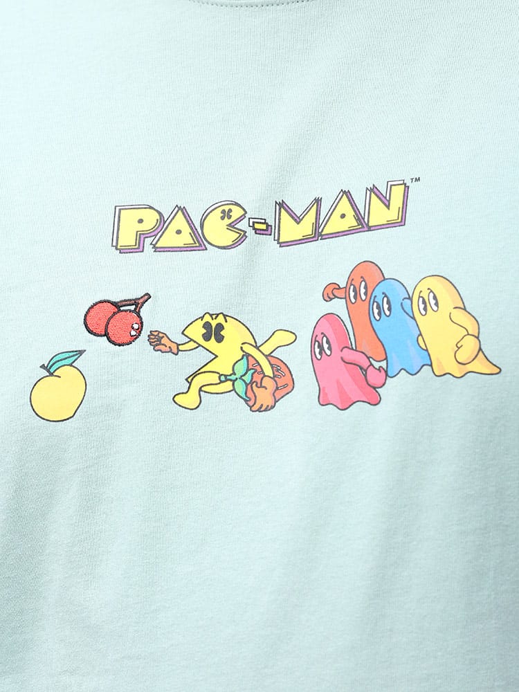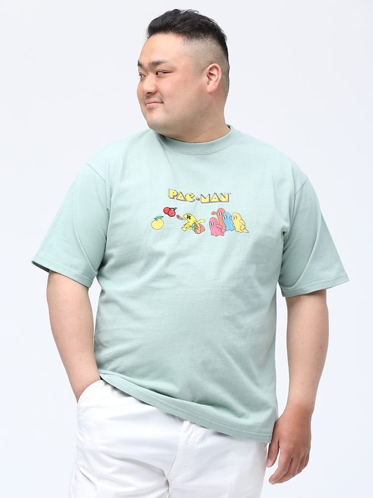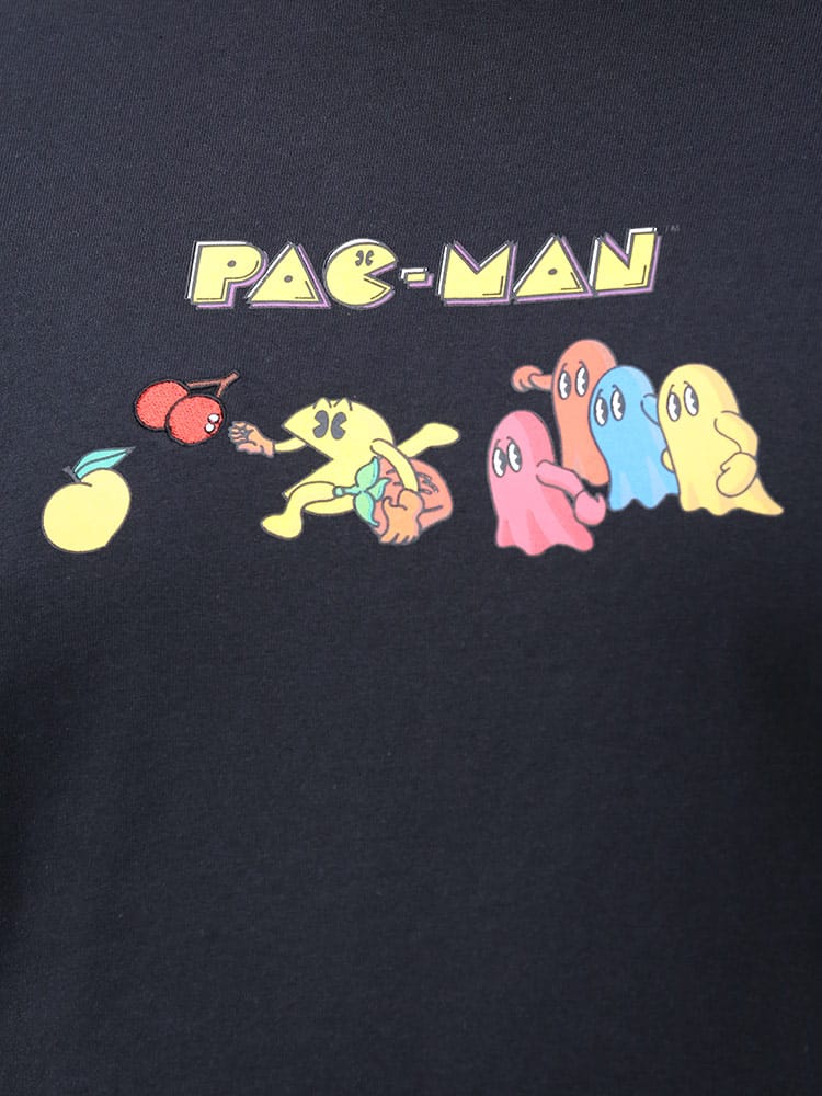 人気ゲームの「パックマン」をプリントしたクルーネック 半袖 Tシャツです。フロントにプリントと刺繍をデザインしたポップながらもお洒落なアイテム。首元はベーシックなクルーネックデザイン。レトロなデザインでコーデにアクセントをプラスしてくれます。