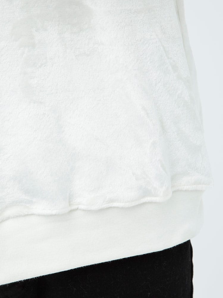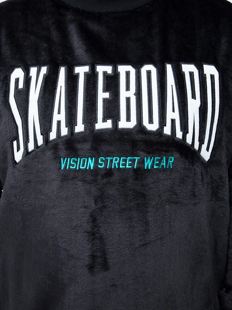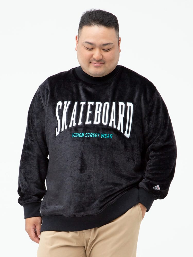 肌触りの良いファーにBIGロゴ刺繍がインパクトのあるVISION STREET WEARのモックネック プルオーバーです。サッと羽織れるプルオーバーデザイン。静電気の発生を緩和させる静電気軽減資材(テープ)を裏地に付けています。首元はモックネックデザイン。左袖にブランドタグ付き。
