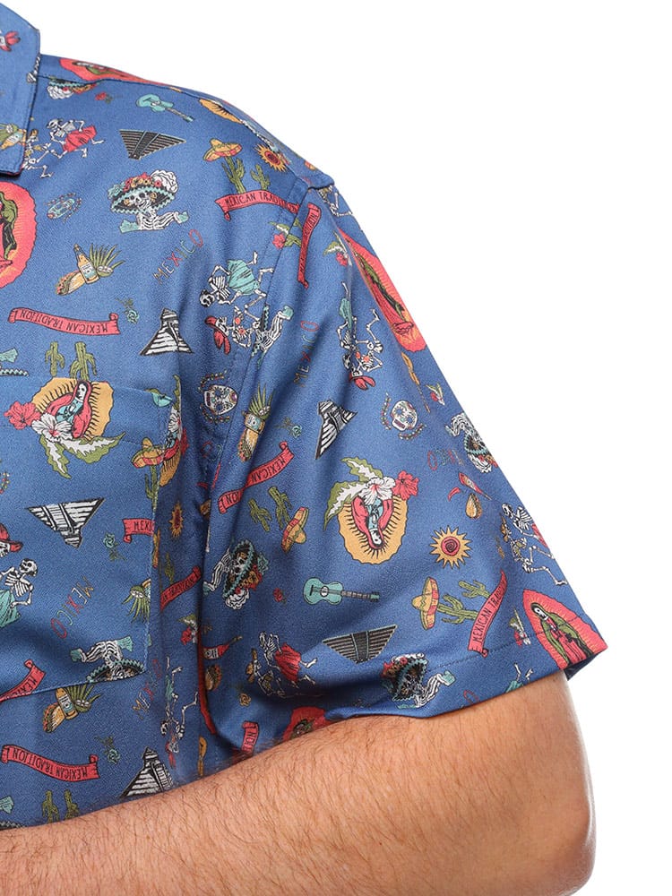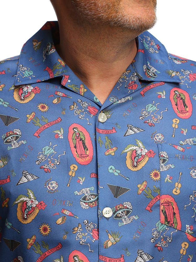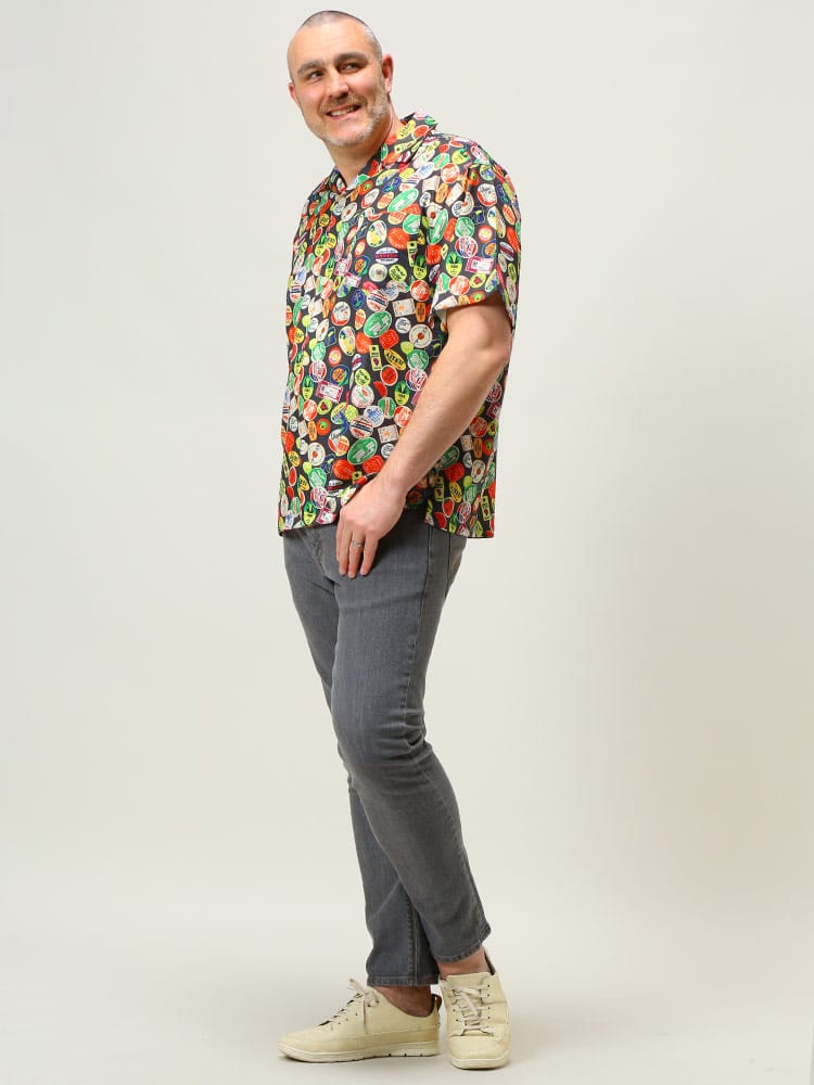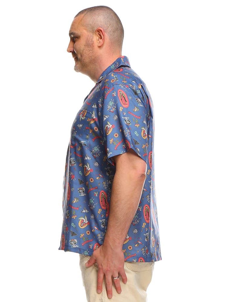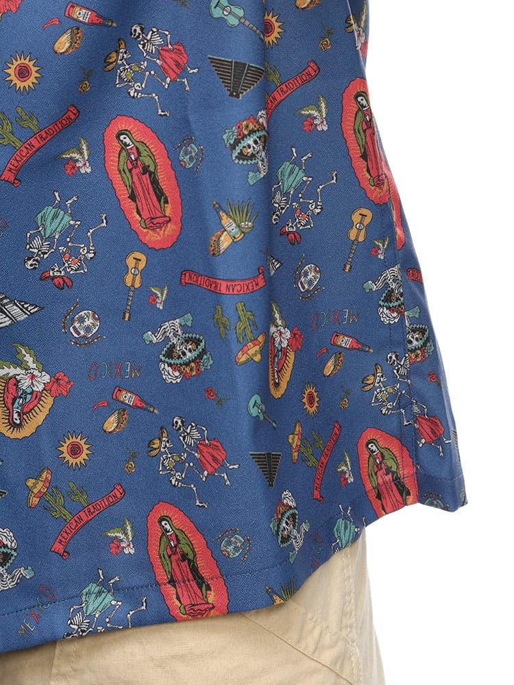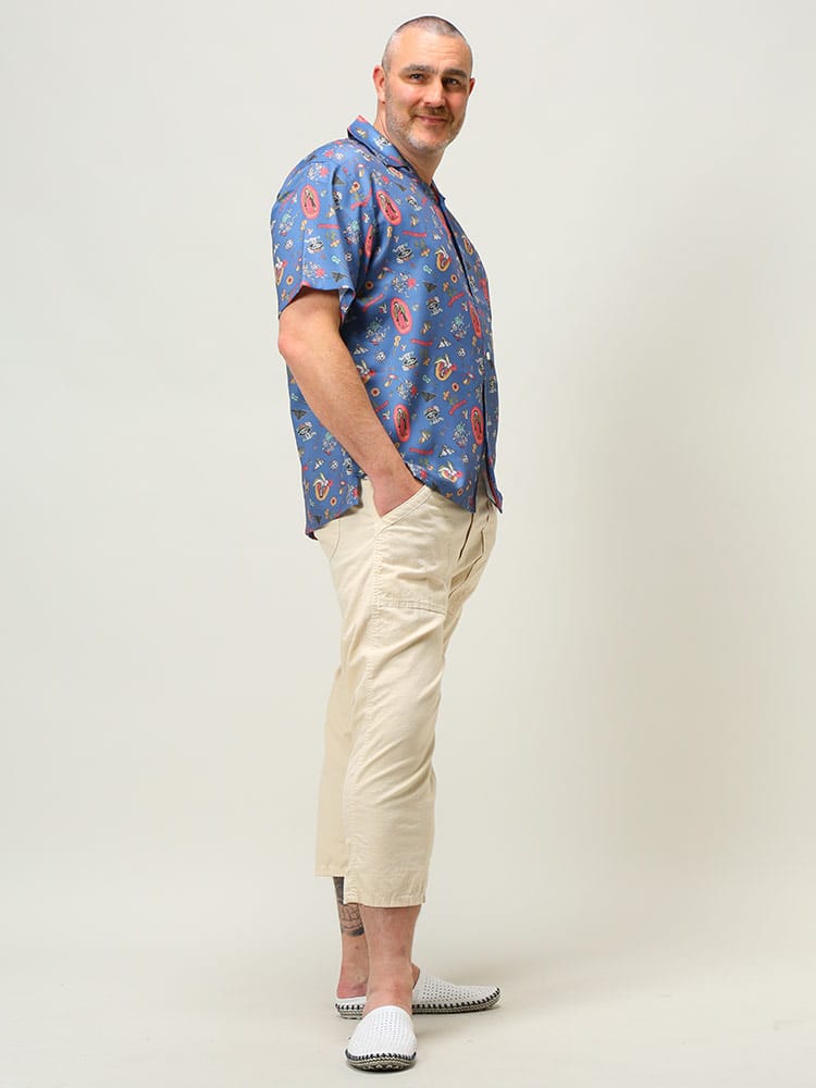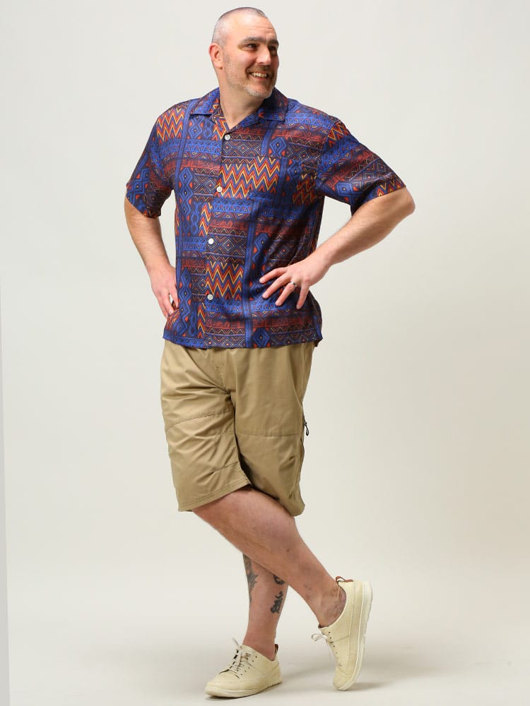 梨地に総柄プリントをデザインしたオープンカラー 半袖 シャツです。左胸ポケットもポイントです。総柄プリントが目を引くデザインで、普段のコーデにアクセントプラスしてくれます。首元はオープンカラーでこなれ感を演出します。裾サイドにスリット入り。