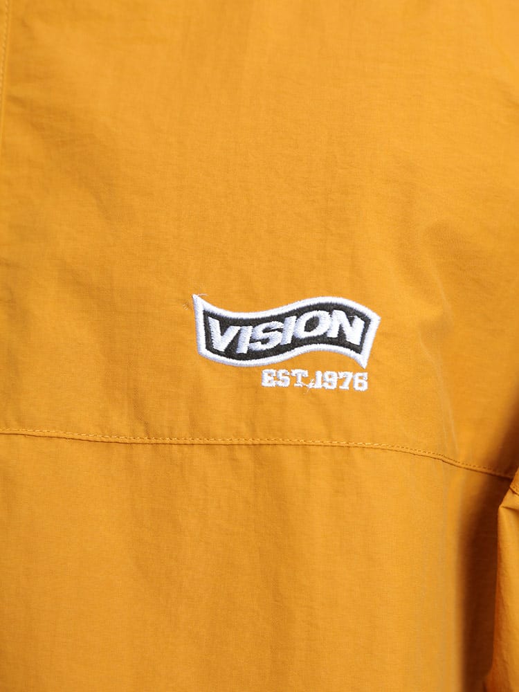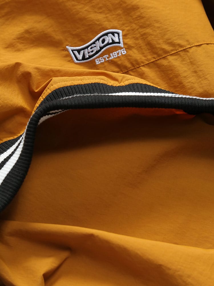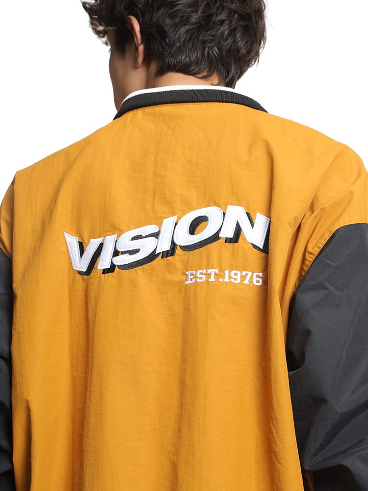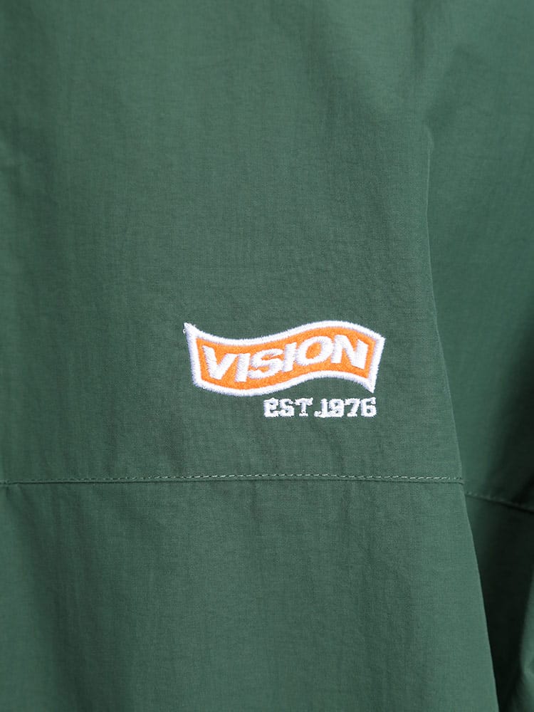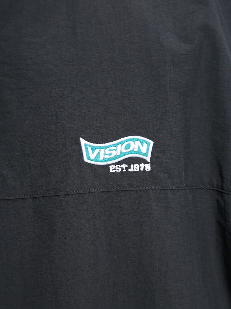 古着からインスピレーションしたポロタイプのナイロンプルオーバー。一枚での着用ももちろんですが、ハーフジップになっているのでパーカーやハイネックのトップスとレイヤードした着こなしもおすすめです。フロントとバックのVISIONロゴの刺繍が、シンプルながらも鮮度のあるデザイン。