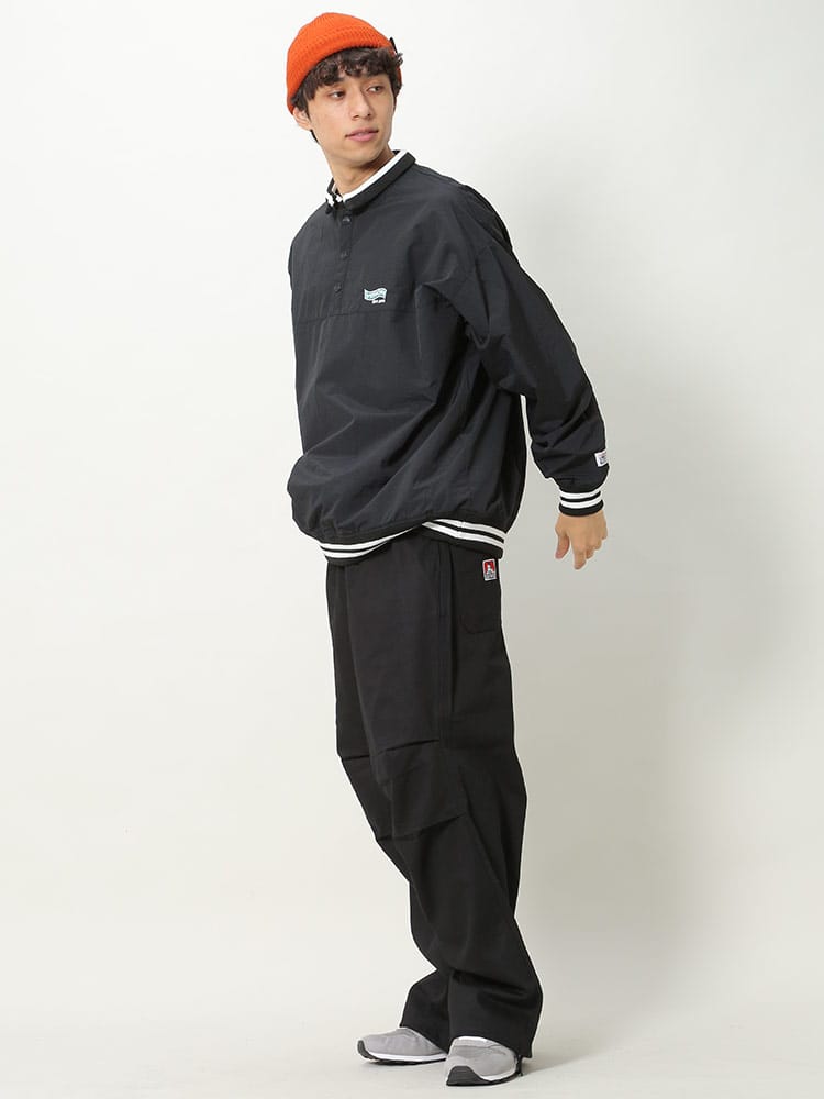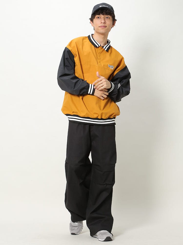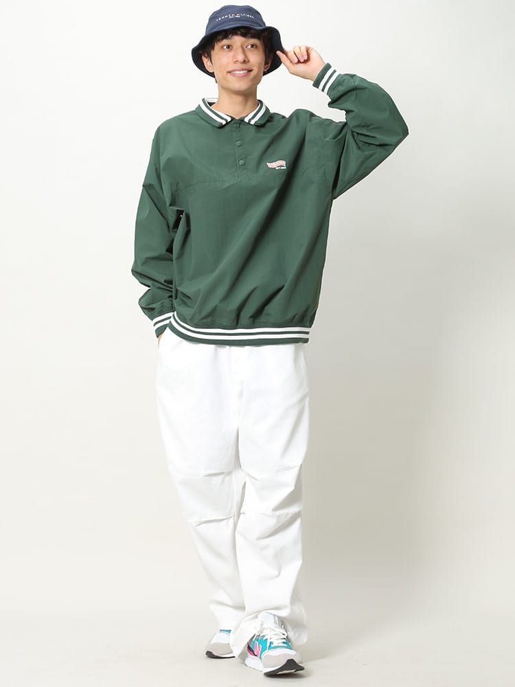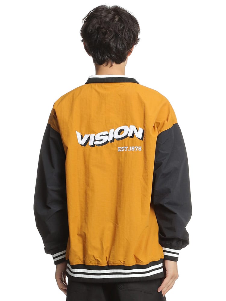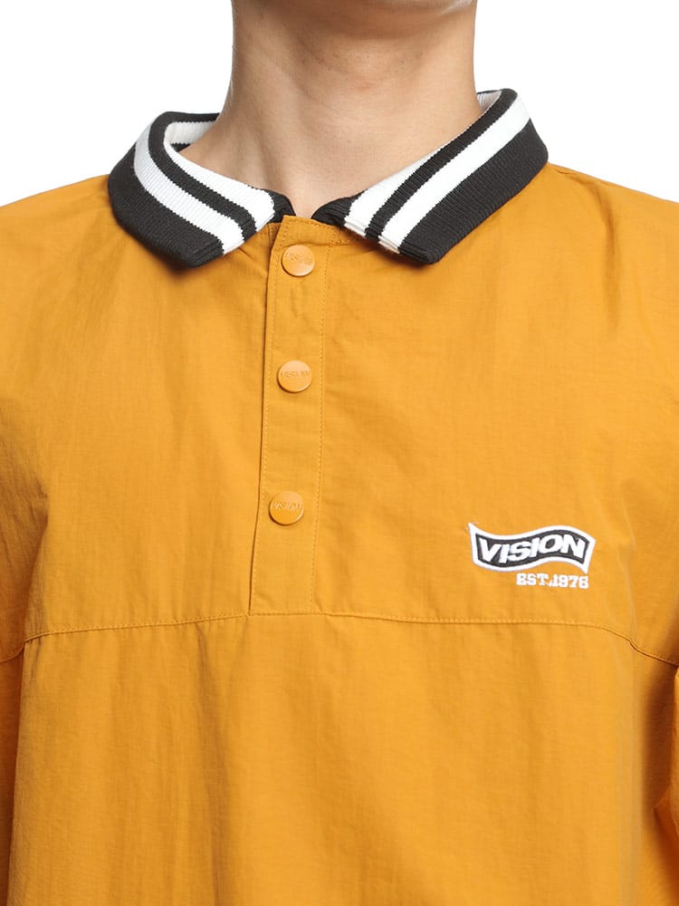 古着からインスピレーションしたポロタイプのナイロンプルオーバー。一枚での着用ももちろんですが、ハーフジップになっているのでパーカーやハイネックのトップスとレイヤードした着こなしもおすすめです。フロントとバックのVISIONロゴの刺繍が、シンプルながらも鮮度のあるデザイン。