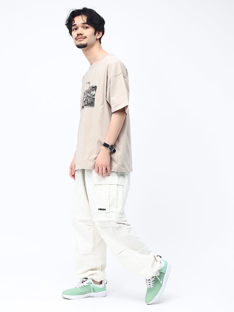 VISION STREET WEARの2WAY コットン カーゴパンツです。オーソドックスなカーゴパンツのシルエット。ヒザ部分にあるジッパーを使用して取り外すと、カーゴショーツとしても使える便利な2WAY仕様となっています。