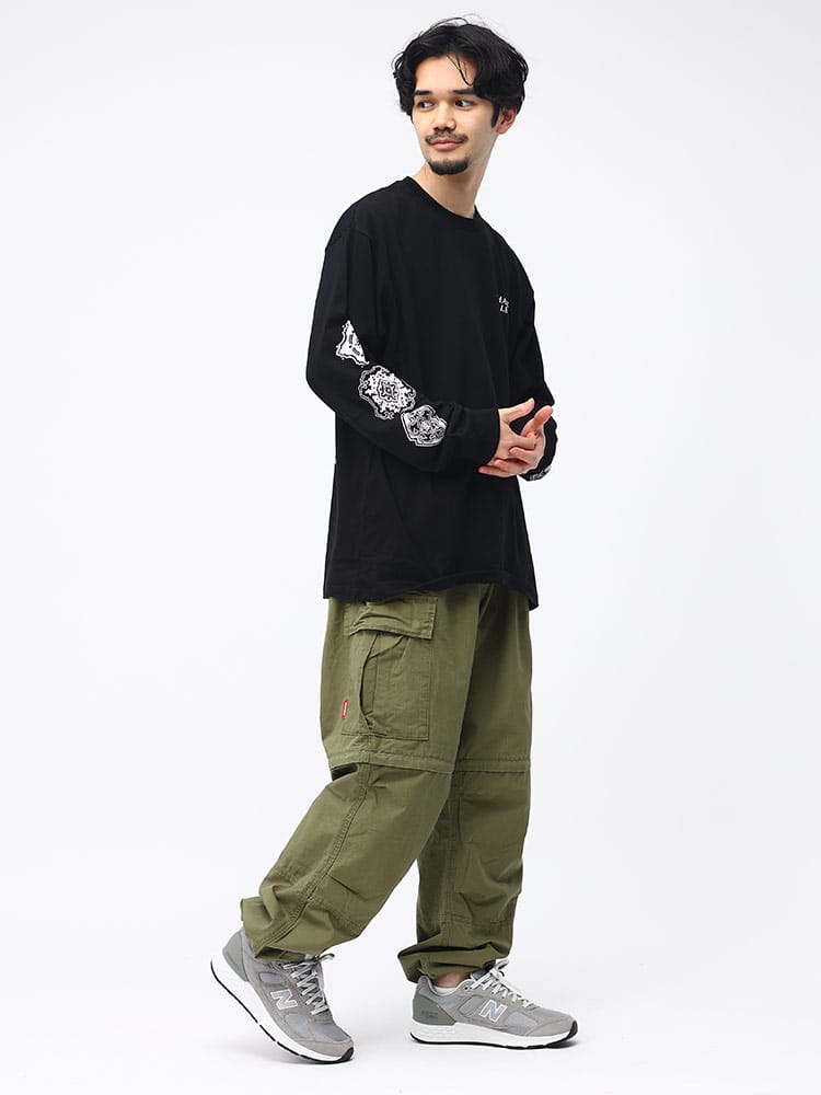 仕様 :外側ポケット数×6つ / ウエスト調節ゴム / ジップフライ / ひざ部分ファスナーでハーフパンツに調節可