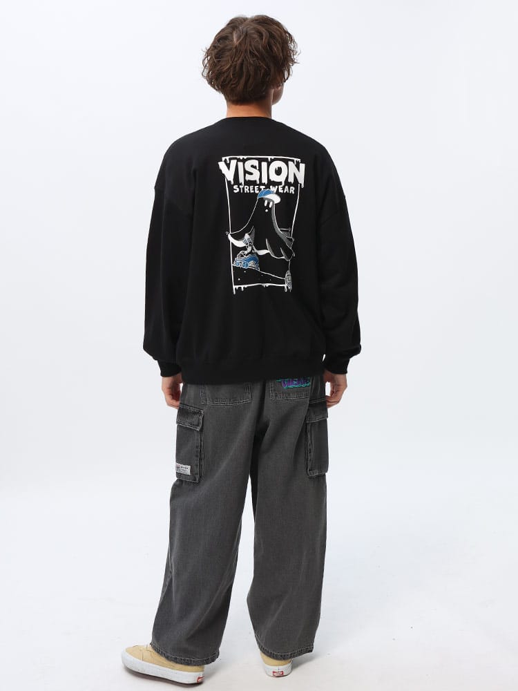 VISION STREET WEAR ヴィジョンストリートウェアのゴーストスケーターバックプリントクルーネックトレーナーは、ストリート感溢れるデザインが魅力です。背面に大胆なゴーストスケータープリントが施され、インパクトのあるルックスに仕上がっています。