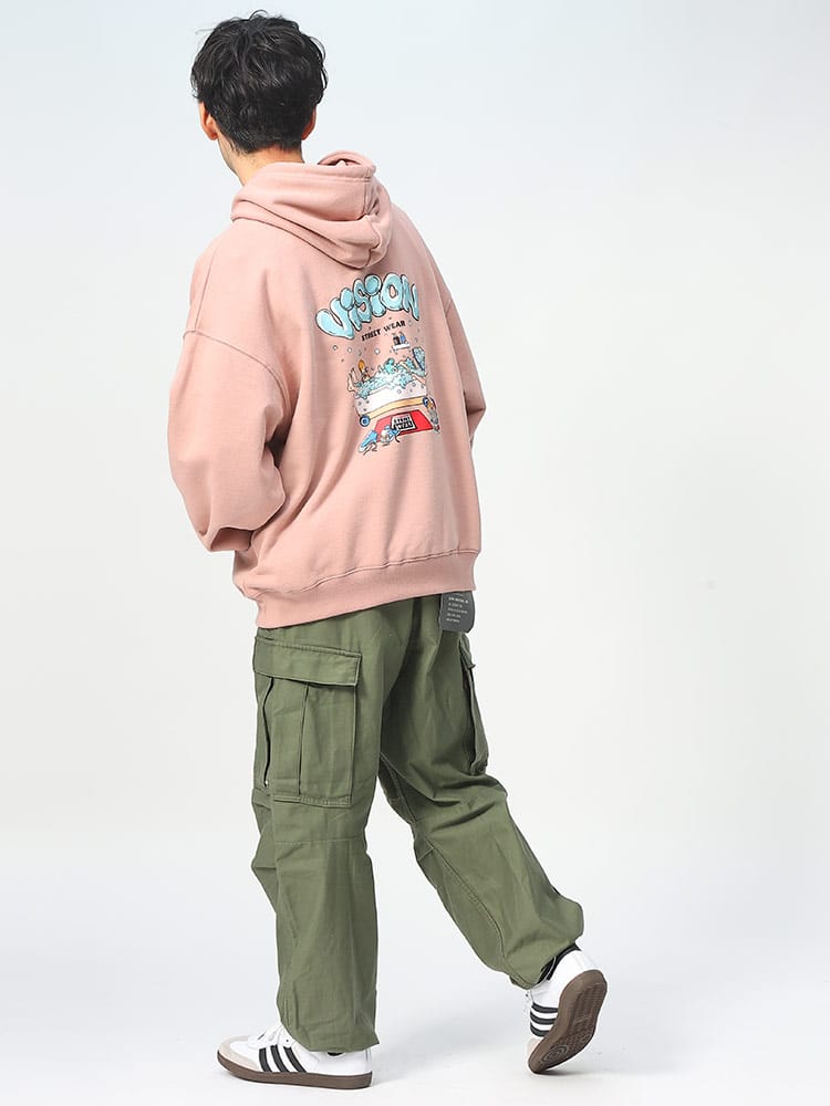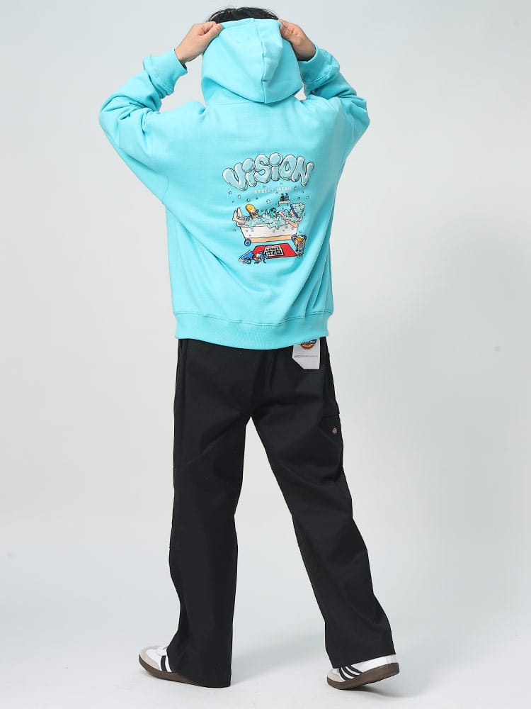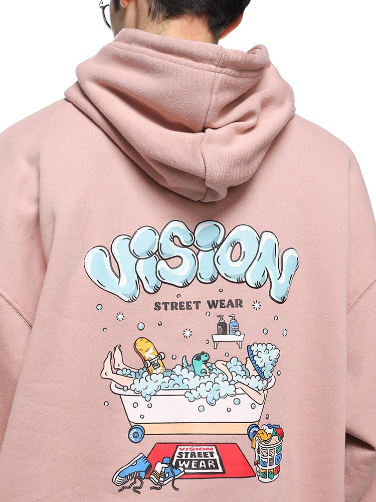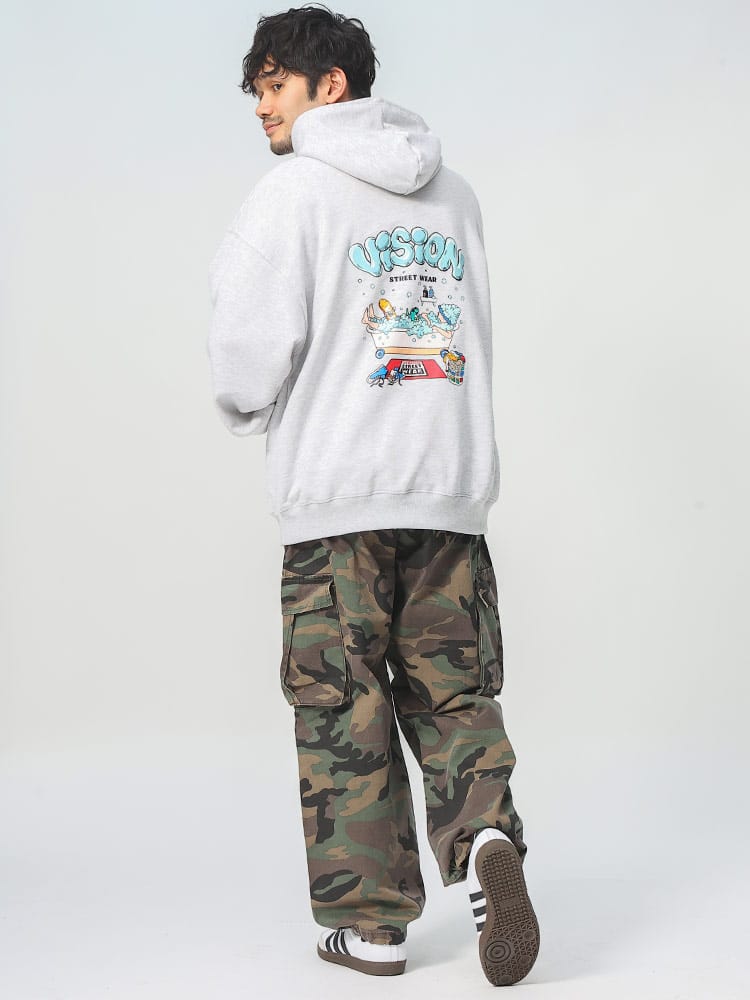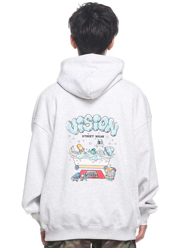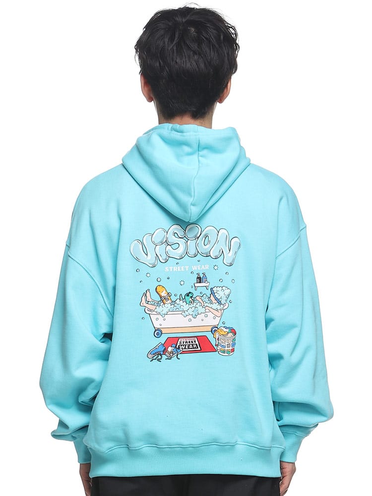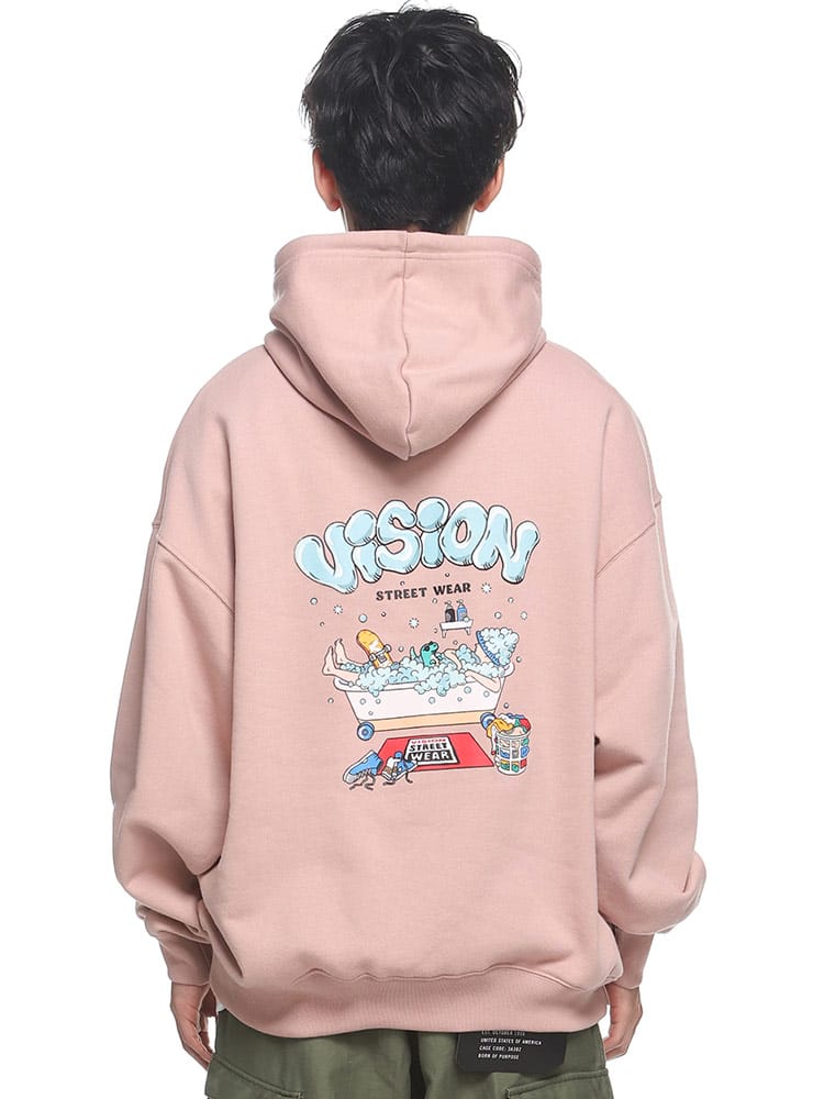 VISION STREET WEARのバスタイムモチーフプリントプルオーバーパーカーは、ユニークなバスタイムのイラストプリントが特徴です。ポップな色使いと楽しいデザインが目を引くこのパーカーは、カジュアルでありながらも個性的なスタイルを演出します。快適な着心地の素材を使用しており、日常のリラックスウェアやアウトドアシーンにも最適。このアイテムは、ストリートファッションを楽しむ若者に向けた、遊び心あるデザインです。
