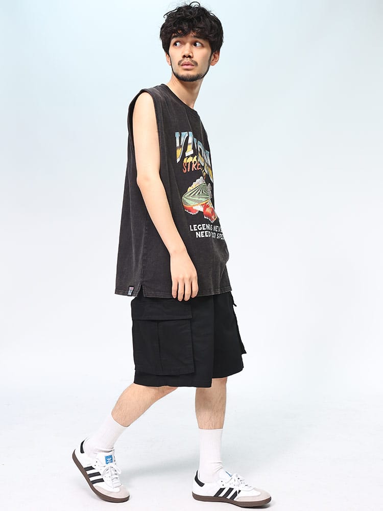 VISION STREET WEARのノースリーブTシャツは、スノーウォッシュ加工とスケボープリントが特徴的な、ストリートスタイルに最適なアイテムです。男女兼用で、ゆったりしたラフな着心地を提供し、クルーネックデザインがカジュアルながらもスタイリッシュな雰囲気を演出します。都市のストリートからレジャーシーンまで、幅広いコーディネートにマッチするユニークなデザインが魅力です。