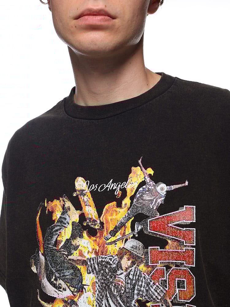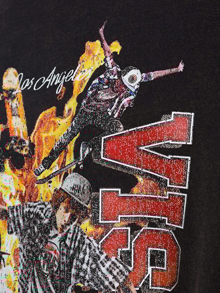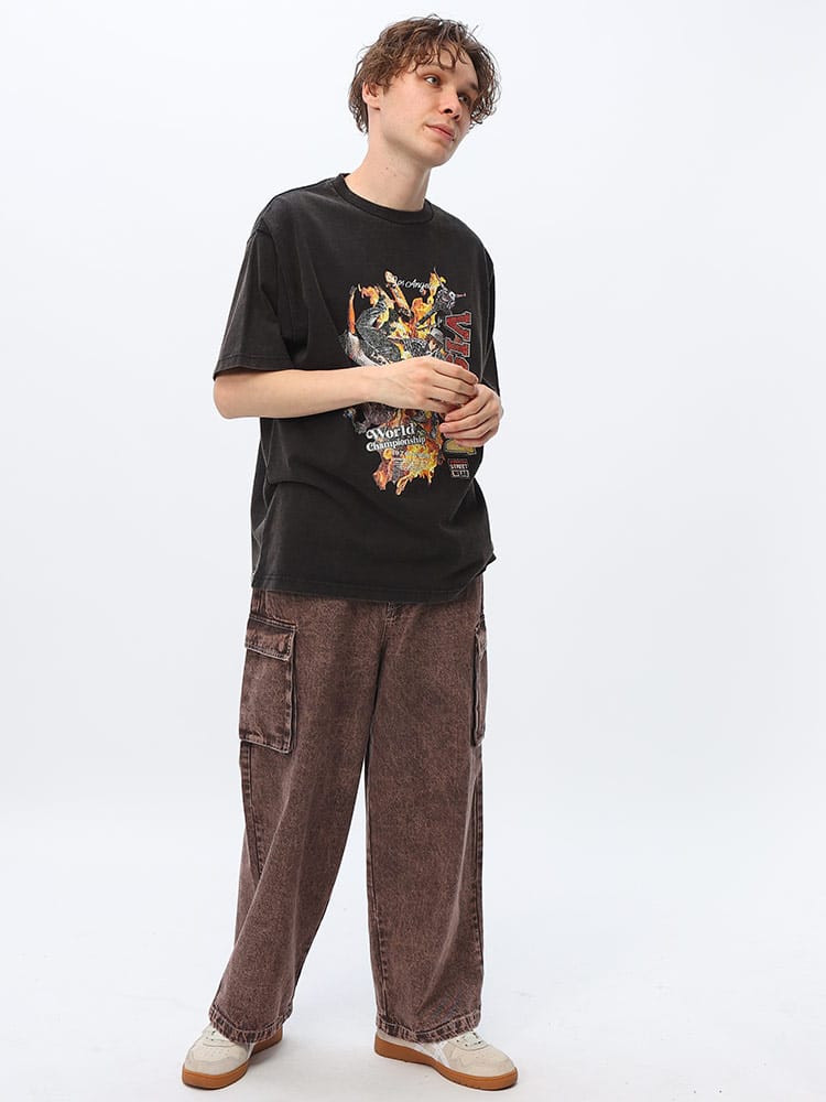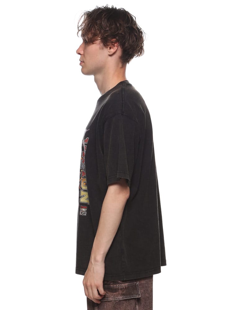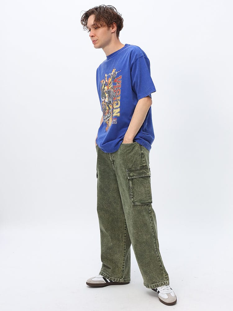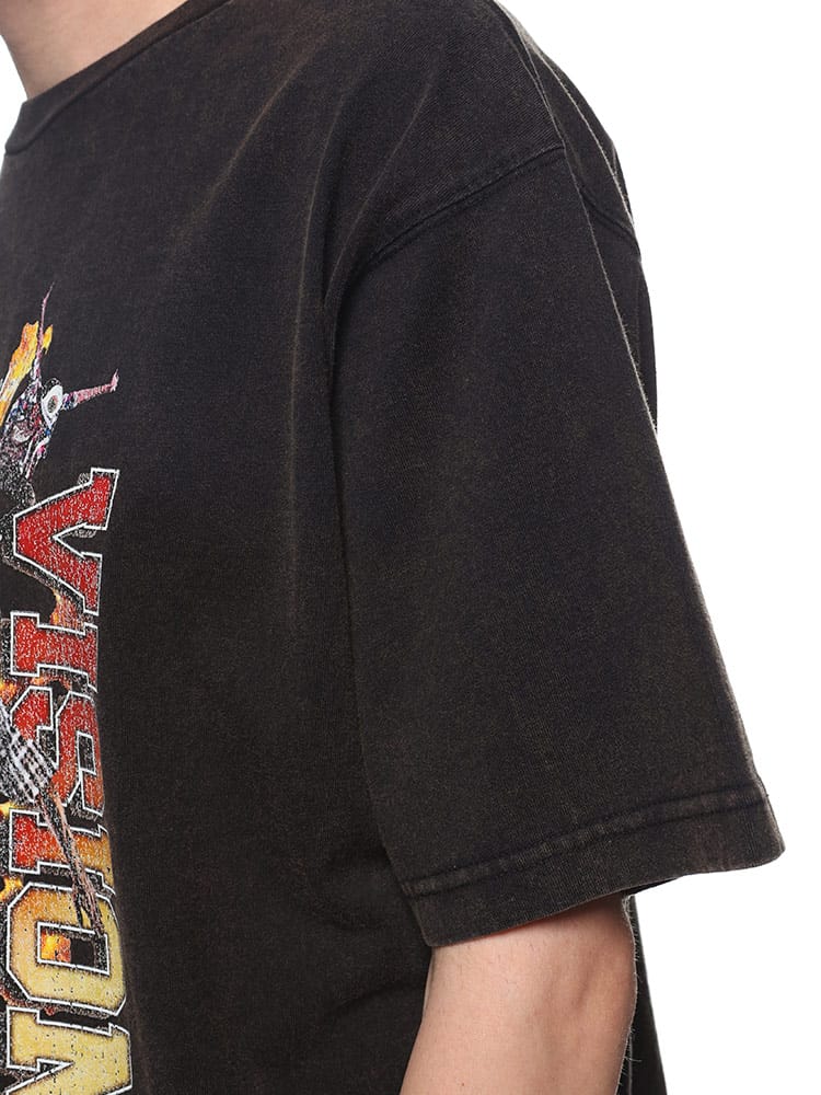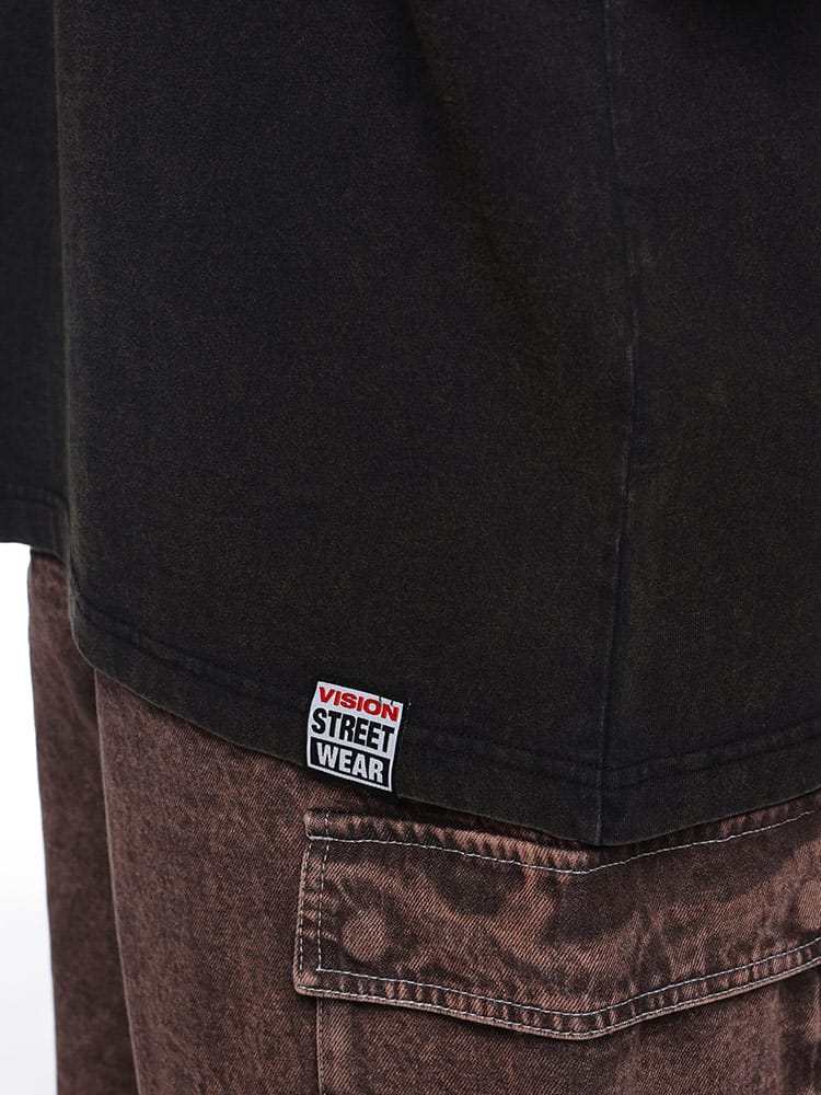 VISION STREET WEAR ヴィジョンストリートウェアのスノーウォッシュ加工スケータープリント半袖Tシャツは、ユニークなヴィンテージ感が魅力です。スノーウォッシュ加工により、個性的な風合いと色合いが楽しめます。大胆なスケータープリントがストリートスタイルを引き立て、カジュアルなシーンに最適です。
