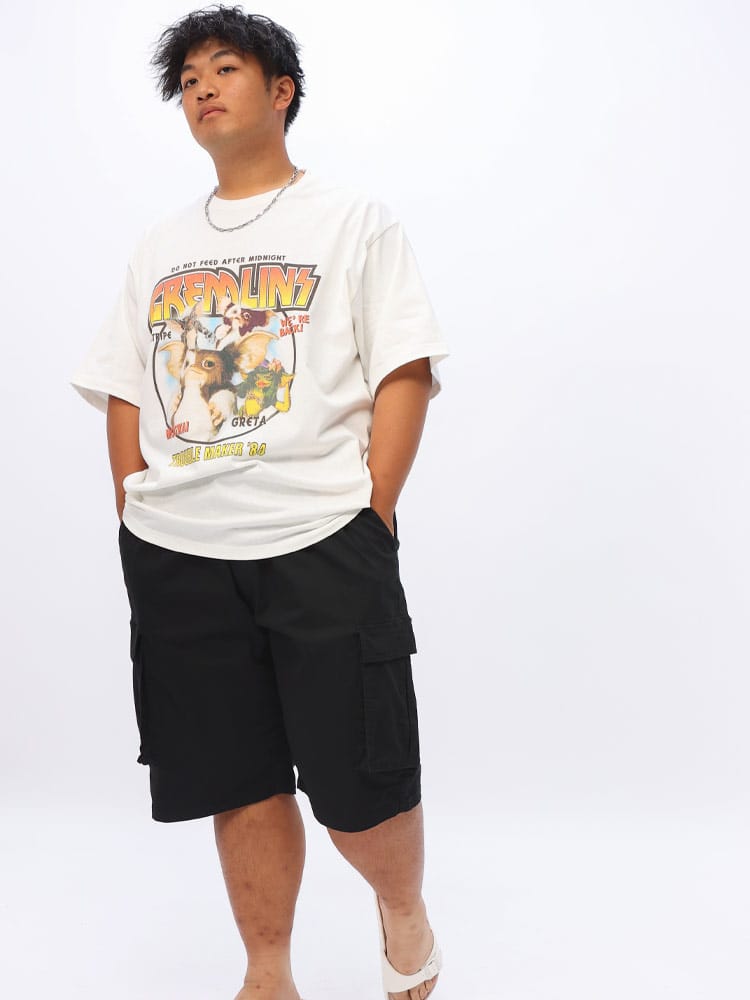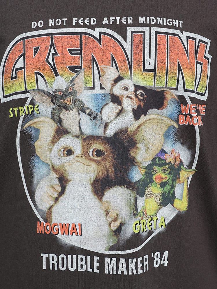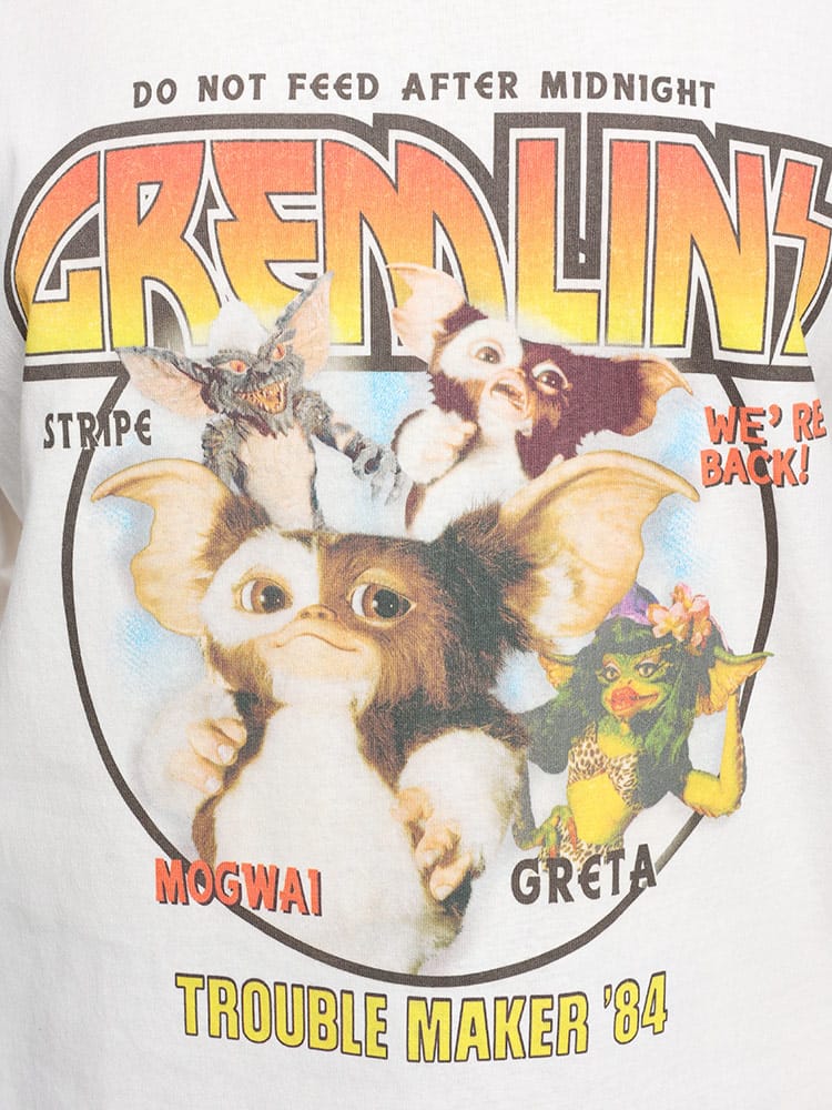 GREMLIN(グレムリン)ロックテイストロゴとグレムリンのフォトプリントをあしらったクルーネック半袖Tシャツは、映画「グレムリン」をテーマにしたスタイリッシュなTシャツです。ロックテイストのロゴとグレムリンのフォトプリントが特徴で、カジュアルながら個性的なデザインです。映画ファンやユニークなファッションアイテムを求める方に最適な一枚です。