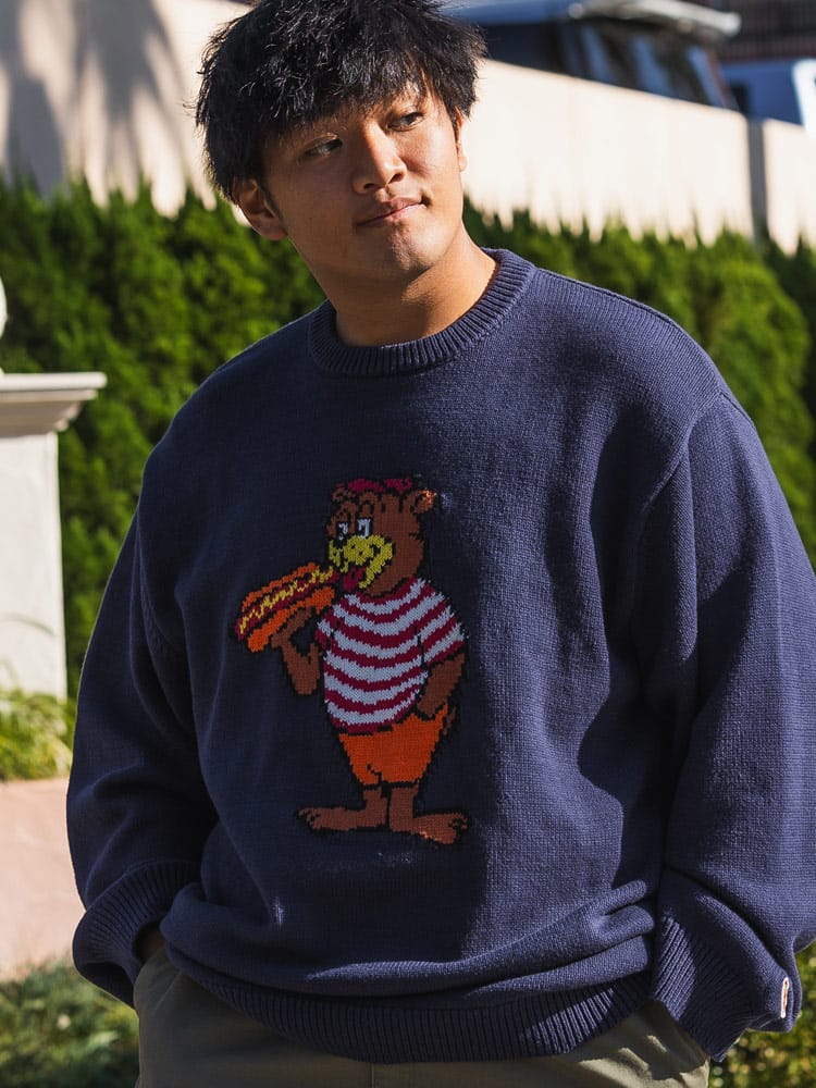 Red Dogsのアニマル柄クルーネックニットセーターは、遊び心あふれるアニマル柄がフロントに施された一着です。なんとも言えない可愛いキャラクターが目を惹き着る人も見る人も虜にしてしまうデザイン!シンプルなクルーネックデザインながら、個性的な柄でコーディネートのアクセントになってくれますよ。秋冬はシンプルになりがちですが、このニットで気分も明るくおしゃれを楽しんでいただけます!ソフトな素材感で着心地も良く、秋冬シーズンにぴったりなカジュアルアイテムです。ユニセックスで着用いただけます。ご自身用はもちろん、プレゼント用としてもオススメです!