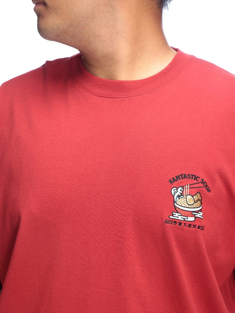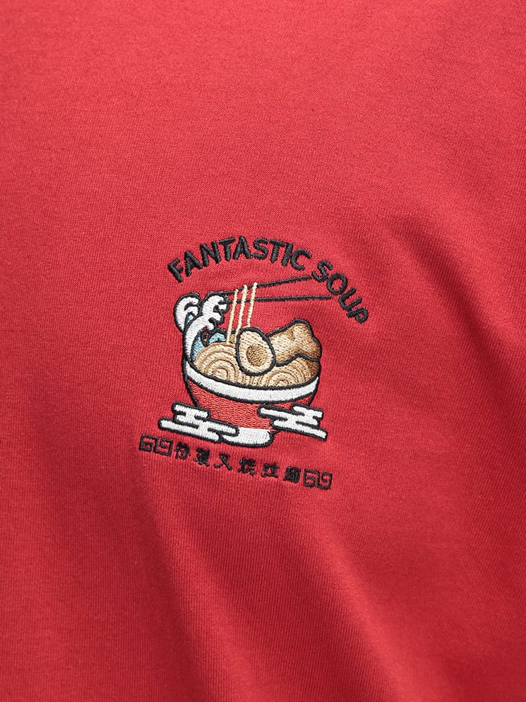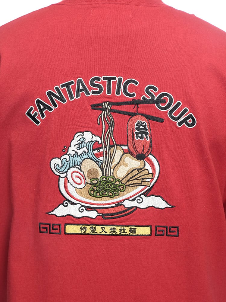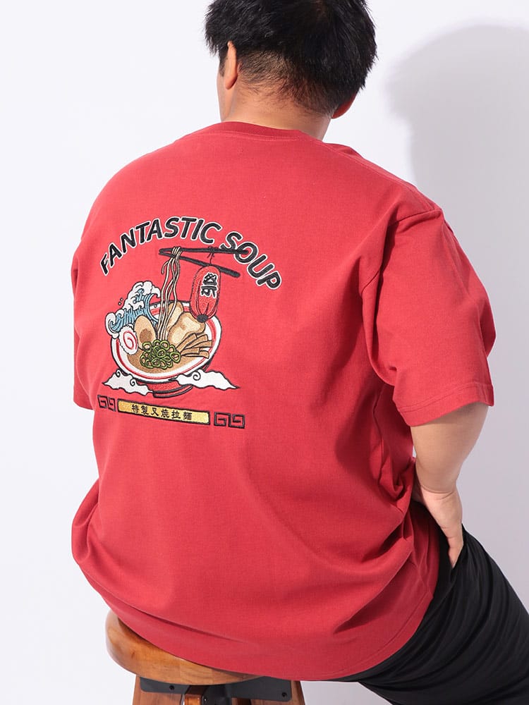食欲をそそる一杯をTシャツに。「POWER TO THE PEOPLE」の拉麺刺繍半袖Tシャツ「FANTASTIC SOUP」が登場!日本の国民食「ラーメン」への愛が詰まった、ユニークな一枚です。上質な綿100%の生地は、柔らかく肌触りも抜群。デイリーユースにぴったりの快適な着心地です。最大の魅力は、胸元に施されたラーメンの精巧な刺繍。湯気まで見えそうなリアルな描写は、ラーメン好きにはたまらないデザイン。バックには「FANTASTIC SOUP」のメッセージがプリントされ、その美味しさを表現しています。クルーネックで着回しやすく、大きいサイズも展開しているので、メンズのカジュアルスタイルに幅広く対応。デニムやイージーパンツと合わせて、日本の食文化を遊び心たっぷりに表現したストリートスタイルを楽しんでみてはいかがでしょうか。ラーメン愛をアピールできる、とっておきの一枚です。