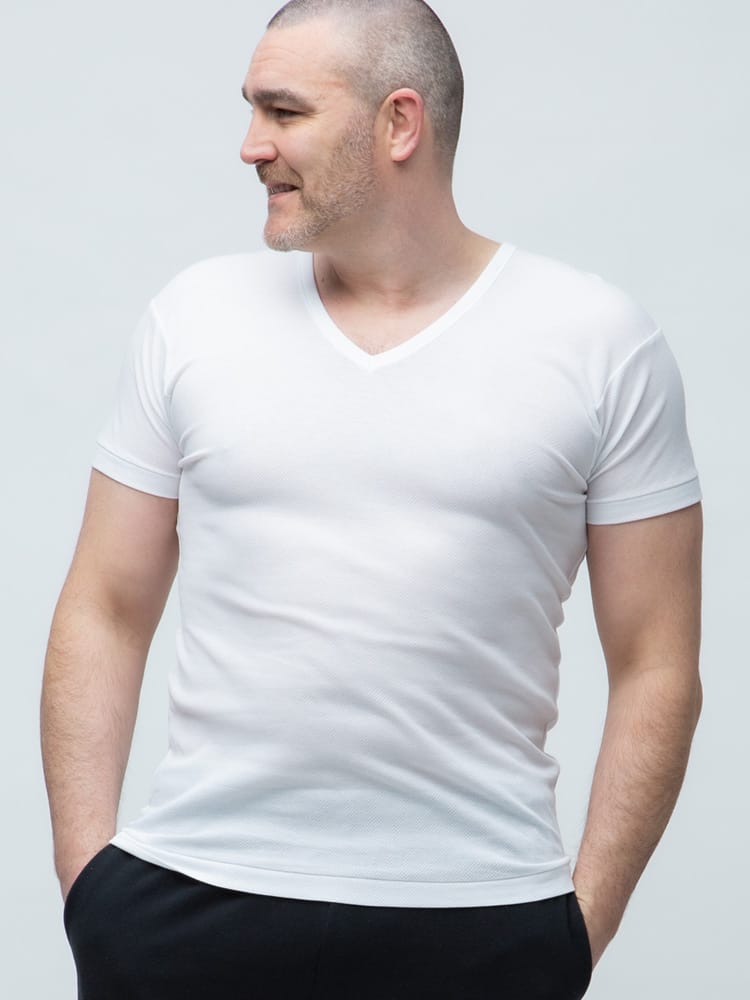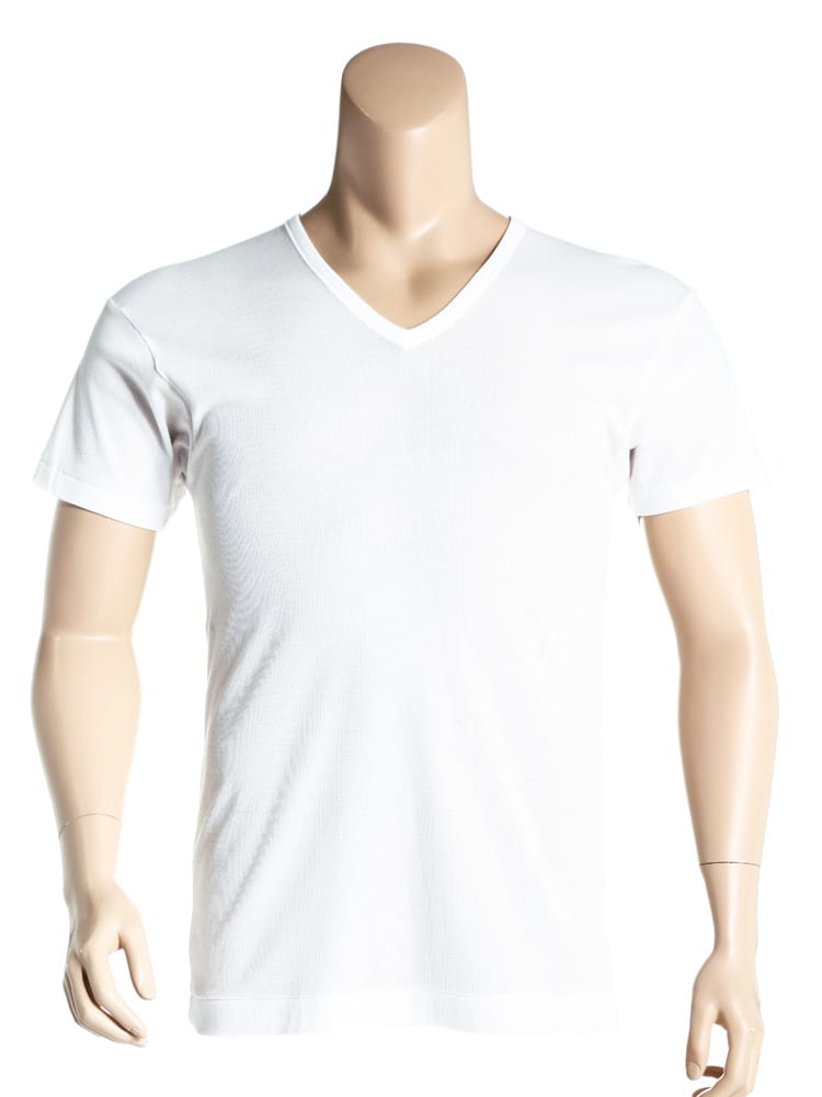 シンプルな無地のデザインのVネック 半袖 アンダーTシャツです。スーツスタイルのインナーとして活躍してくれる一品。伸縮性がある生地で快適な着心地です。コットン素材で肌触りもノンストレスです。接触冷感・吸水速乾・通気性と快適機能を搭載。Vネック仕様でインナーに着た際にスッキリと着れます。春夏シーズンに一枚あると便利な一枚です。
