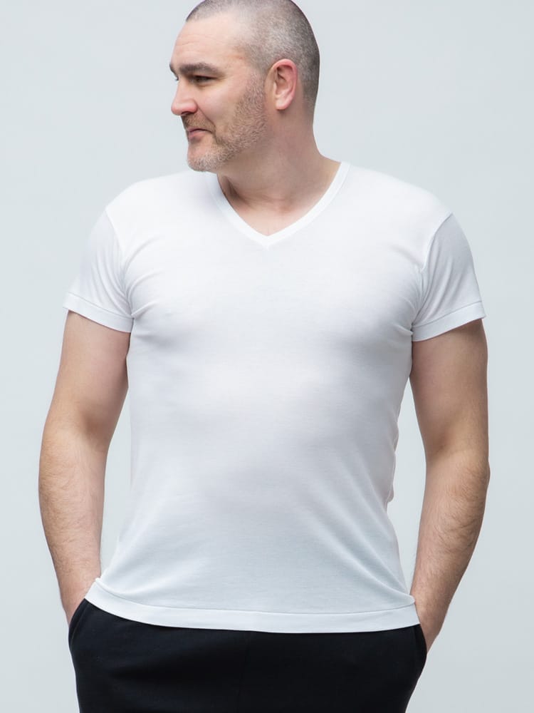 シンプルな無地のデザインのVネック 一分袖 アンダーTシャツです。スーツスタイルのインナーとして活躍してくれる一品。伸縮性がある生地で快適な着心地です。コットン素材で肌触りもノンストレスです。接触冷感・吸水速乾・通気性と快適機能を搭載。Vネック仕様でインナーに着た際にスッキリと着れます。春夏シーズンに一枚あると便利な一枚です。