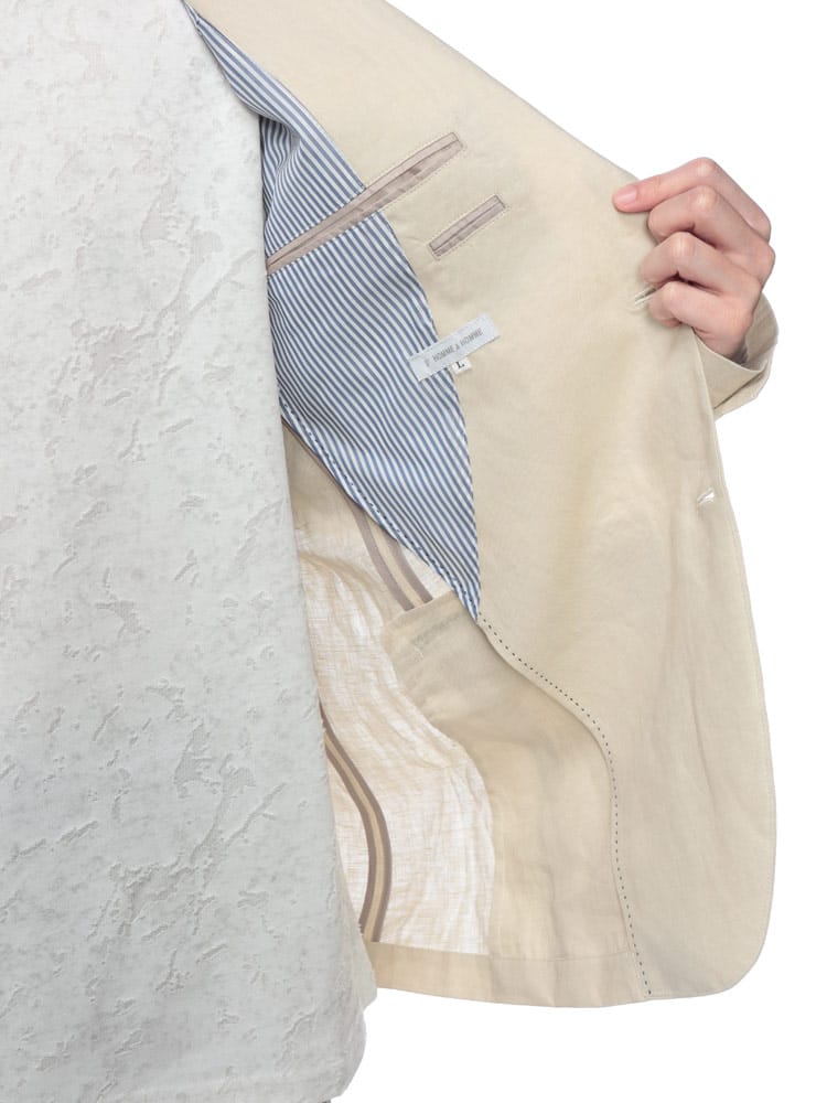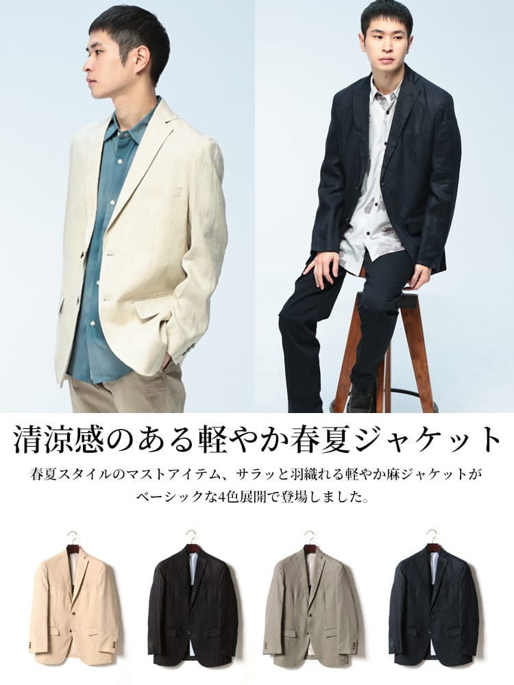 リネン100%で仕上げた清涼感たっぷりのサマージャケット。シンプルなデザインなので、合わせるアイテムを選ばず万能に活躍します。ダーツやセンターベントの入ったすっきりとしたベーシックなフォルムも魅力の1着です。