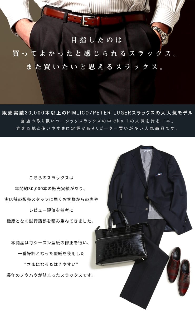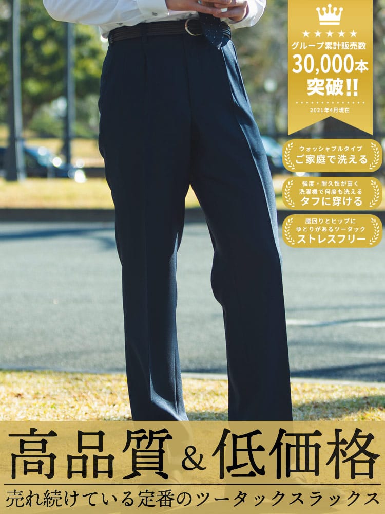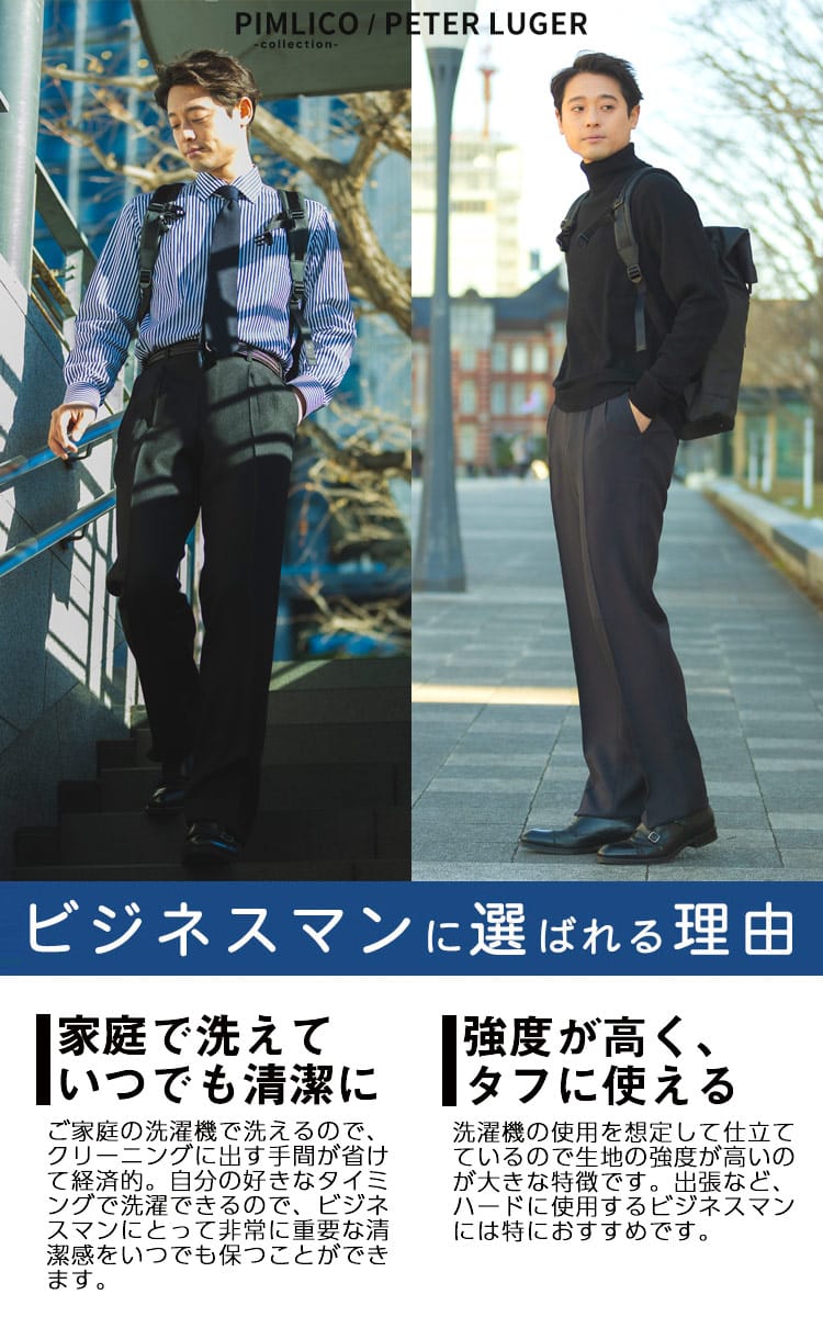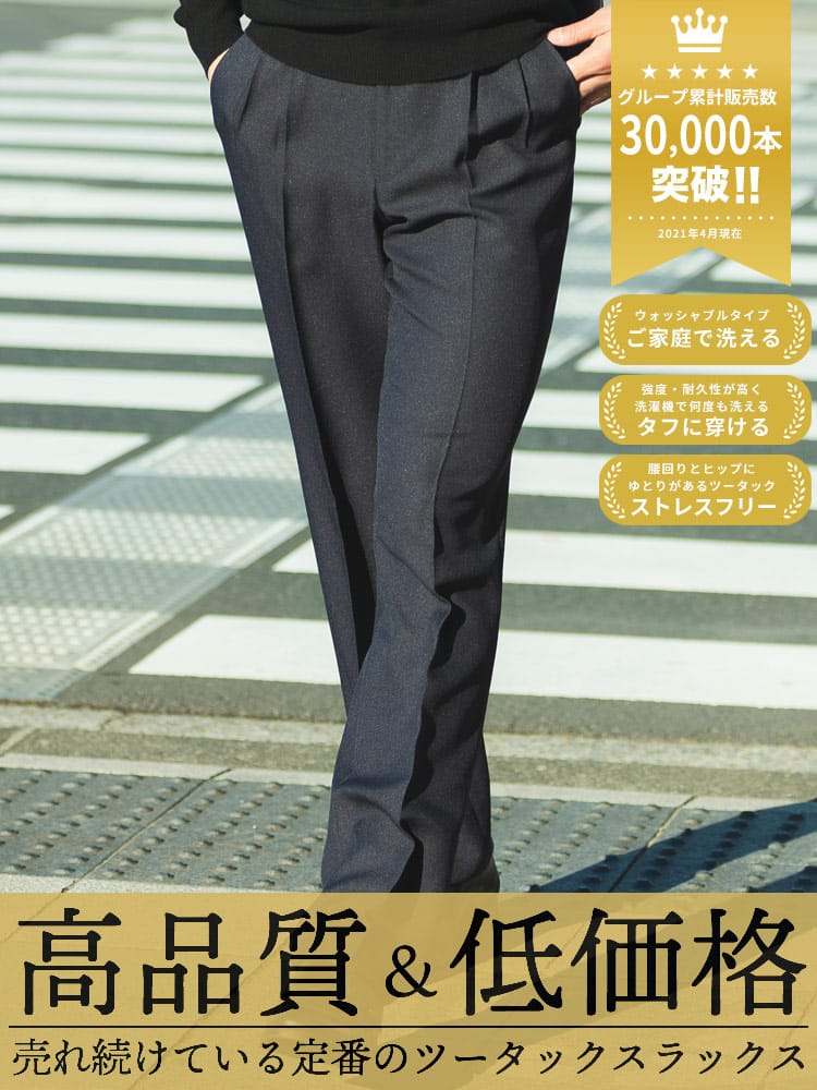 仕様 :外側ポケット数×4つ / パンツウォッシャブル可 / ツータック / ジップフライ