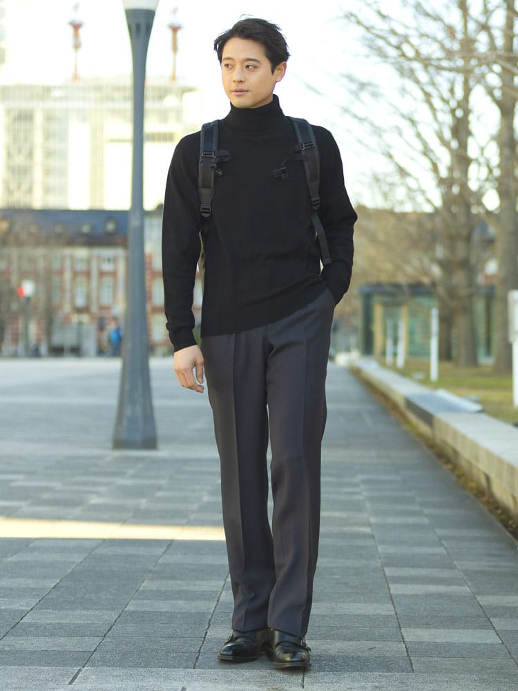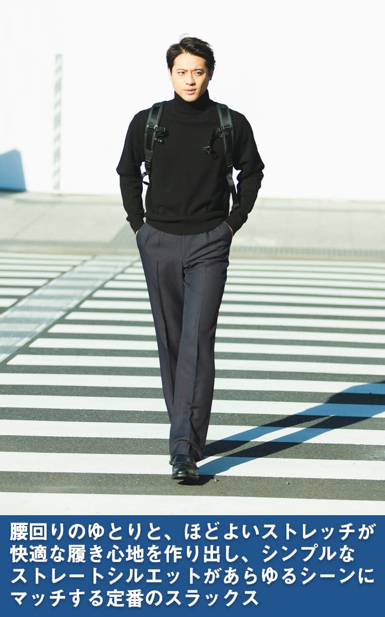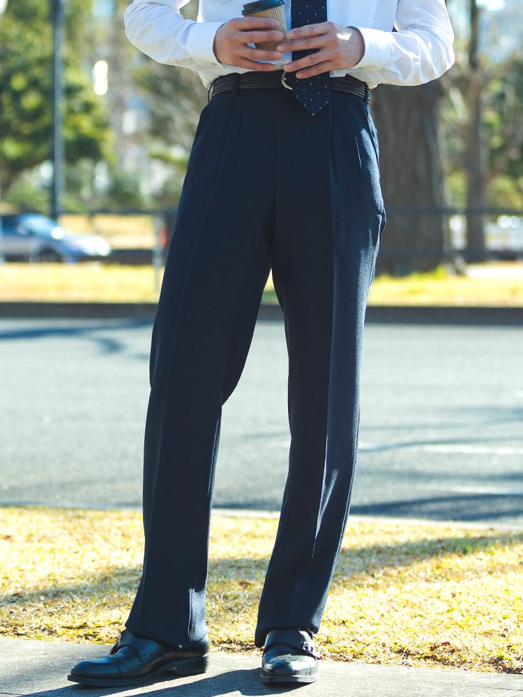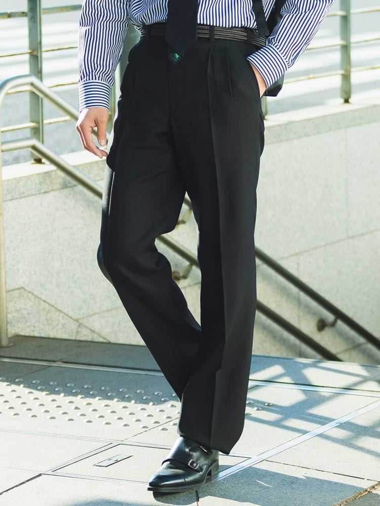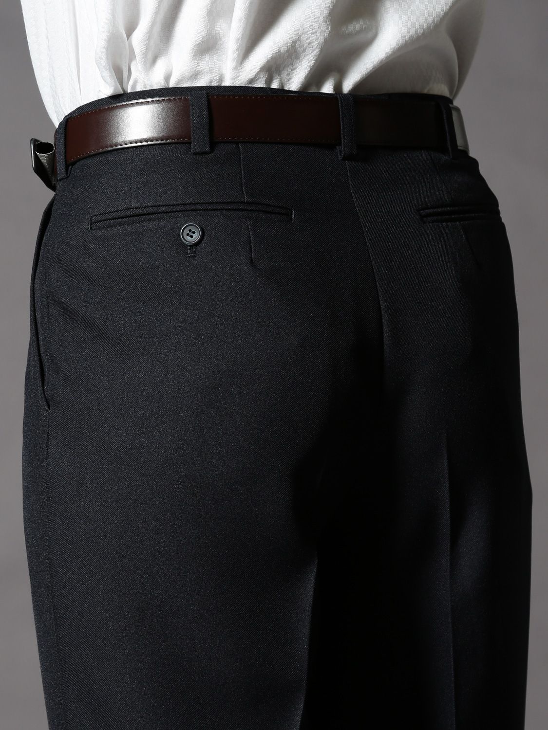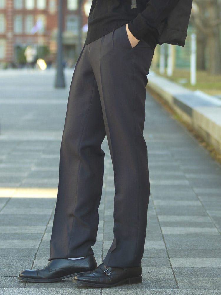 ウエストにタックを入れてゆとりのあるシルエットに仕上げたスラックスです。ウォッシャブル可能なお手入れが楽な1本。濃い落ち着いたカラーなので合わせるアイテムも選びません。ビジネスシーンに重宝します。