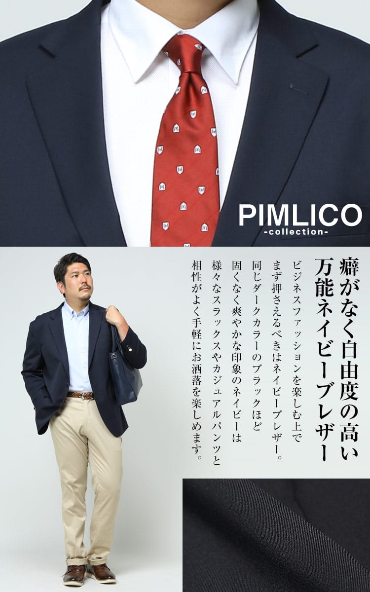 便利に着まわしのできる「ピムリコ」のシングルブレザーです。ポリエステル、ウールの生地を使用した上品な仕上がりも魅力。フロントの二つ釦がポイントです。お手持ちのパンツと合わせて、おしゃれなジャケパンスタイルをお楽しみください。