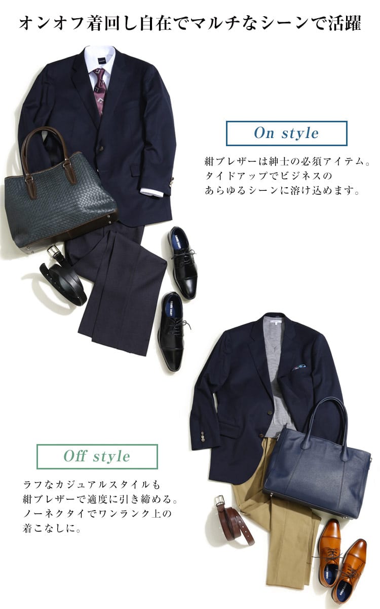 ![]() | 品格のあるネイビーカラー・細部にまでこだわった品質・モダンで若々しい印象を与えるメタル釦 ビジネスシーンからきれいめなカジュアルスタイルまで幅広く着回せるアイテムです >> 商品ページはこちら |