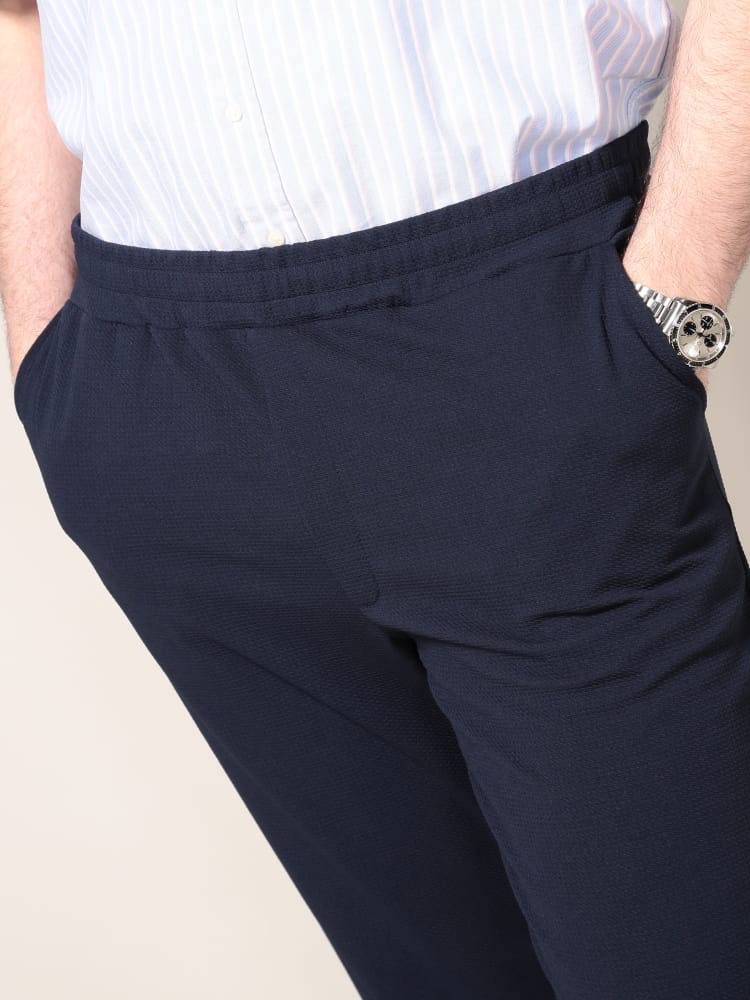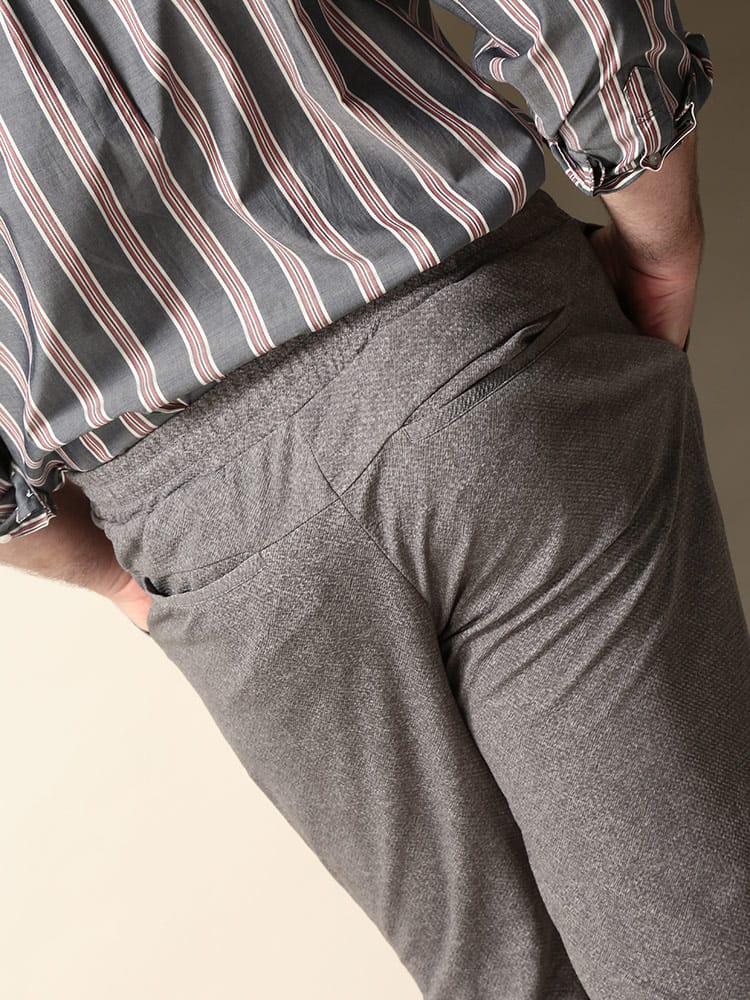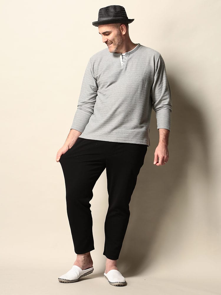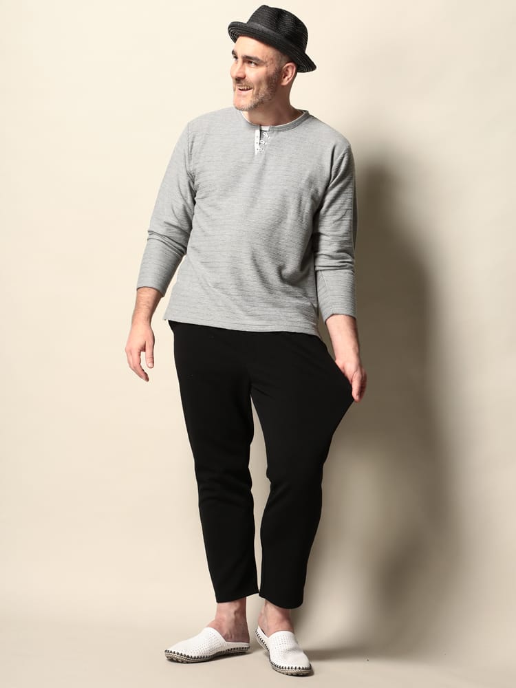 快適な穿き心地のワッフル アンクルカット パンツです。シワになりづらい、ストレッチ性、柔らかい手触り、すぐ乾くとストレスを感じない快適ウェアの「快ラクWEAR」。ウエストはゴムとドローコード付きでゆったりとした着用感。リラックス感のあるアイテムで普段のコーディネートにこなれ感をプラスしてくるアイテムです。