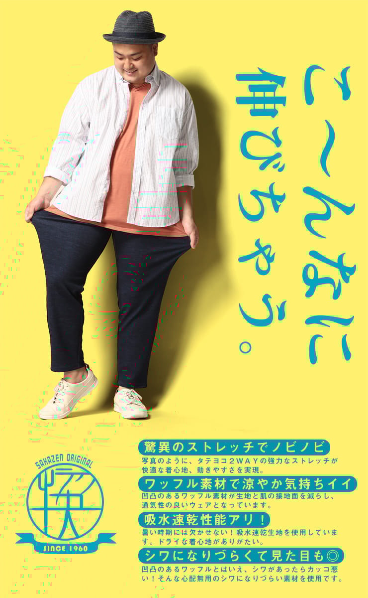 大きいサイズ メンズ B&T CLUB (ビーアンドティークラブ) 快ラクWEAR 快楽 カイラク ストレッチ 速乾 ワッフル アンクルカット パンツ