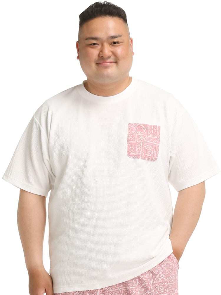 快適機能をもったワッフル 切り替えポケット クルーネック 半袖 Tシャツ。ワッフル地を使用し、程よいリラックス感があるアイテム。左胸ポケットのデザインがポイントです。ラフに着てもシワになりづらい、ストレッチ性、柔らかい手触り、すぐ乾くドライな着心地を提供するKAITEKI WEAR仕様。リラックススタイルにおすすめの一枚です。