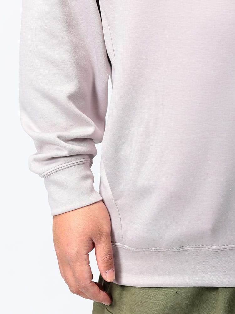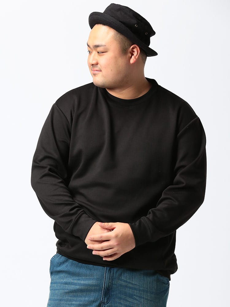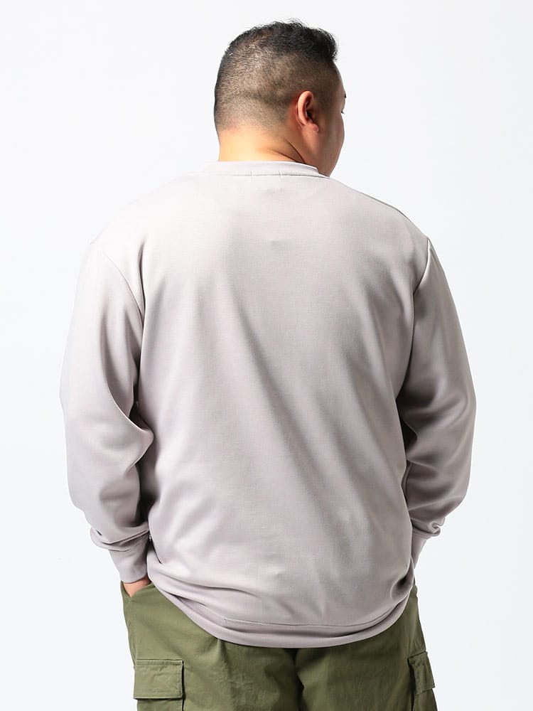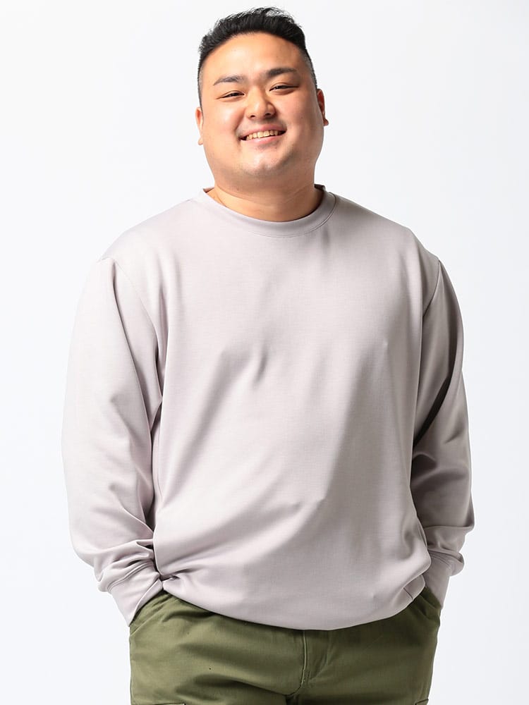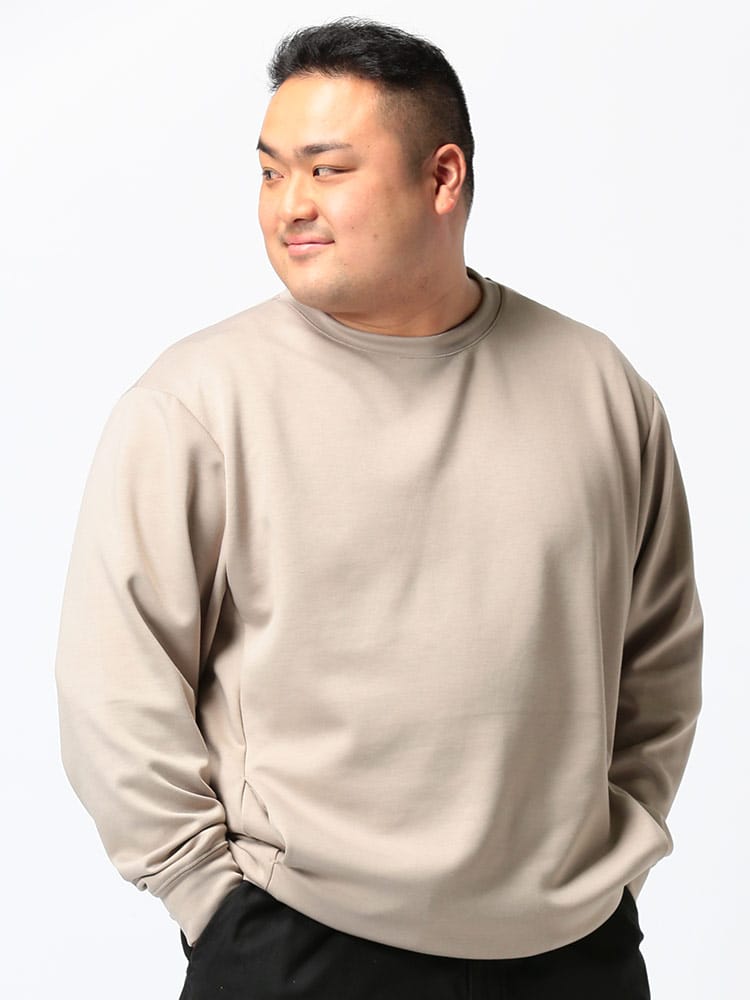 ハリ感がありストレッチ性のあるライトダンボール地を使用したポケット付 クルーネック 長袖 トレーナーです。無地のベーシックなデザイン。サイドにポケット付き。落ち着いたデザインで大人のカジュアルスタイルにおすすめの1枚です。