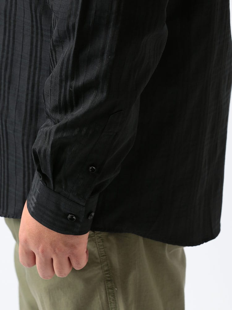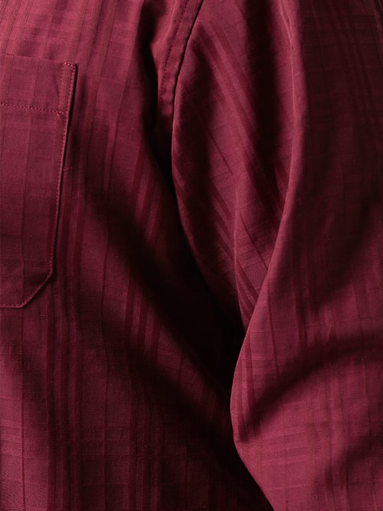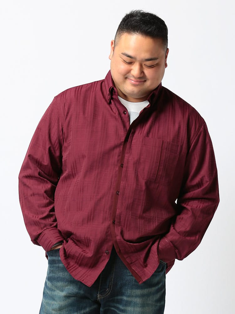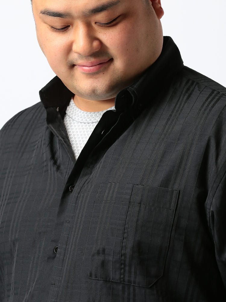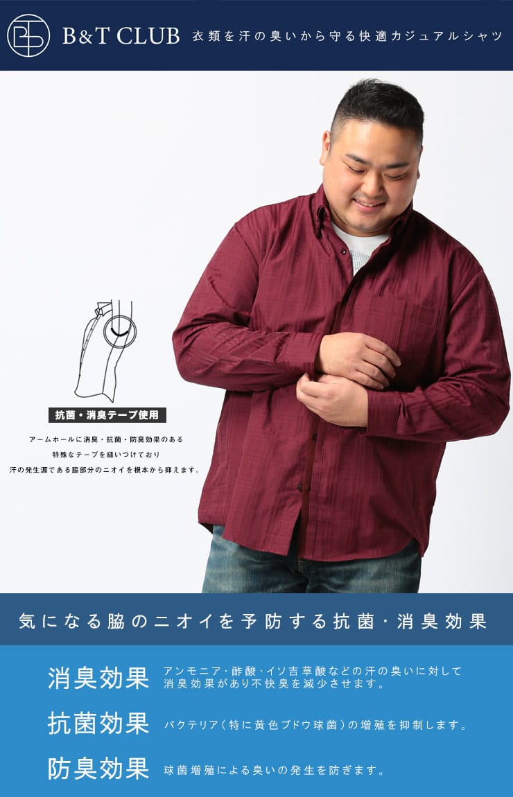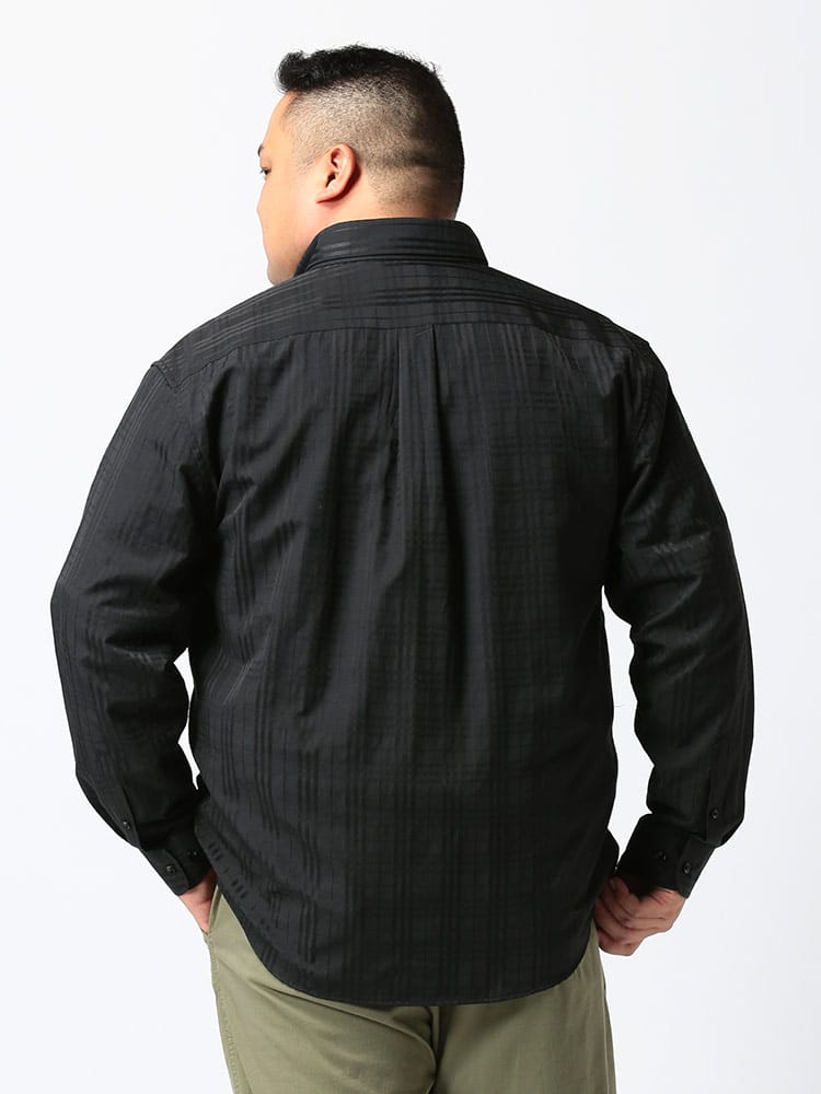 ドビー織りにさりげないチェック柄がお洒落なボタンダウン 2枚襟 長袖 シャツです。襟は2枚襟デザインで特徴的なアイテム。フロントのボタンテープのデザインもポイントです。アームホールに抗菌・消臭効果のあるテープを縫い付けてあります。大人のカジュアルスタイルにおすすめの1枚です。