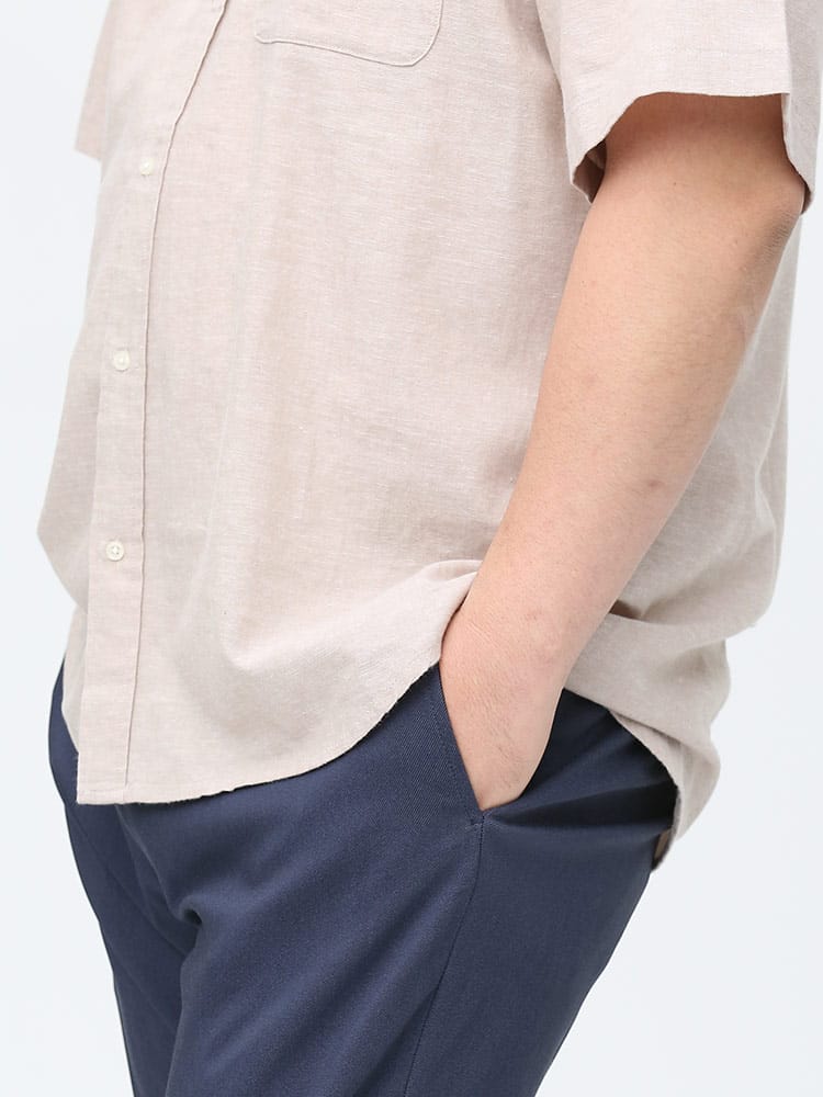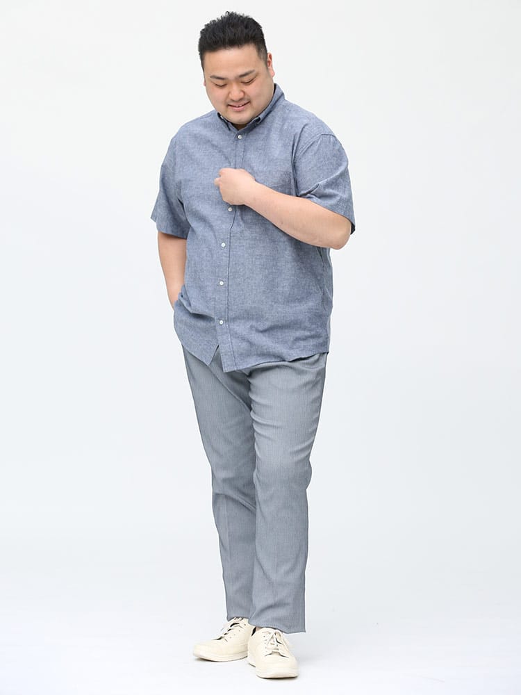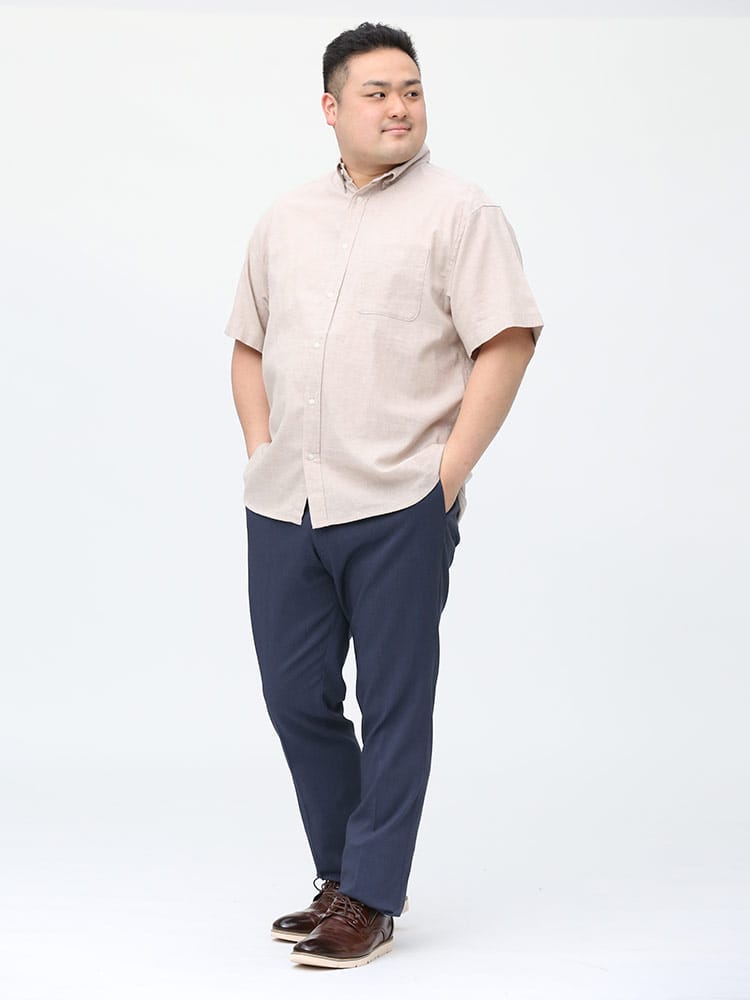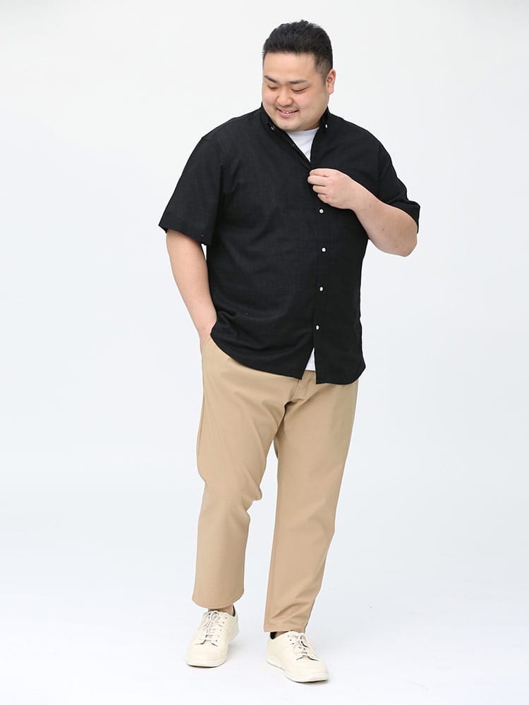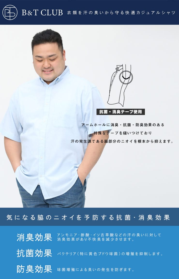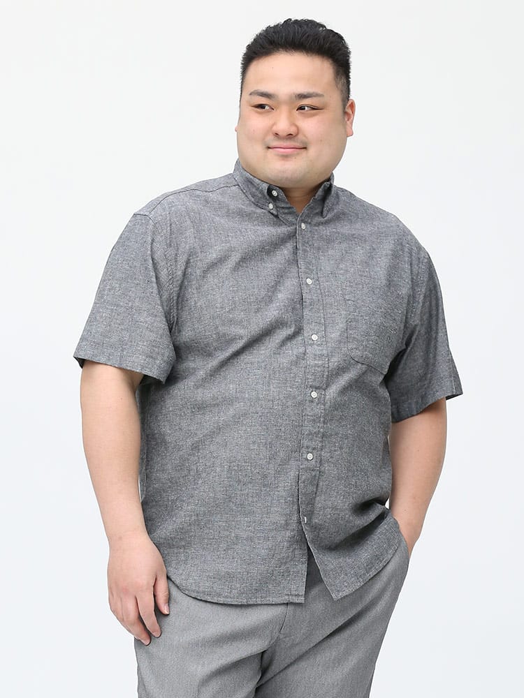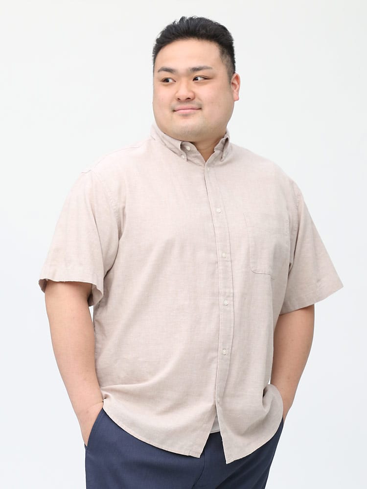 ベーシックな無地のボタンダウン 半袖シャツです。フロントの左胸ポケットがポイント。首元はスッキリとしたボタンダウンデザイン。生地には麻混の生地を使用し、通気性と吸収性に優れ、自然なストレッチが魅力です。脇下の備えた抗菌消臭テープで【消臭】【抗菌】【防臭】の3つの効果を発揮してくれます。外出の際の汗の臭いを抑えて、人込みでの周囲への気遣いによるストレスを軽減してくれます。大人のカジュアルスタイルにおすすめのアイテムです。