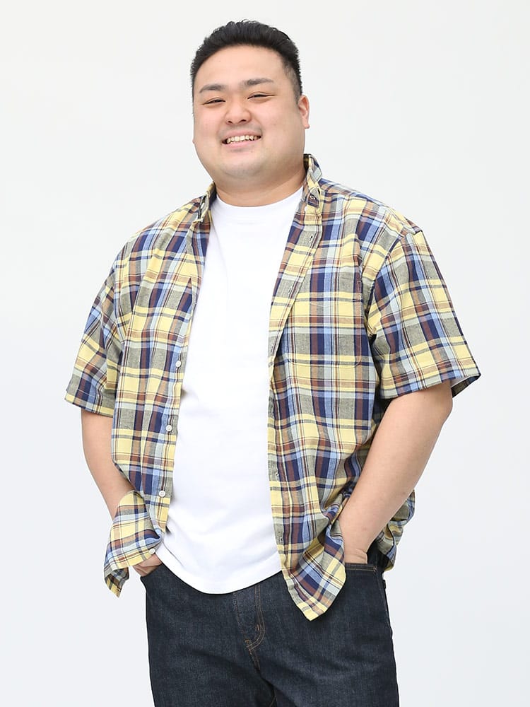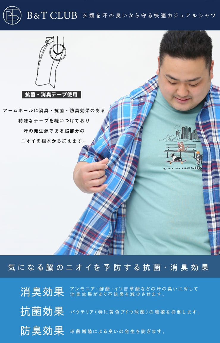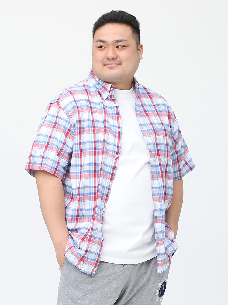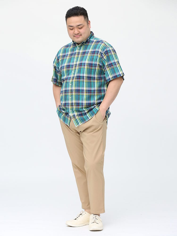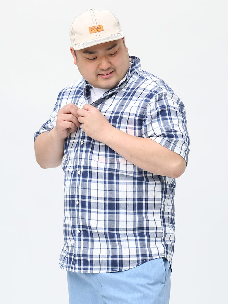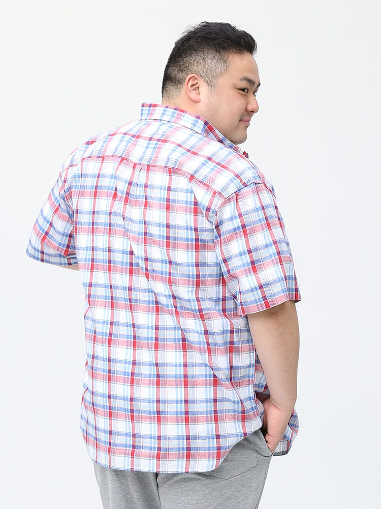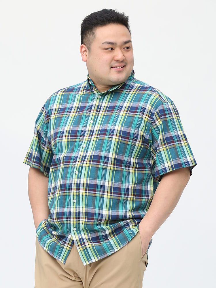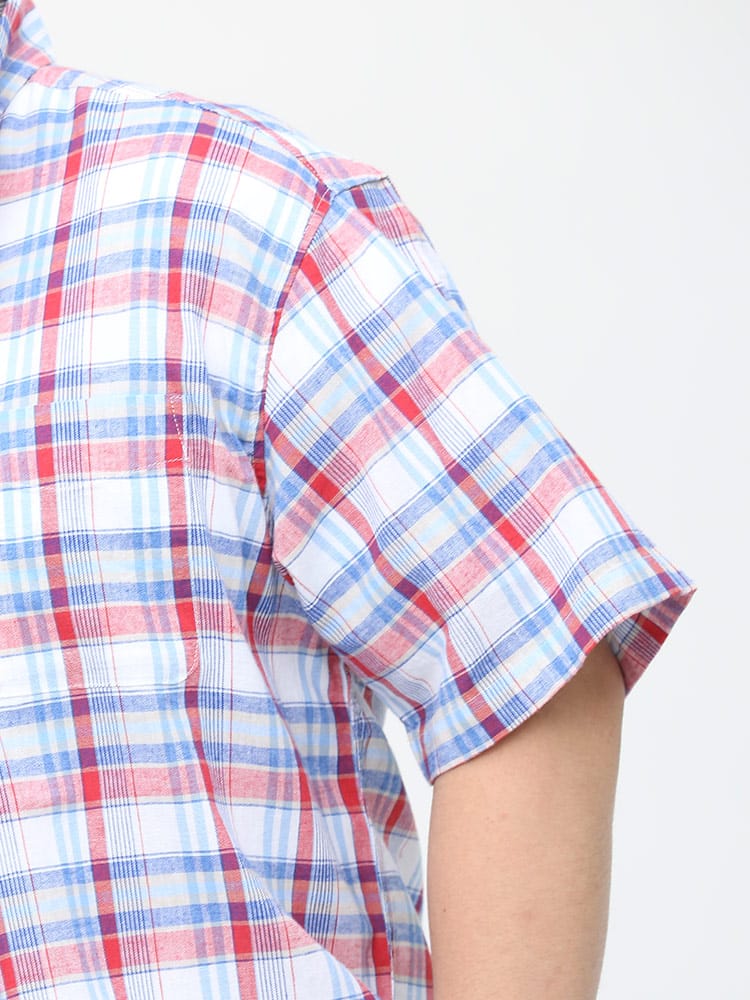 カジュアルなチェック柄のボタンダウン 半袖シャツです。フロントの左胸ポケットがポイント。首元はスッキリとしたボタンダウンデザイン。生地には麻混の生地を使用し、通気性と吸収性に優れ、自然なストレッチが魅力です。脇下の備えた抗菌消臭テープで【消臭】【抗菌】【防臭】の3つの効果を発揮してくれます。外出の際の汗の臭いを抑えて、人込みでの周囲への気遣いによるストレスを軽減してくれます。大人のカジュアルスタイルにおすすめのアイテムです。