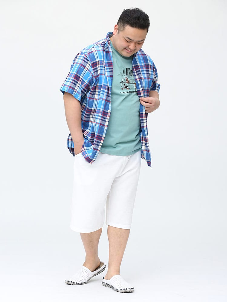 身長:178cm / 体重105kg / B:113 / W:105 / H:108 / S:28.0cm 着用サイズ:X1(3L~4L相当)