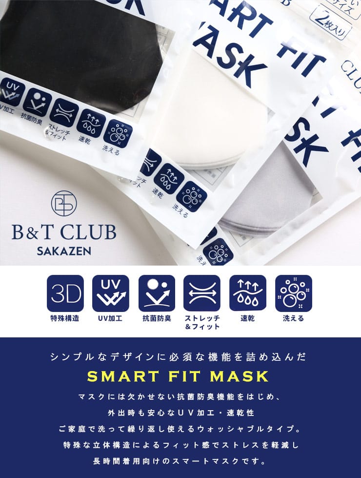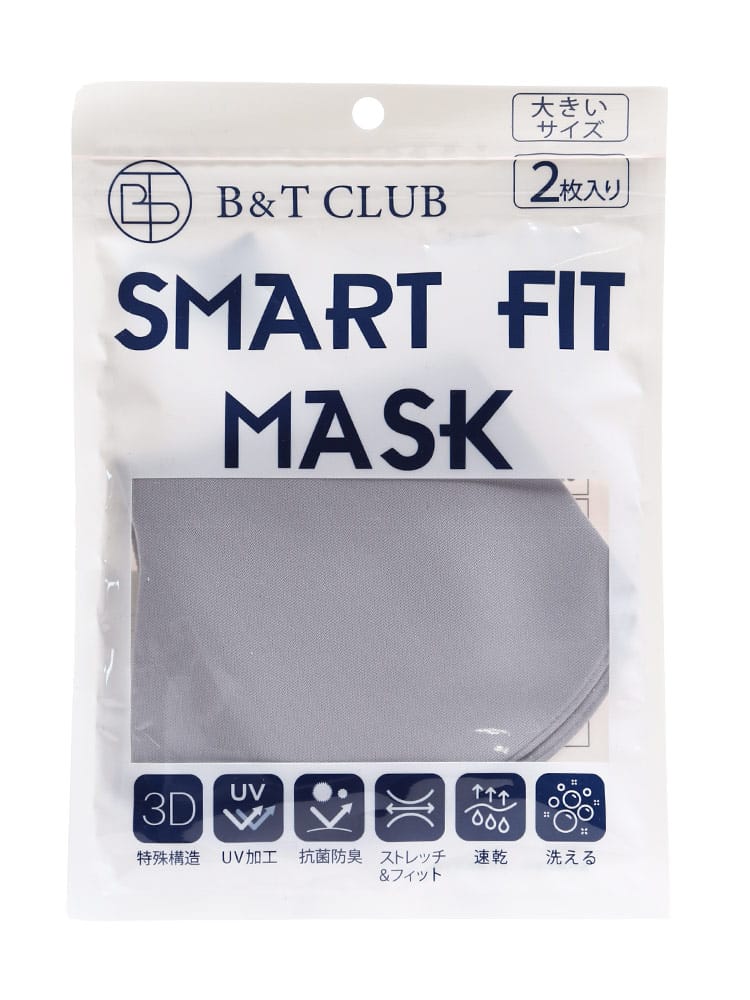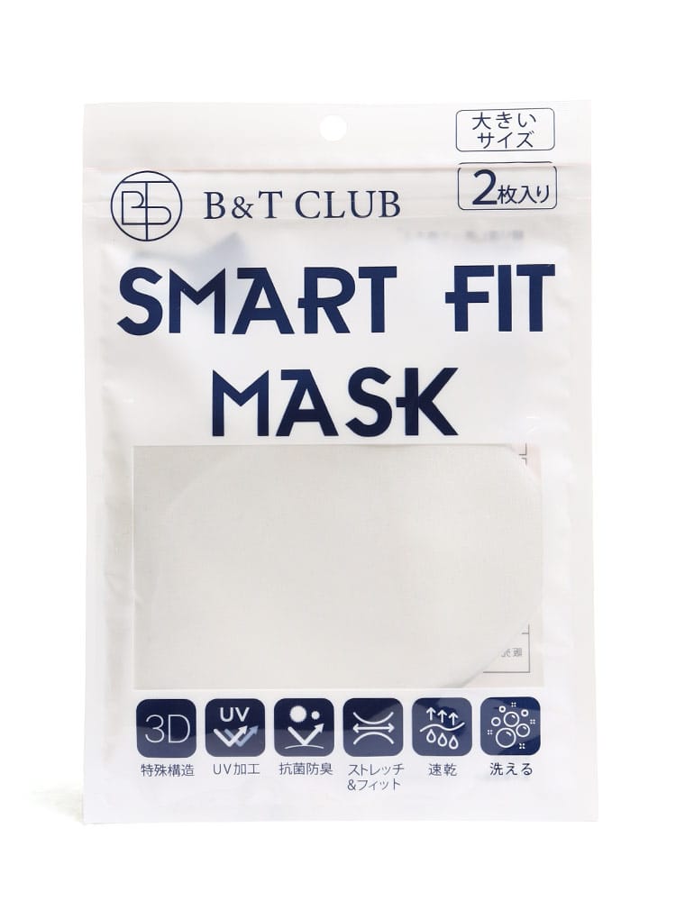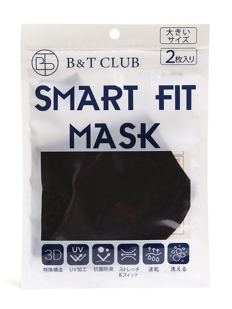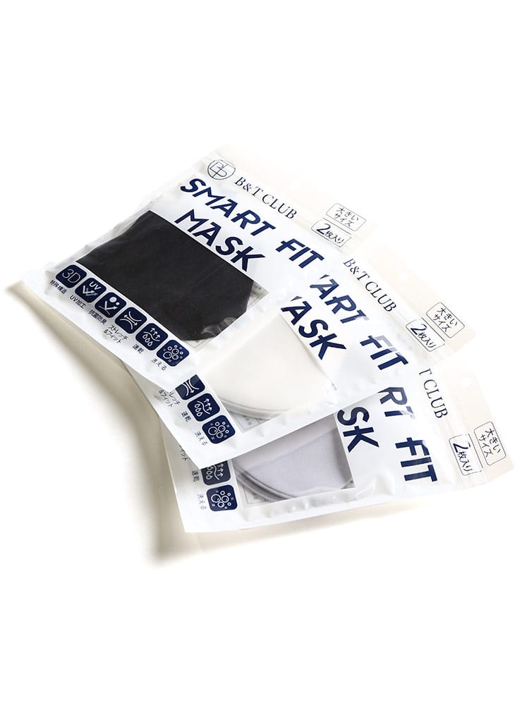多機能を持ったUV加工 大きいサイズ スマートフィット マスク 2枚入りです。3Dの特殊構造、UV加工、抗菌防臭、ストレッチ&フィット、速乾、洗えるで快適な着用感。洗濯後も型崩れしないから、繰り返し使える。息がしやすい3Dスタイリッシュカット。耳が痛くならない優しい素材。ヒモが調整可能なので顔にピッタリフィット。