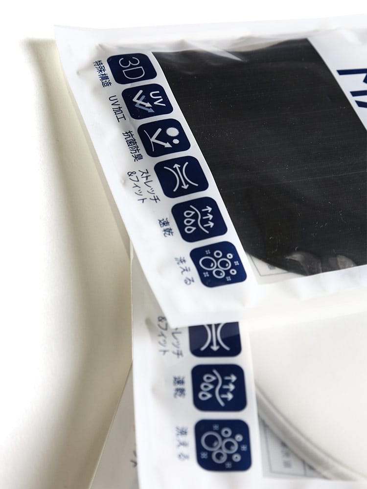 仕様 :3D / UV加工 / 抗菌防臭 / ストレッチ / 速乾 / 洗える / 二枚入り