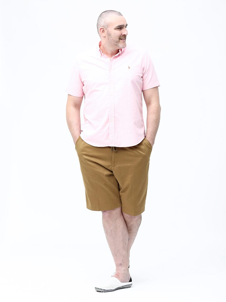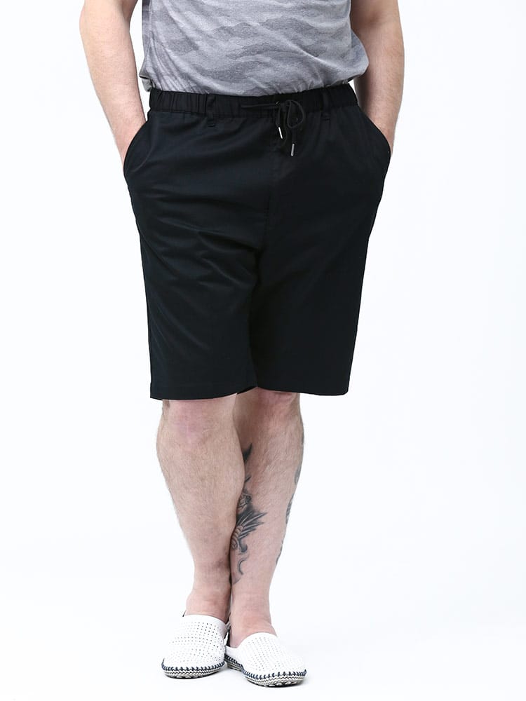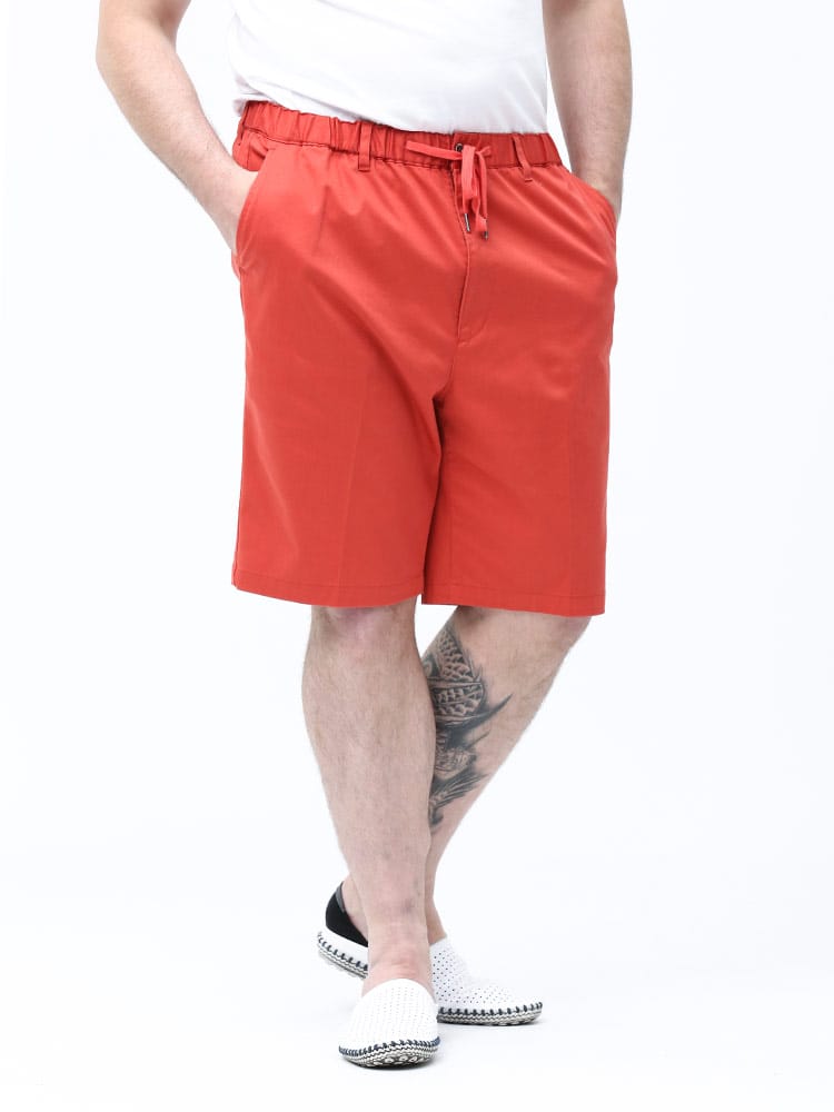 ベーシックな無地のジップフライ カラー ショートパンツです。シンプルなデザインでどんなスタイルにも取り入れていただけます。ウエストはゴムとドローコード付きでゆったり穿けます。ストレッチも効いているのでストレスフリーな穿き心地。コットン配合生地で着心地抜群。