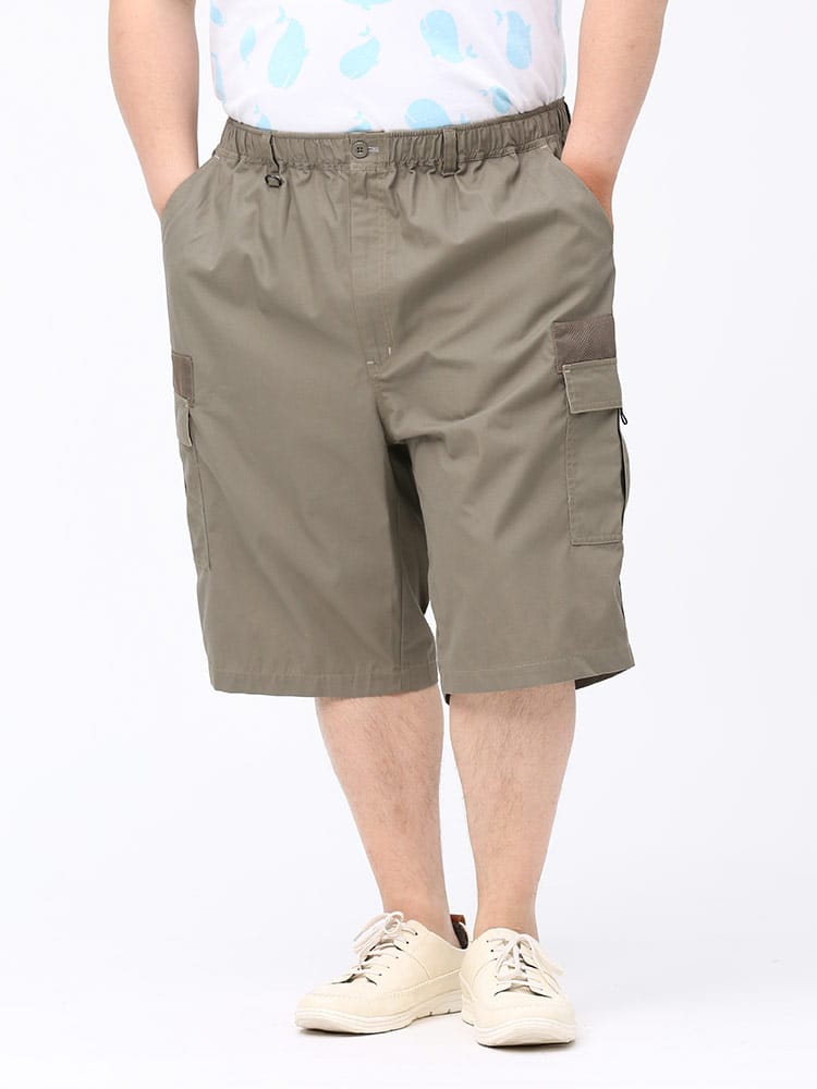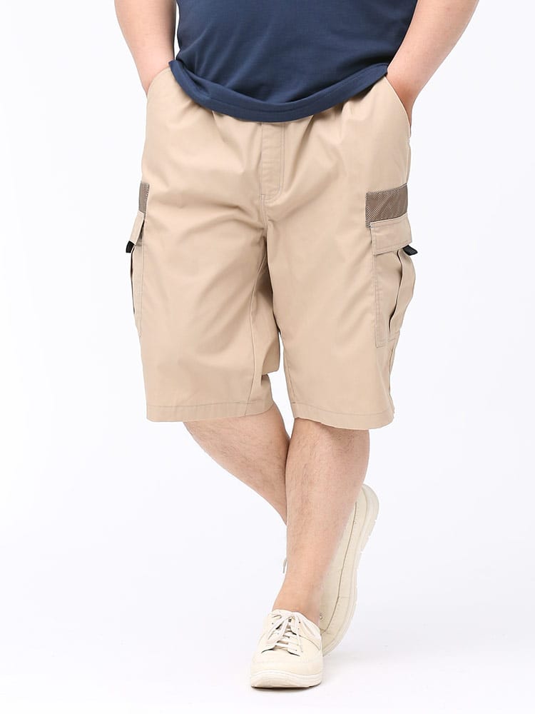 丈夫で耐久性のあり、柔らかなポプリン生地で仕上げたポケット カーゴ ショートパンツです。サイドのメッシュ切り替えとポケットデザインがポイントになったアイテム。ウエストはゴムとドローコード付きでゆったりと穿けます。