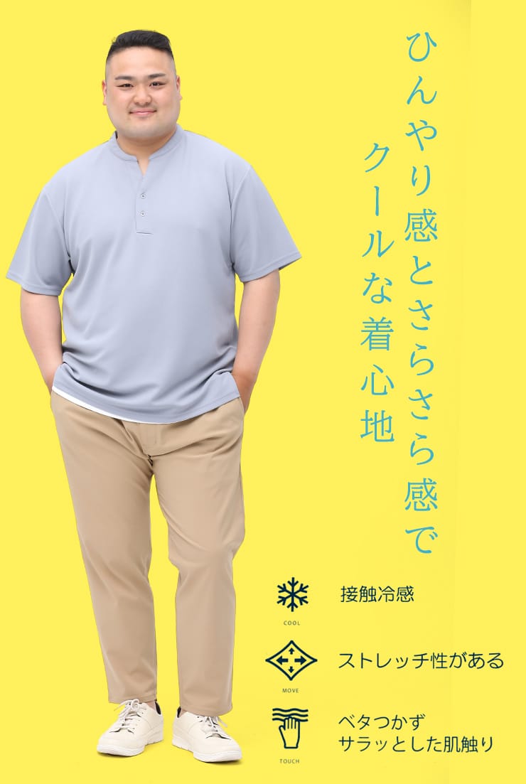 快適機能をもったストレッチ 接触冷感 タンクトップと半袖 プルオーバーのアンサンブルです。無地のシンプルなデザイン。プルオーバーの首元はボタン留め。ストレッチ性、柔らかい手触り、すぐ乾く、接触冷感で快適な着心地を提供する快ラクWEAR仕様。セットではもちろんそれぞれ単品でもお使いいただけます。