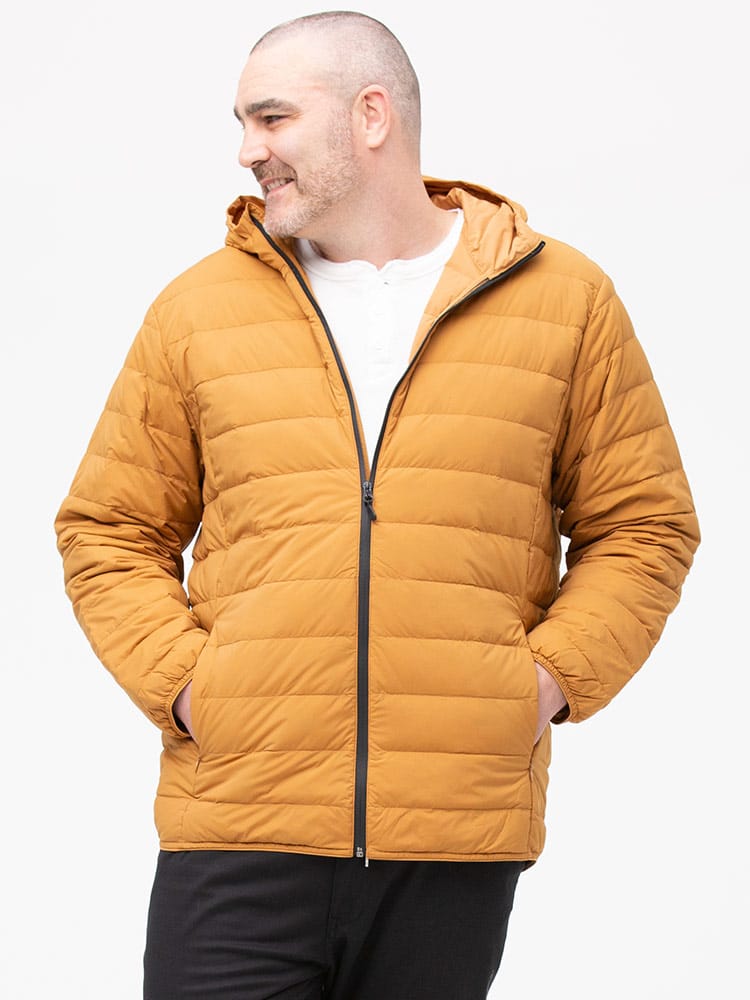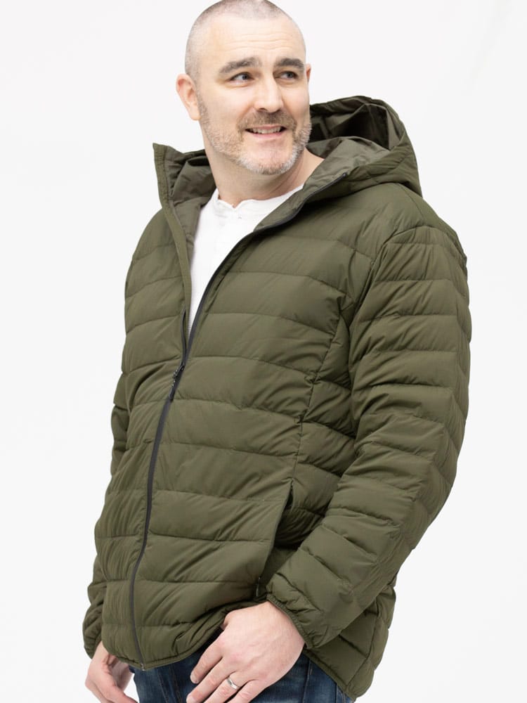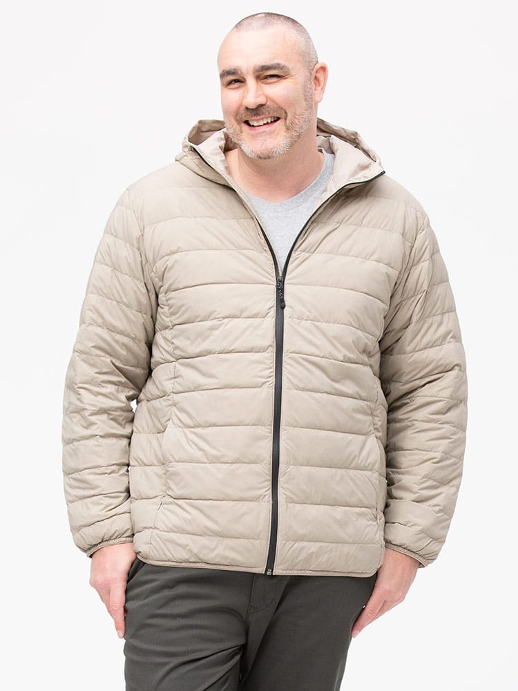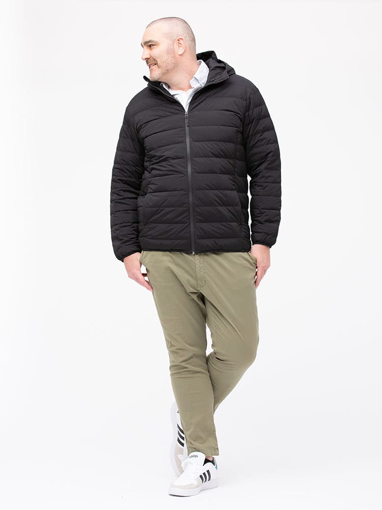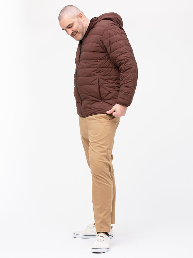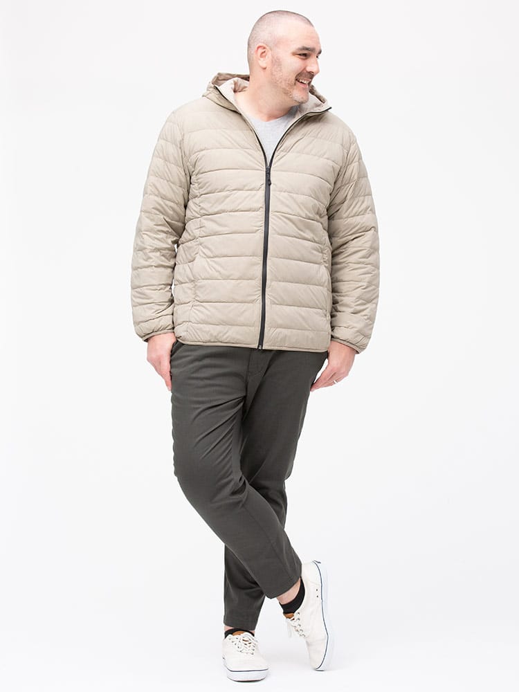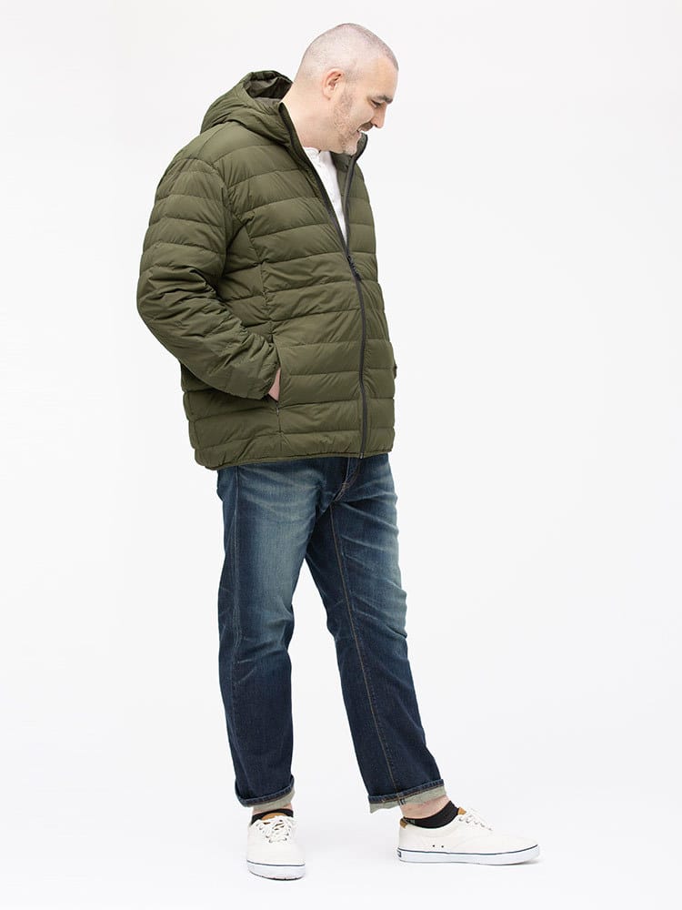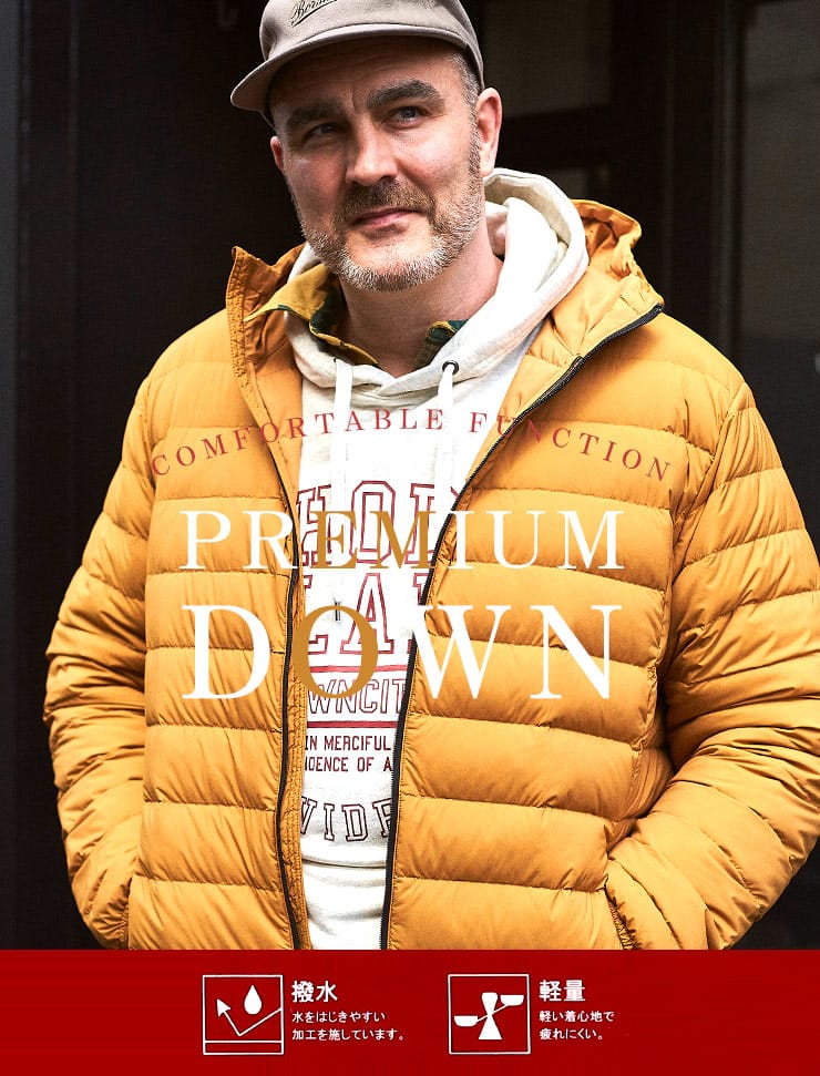 撥水加工を施した ストレッチナイロン フルジップ ライトダウン パーカー。生地はストレッチナイロンを使用しており、軽量で着心地よく着用できます。ダウンには優れた弾力性、保温性を持った高級羽毛のプレミアム ダウンを使用しています。シンプルなスタイルで落ち着いたスタイルにマッチするアウターです。