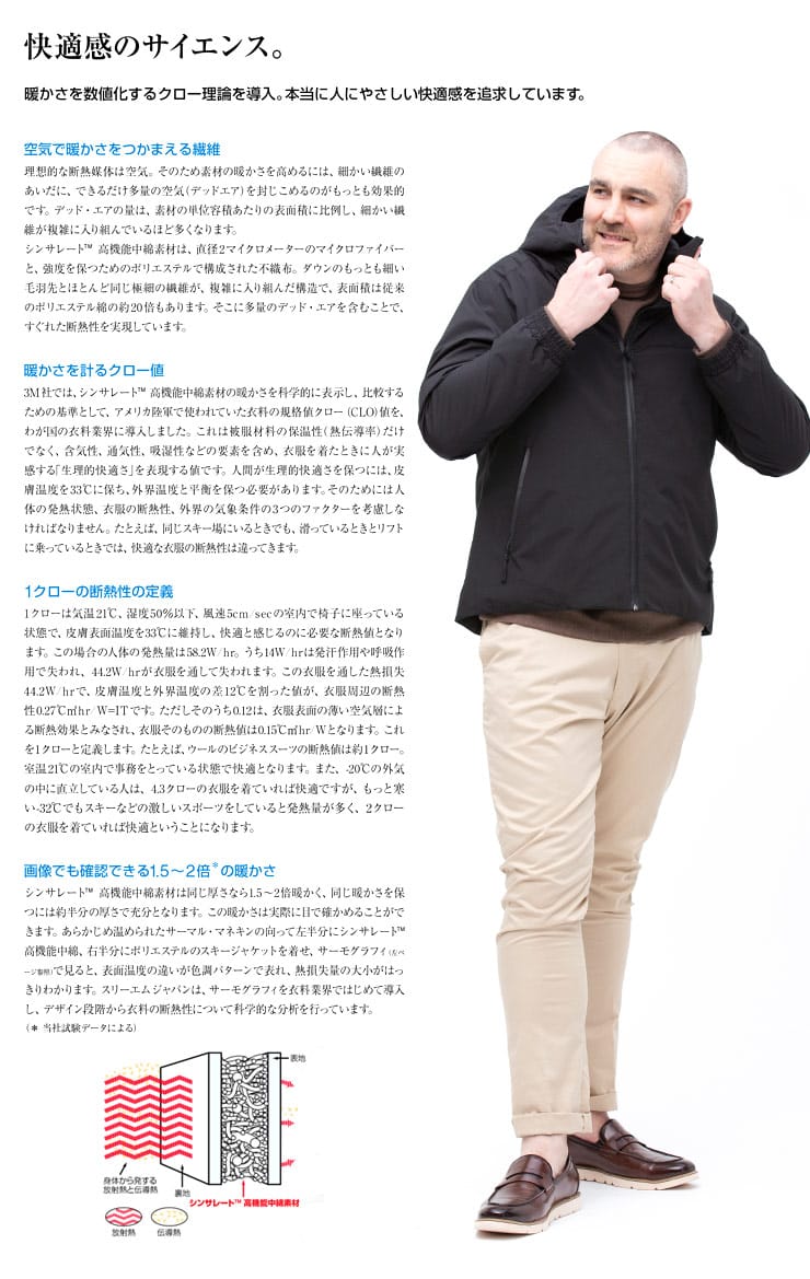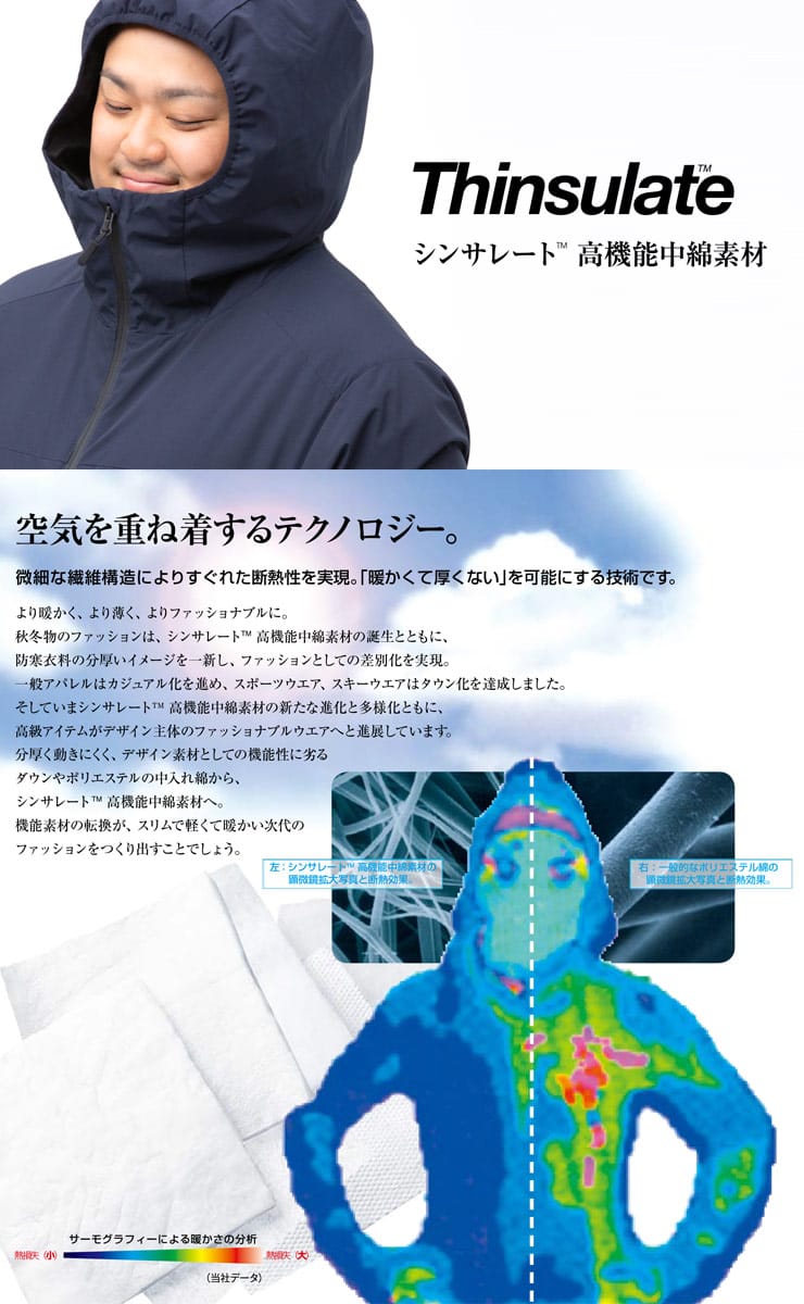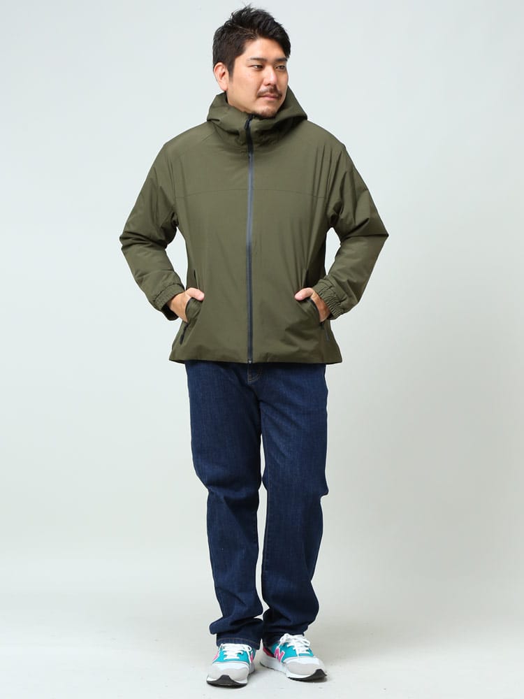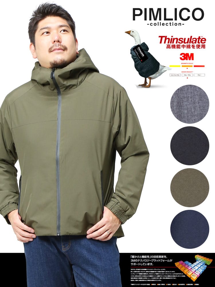 WEB限定で展開しているPIMLICOの撥水 ストレッチ シンサレート中綿 フード フルジップ ジャケット。天候に左右されない高機能生地を使用し、撥水、防風フィルム、ストレッチ、防花粉、UPF30で快適な着心地を提供します。ジップは止水ジップ仕様。裾はドローコード付きでサイズ調整出来ます。シンサレート中綿で保温性に優れた一着です。