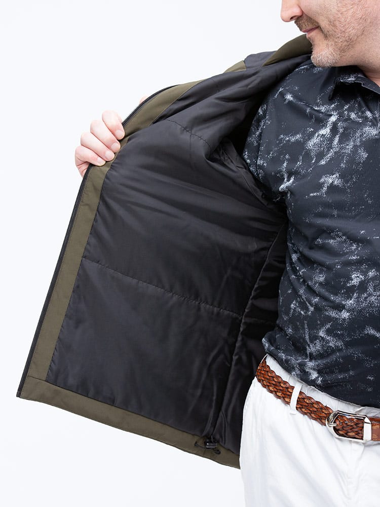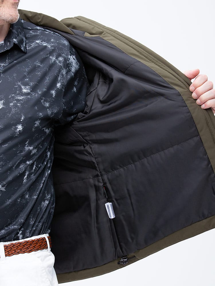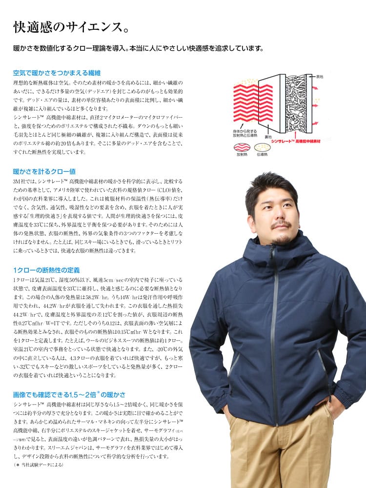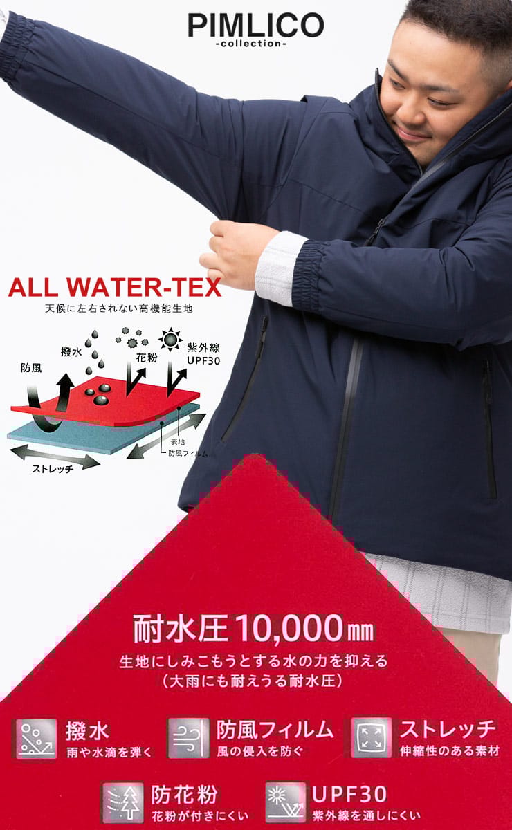 WEB限定で展開しているPIMLICOの撥水 ストレッチ シンサレート中綿 フード フルジップ ジャケット。天候に左右されない高機能生地を使用し、撥水、防風フィルム、ストレッチ、防花粉、UPF30で快適な着心地を提供します。ジップは止水ジップ仕様。裾はドローコード付きでサイズ調整出来ます。シンサレート中綿で保温性に優れた一着です。