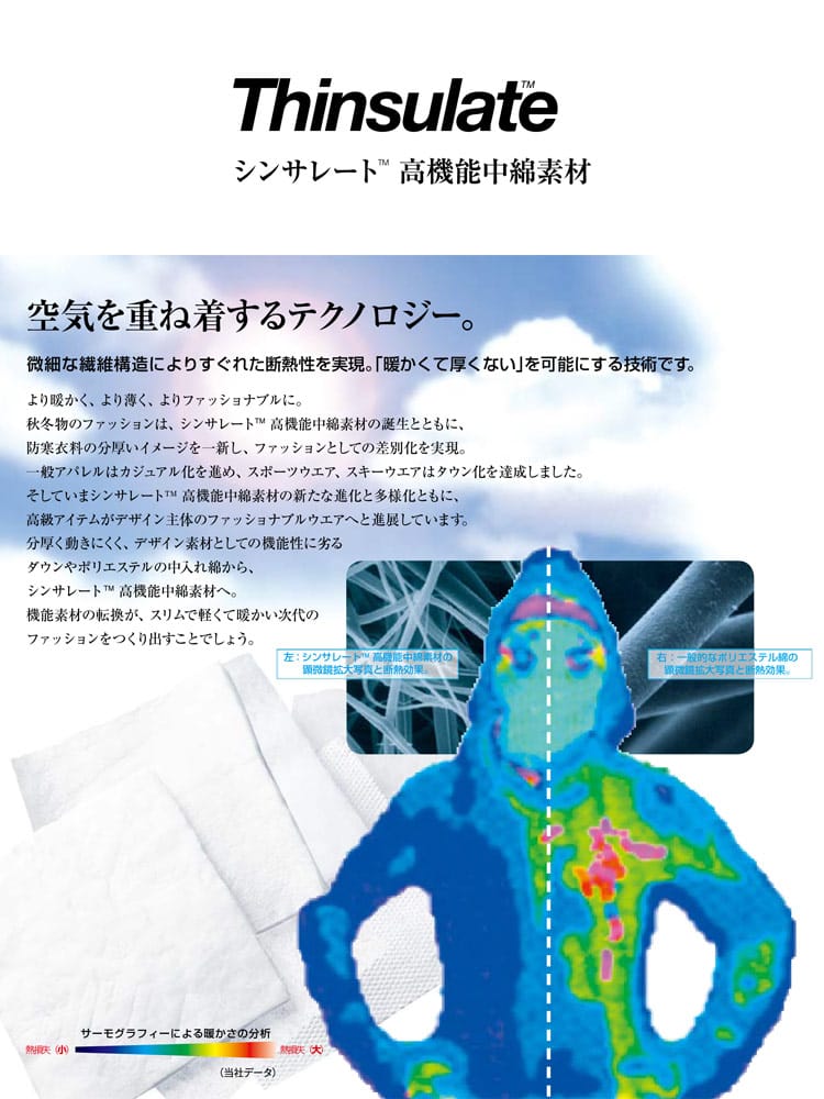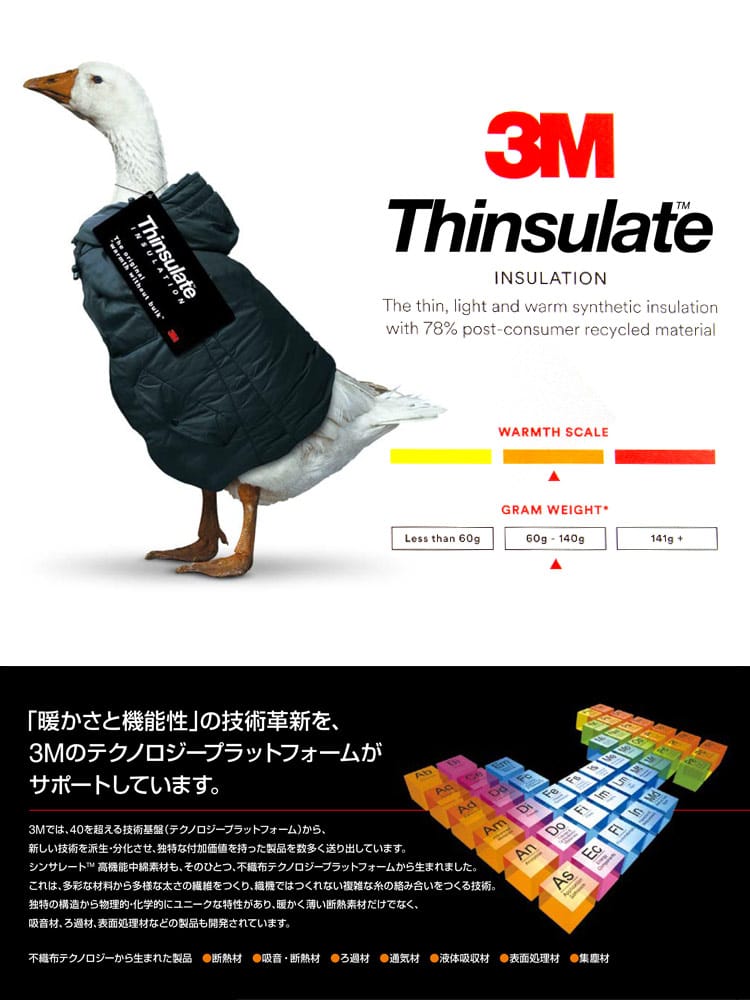 素材 :[表地]ポリエステル100%(裏面にポリウレタンコーティング加工) [中綿]ポリエステル100% [裏地]ポリエステル100%