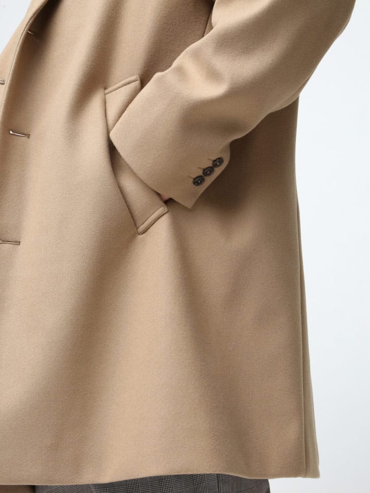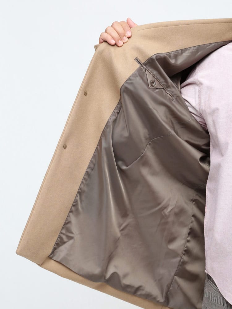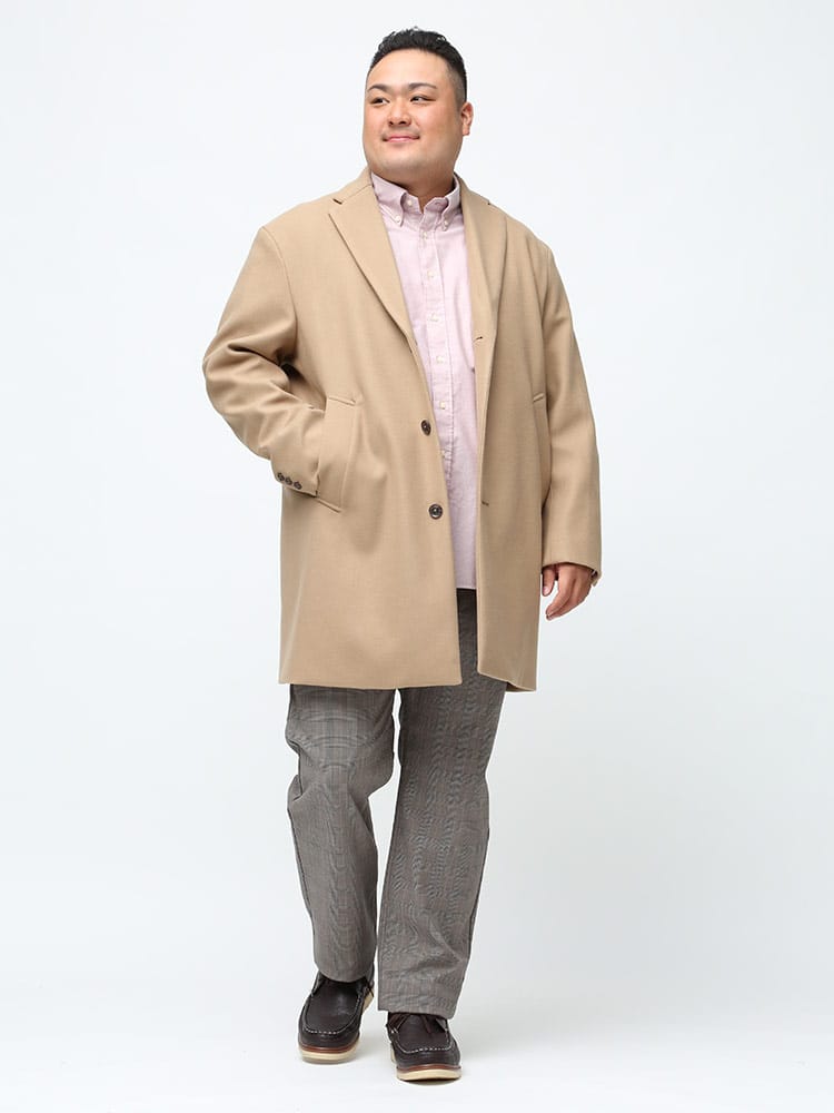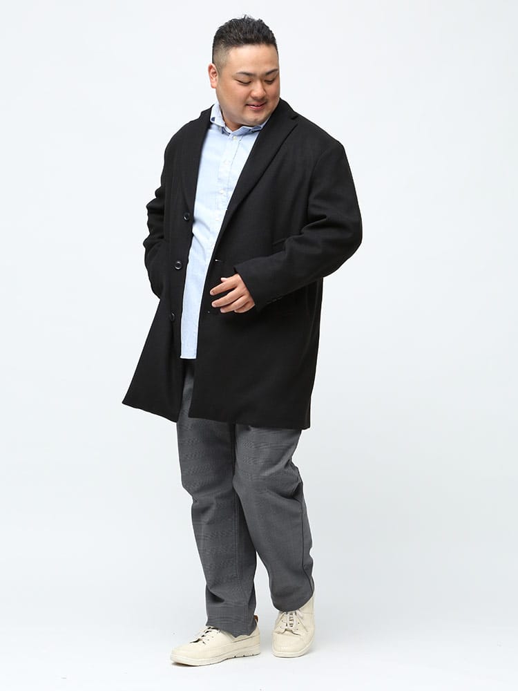 ストレッチ性のあるメルトン生地を使用したシングル チェスターコートです。伸縮性のある素材の為、動きやすく快適です。ロング丈でサッと羽織るだけでお洒落に決まります。品のある無地デザインで大人のワードローブにぜひ加えていただきたい一着です。
