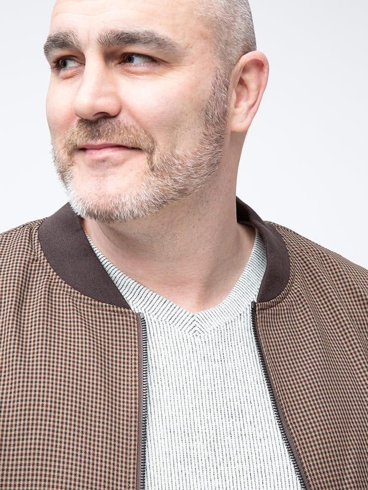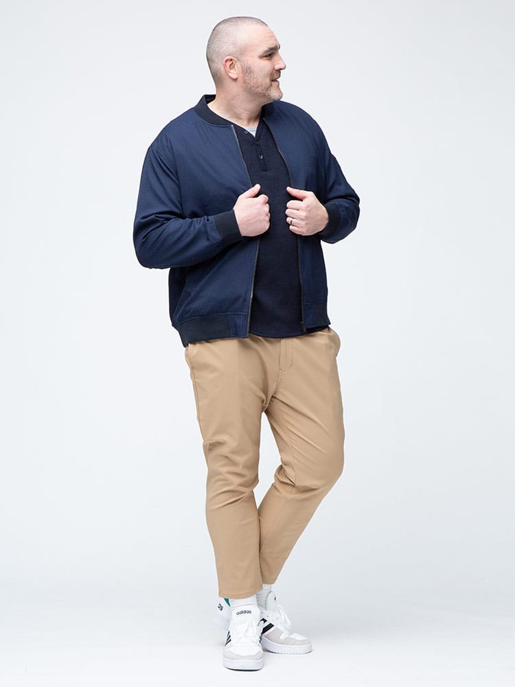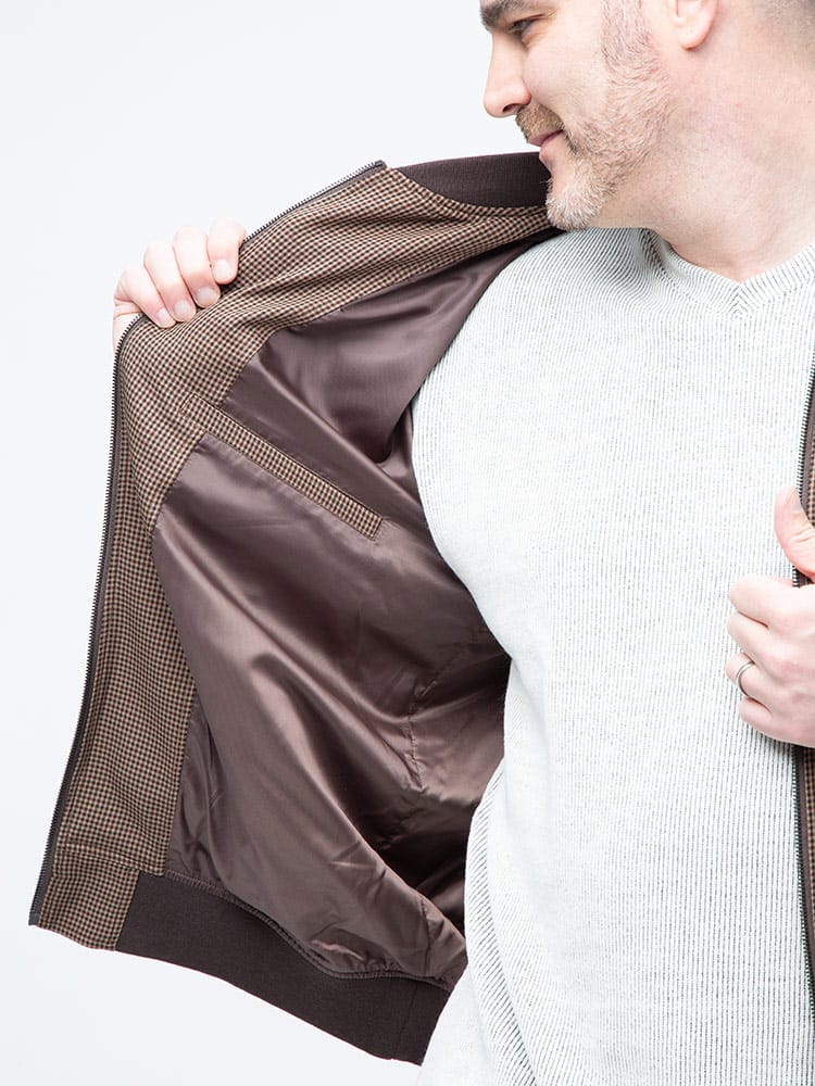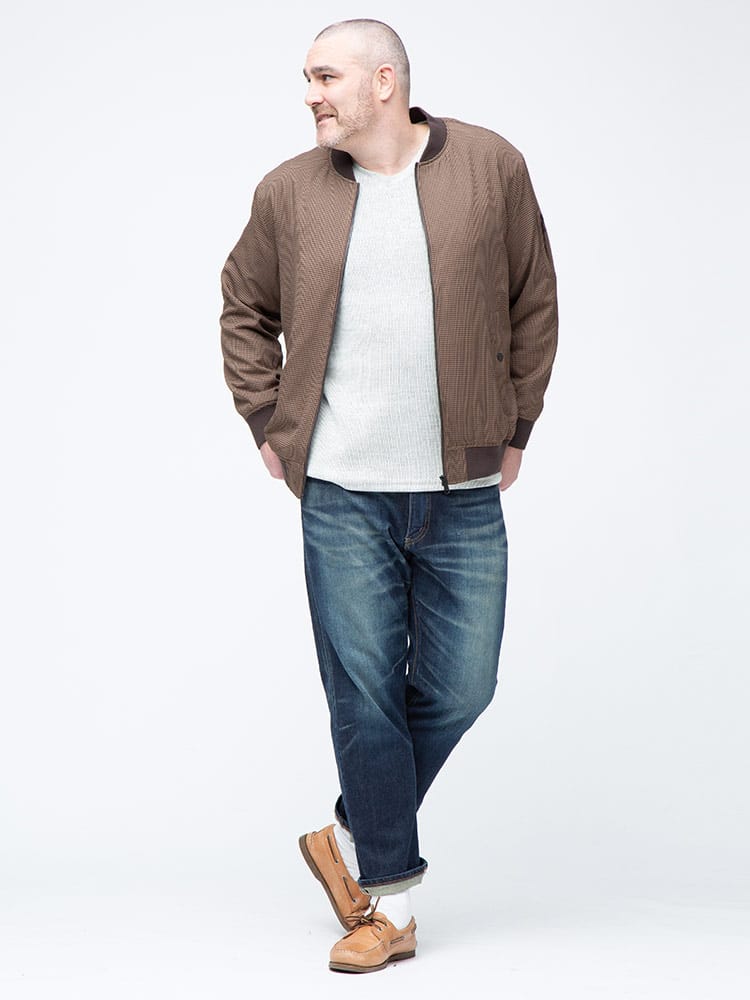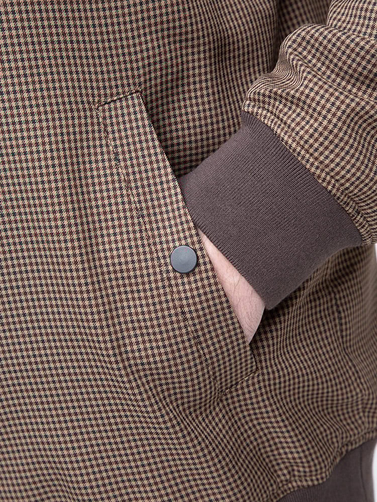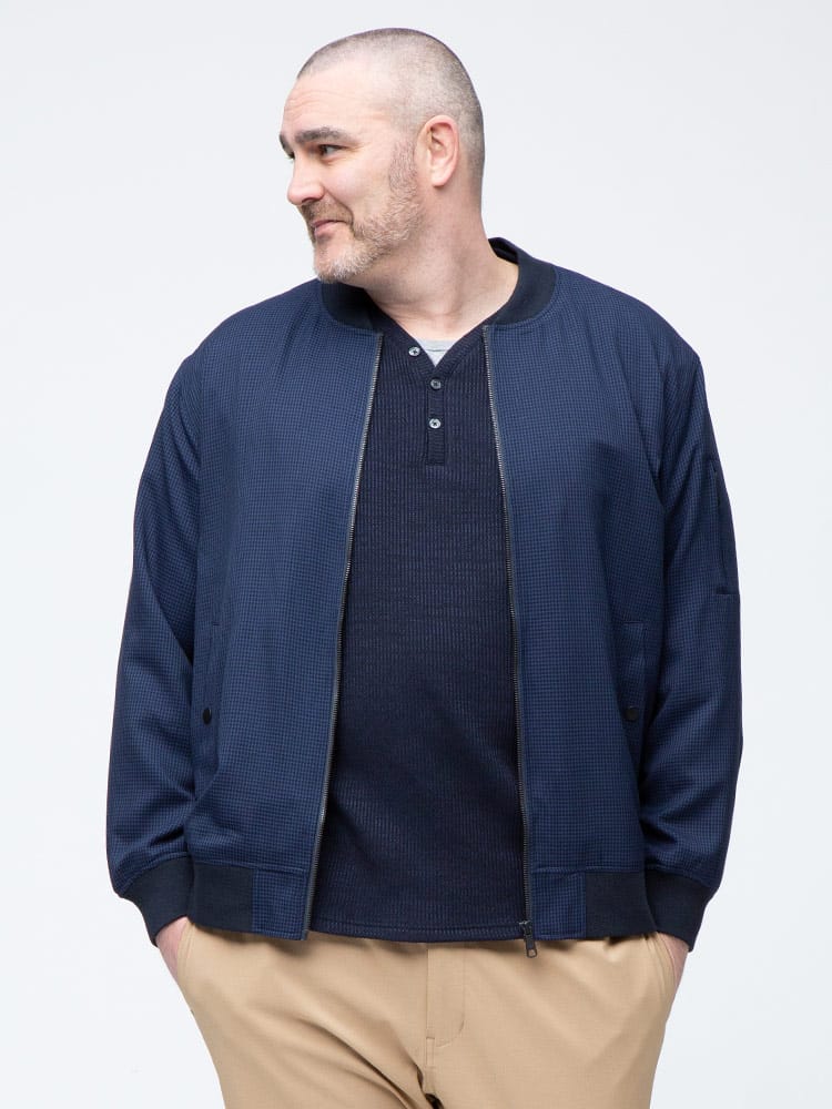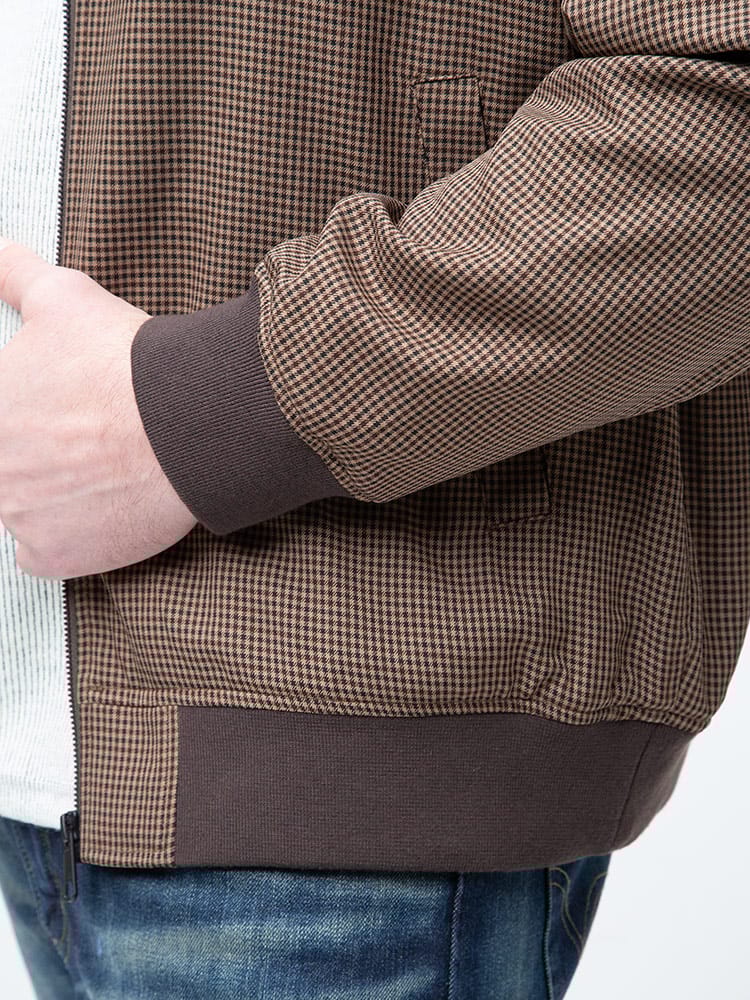 多機能素材のLANATEC??LEIを使用したナチュラルストレッチ ウォッシャブル チェック フルジップ ジャケット MA-1です。LANATEC??LEIは動物繊維や石油系ドライクリーニングを必要としないエコなウールライクファブリック。シワになりにくく、洗濯機で洗える優れものです。ふくらみのある柔らかな風合いが魅力です。ナチュラルストレッチで快適な着心地です。