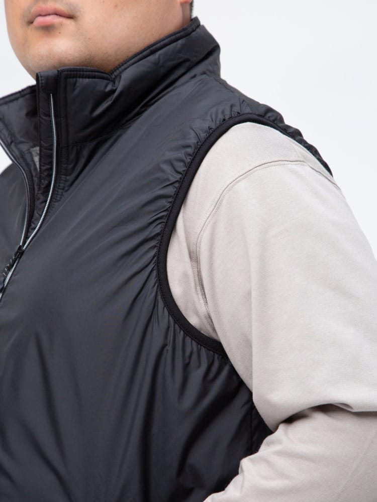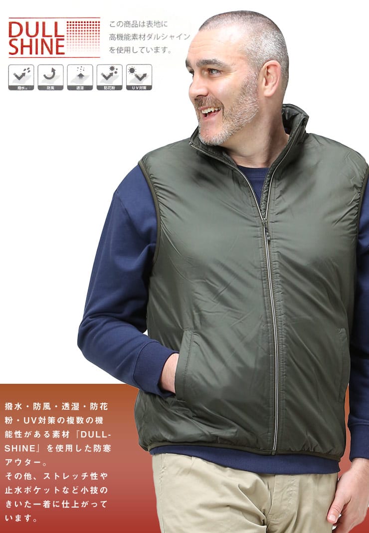 高機能素材のダルシャインを使用した裏シャギー フルジップ スタンド ベストです。撥水、防風、透湿、防花粉、UV対策と快適機能を備えています。裏地は極上ふわとろ裏地で着心地抜群です。寒い季節におすすめの一着です。