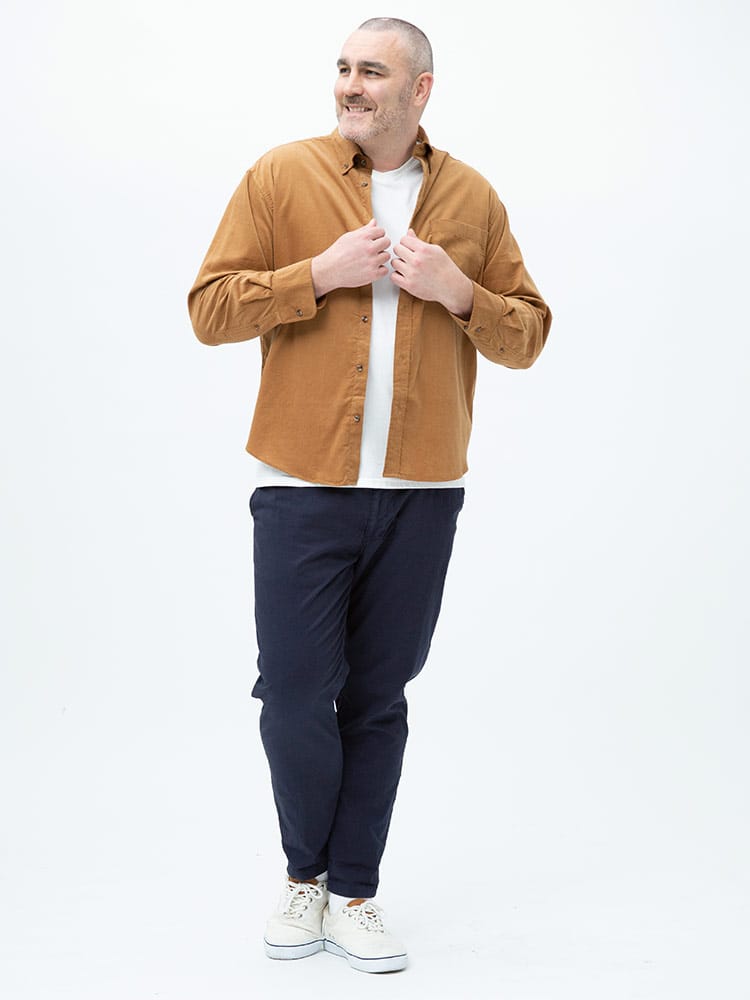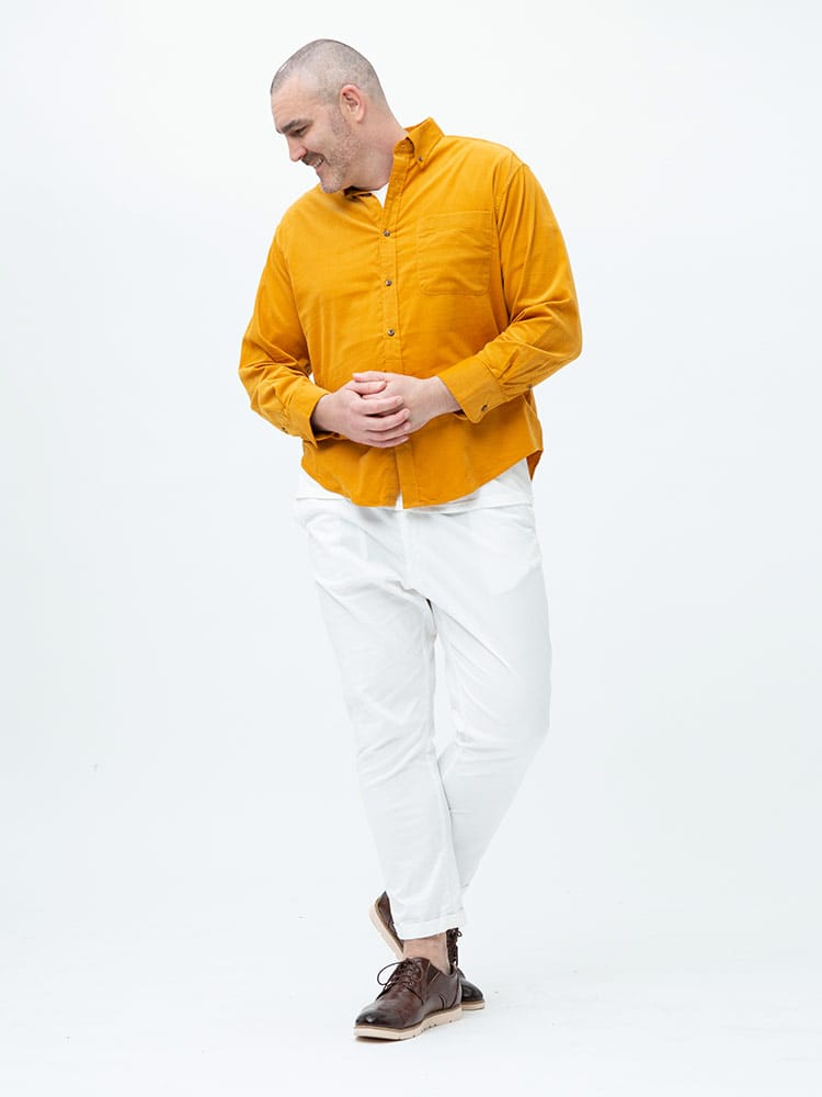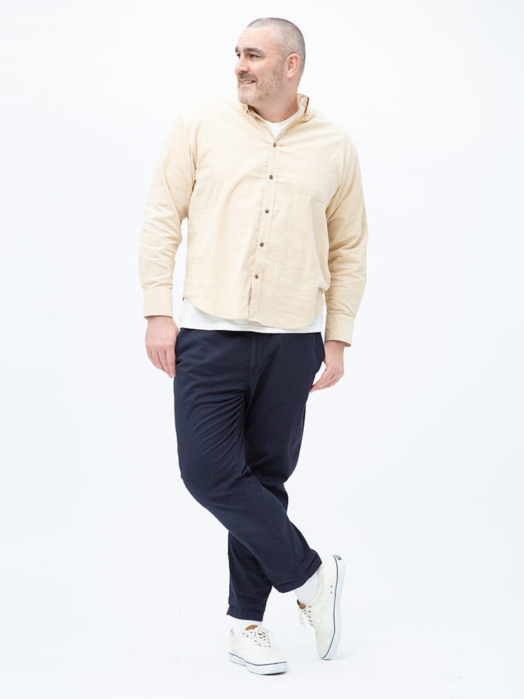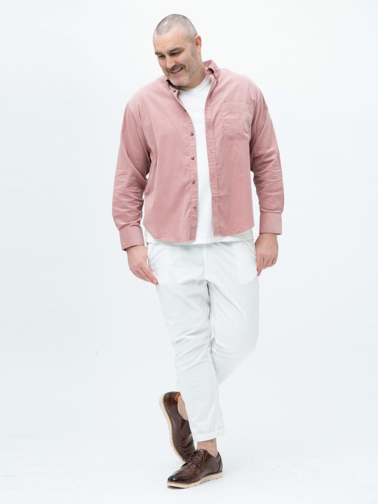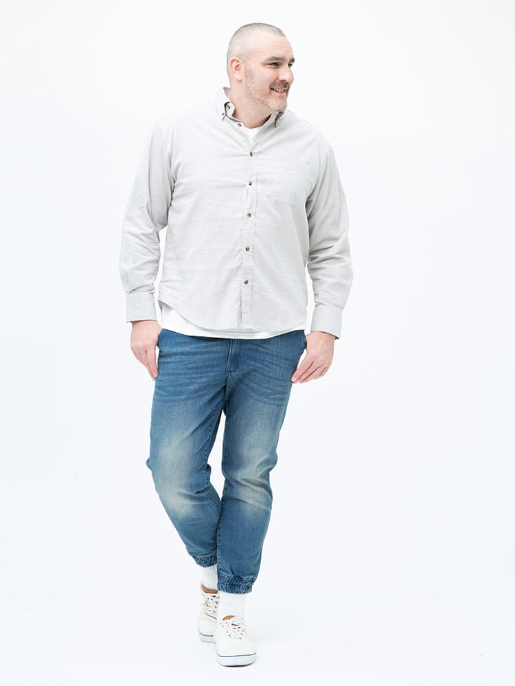 Wコール生地で仕上げた無地のボタンダウン 長袖 シャツです。ベーシックな無地デザインに左胸ポケットがポイント。襟はボタンダウンデザインでカチッとした印象。脇下の備えた抗菌消臭テープで【消臭】【抗菌】【防臭】の3つの効果を発揮してくれます。シンプルデザインはどんなスタイルにも取り入れていただけます。