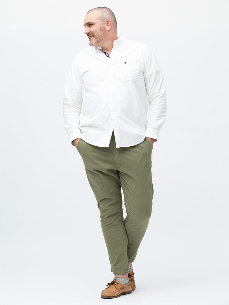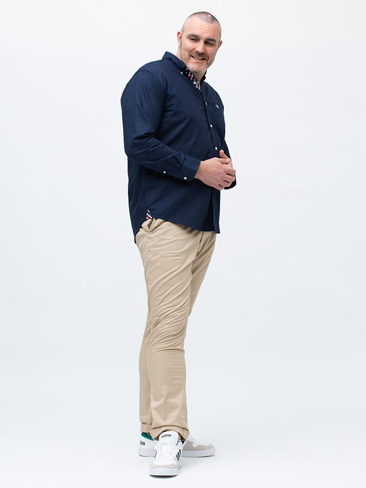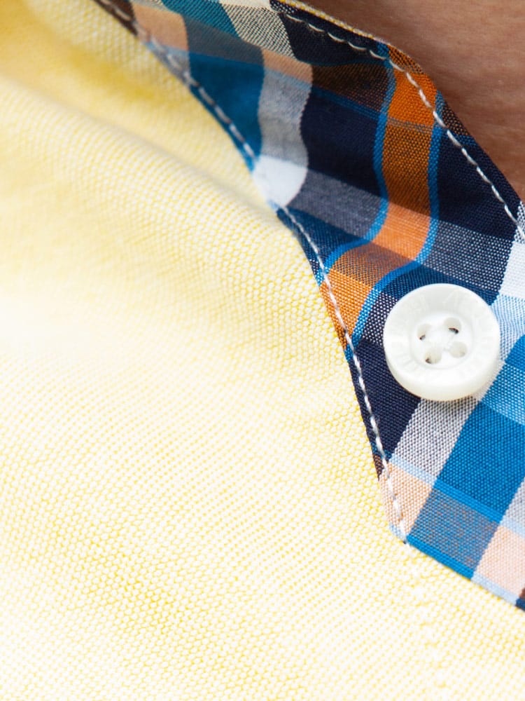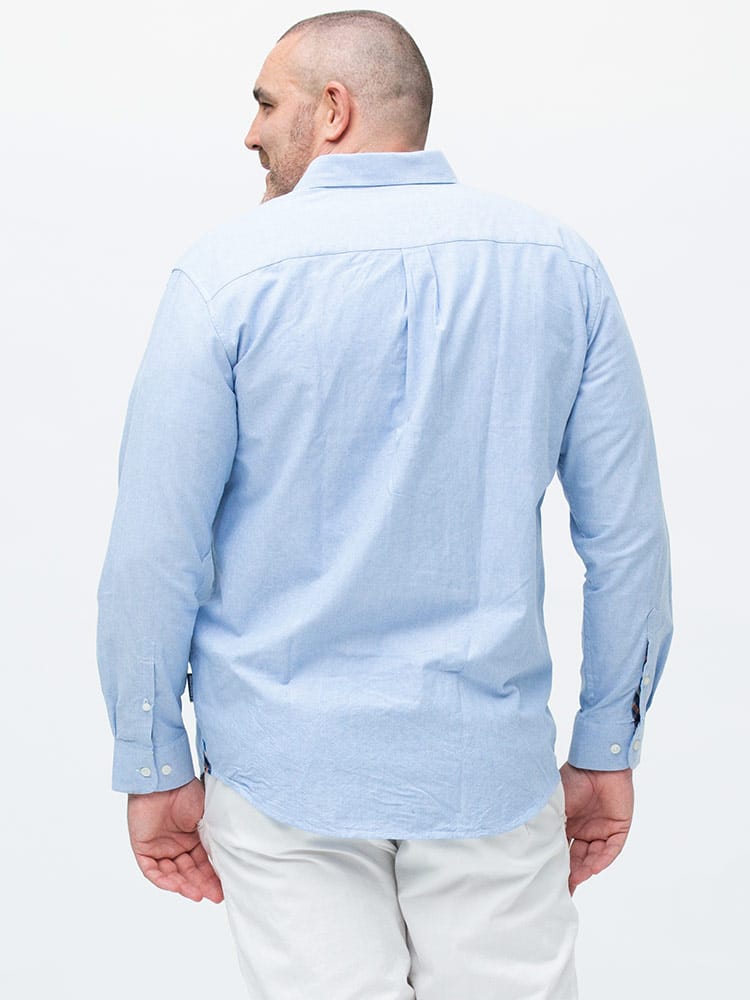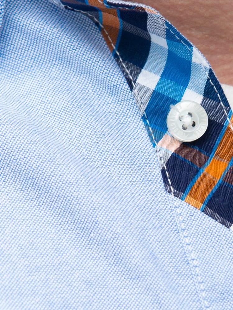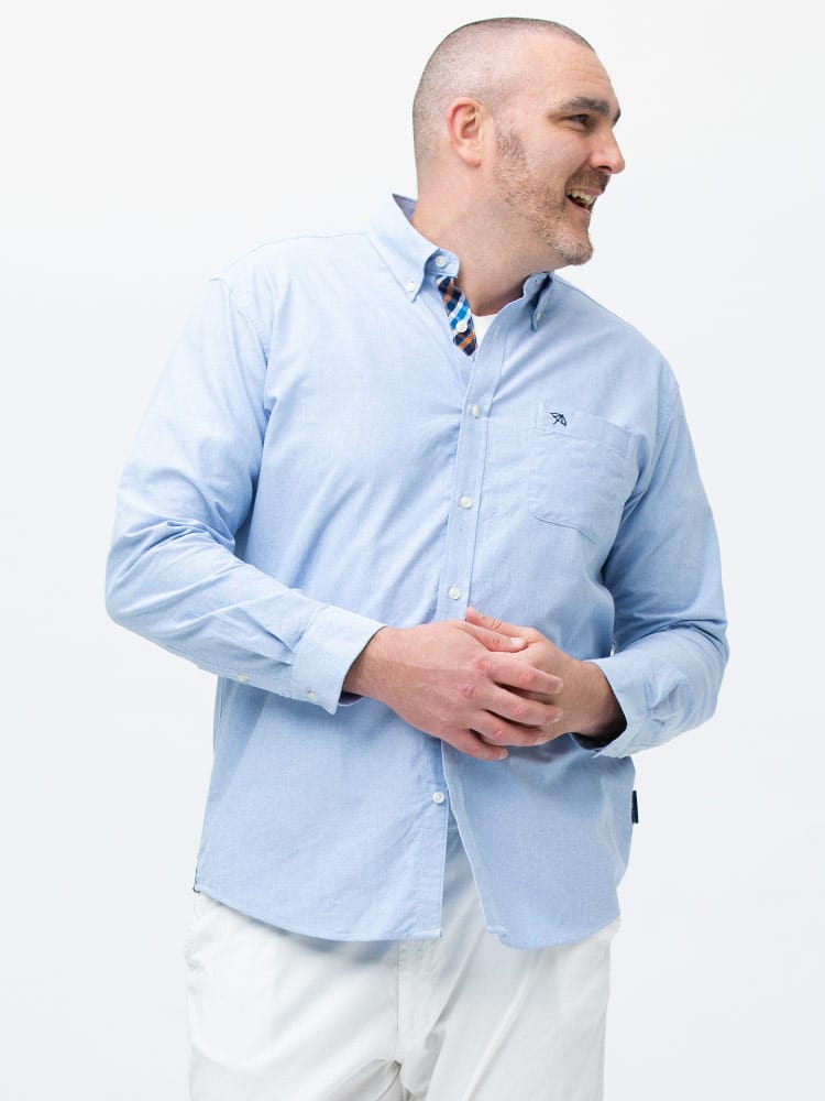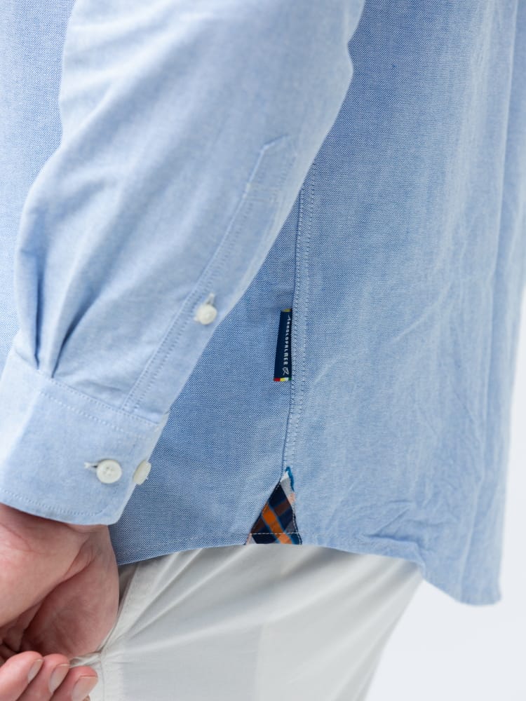 ArnoldPalmerのポケットボタンダウン長袖オックスシャツ。左胸ポケットにブランドロゴを刺繍。肌触りの良いコットン生地を使用。サイドの裾部分はさり気ないチェック柄がワンポイント。ベーシックなデザインで、大人のカジュアルスタイルにおすすめのアイテム。