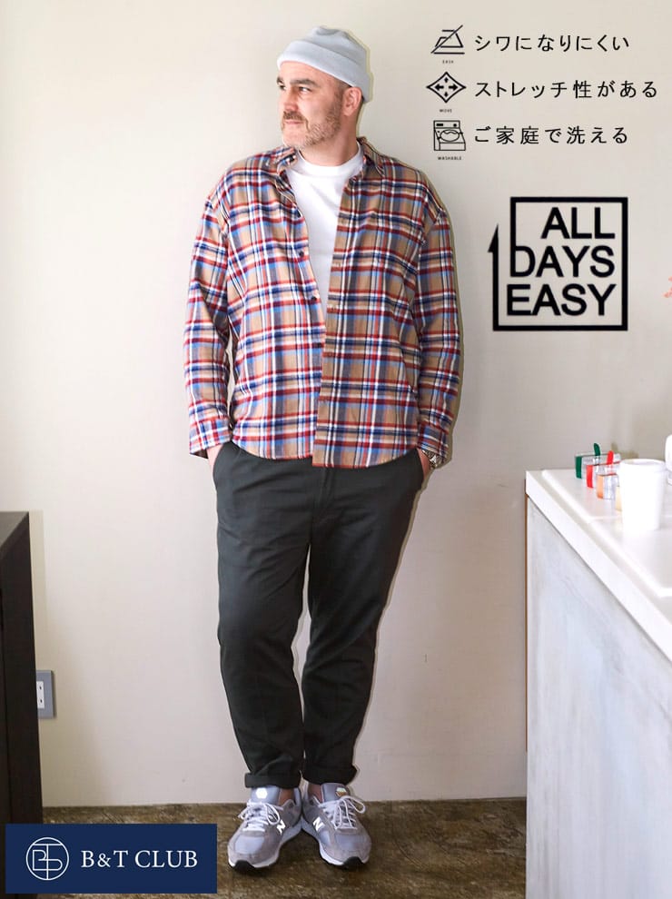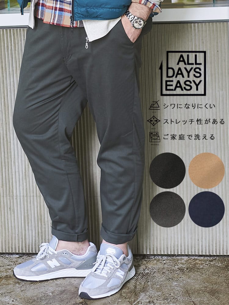 仕様 :ジップフライ / 外側ポケット数×4つ / ウエスト調節ゴム / ウォッシャブル / イージーケア / ストレッチ